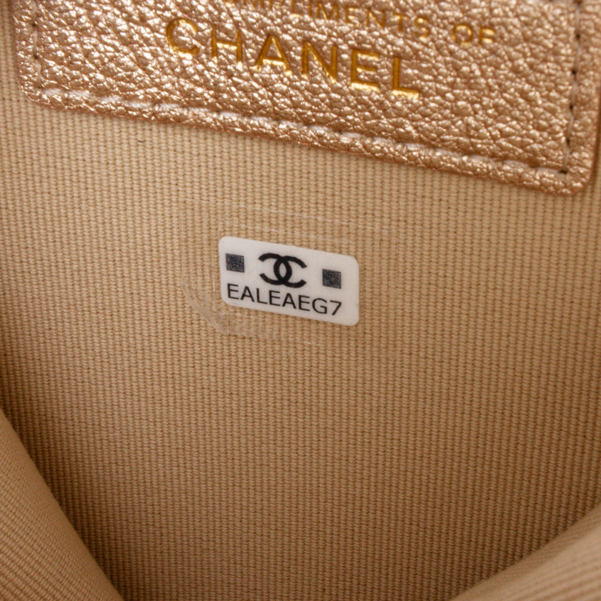 Chanel Metallic Quilted Lambskin Round Clip On Coin Purse Airpods Case