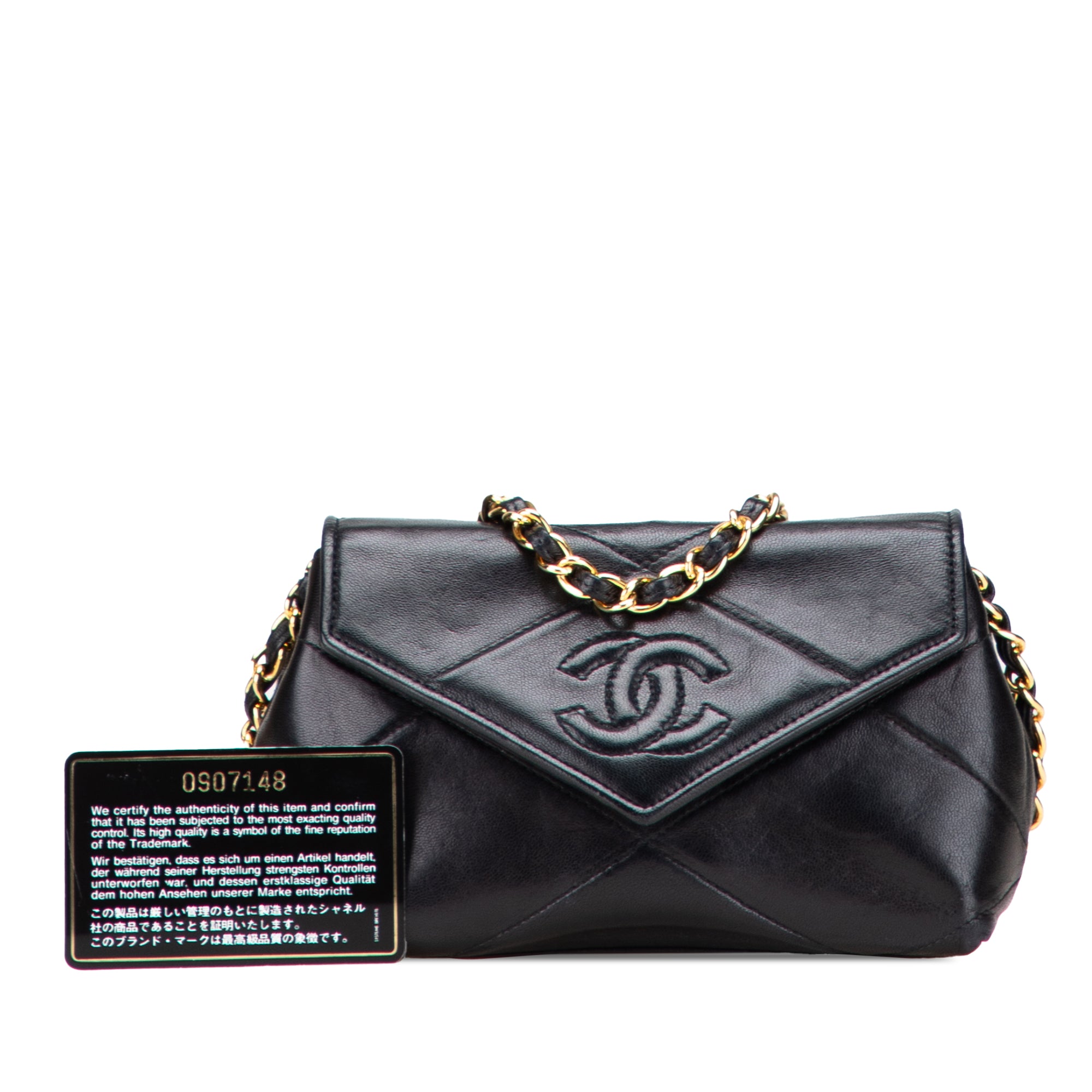 This crossbody bag features a quilted lambskin leather body, a leather woven chain link strap, a front flap closure, and an interior zip pocket. Inclusion: authenticity card. Retail Price: 3650.00