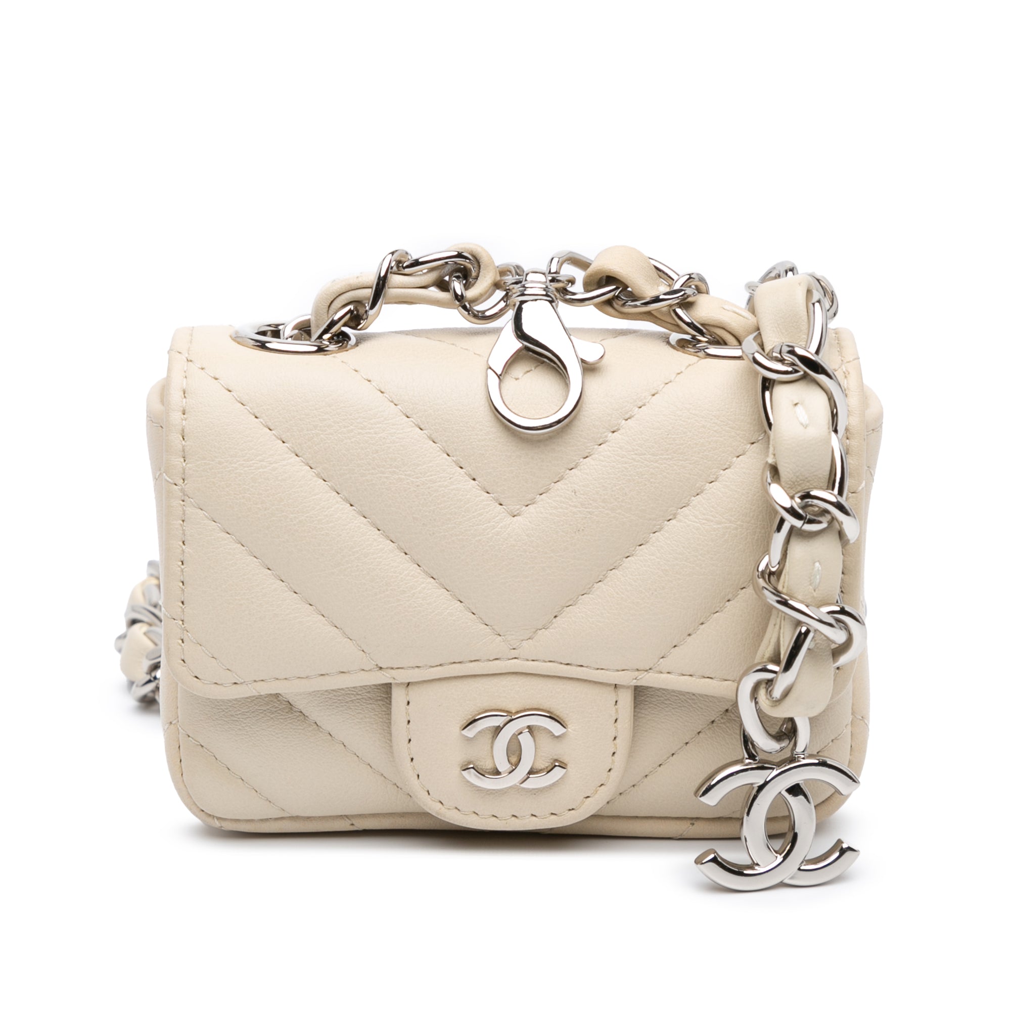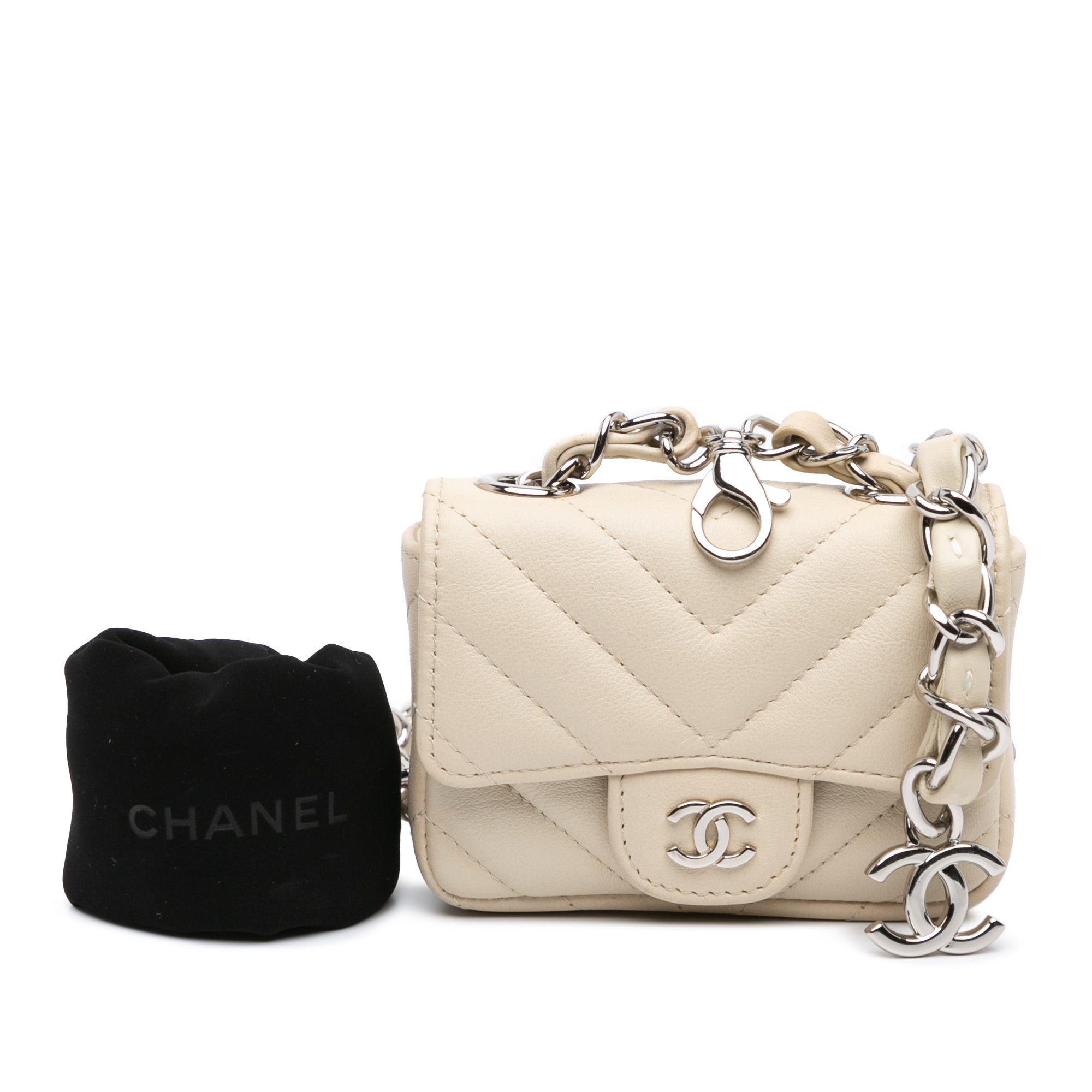 Chanel Mini Chevron Lambskin Card Holder Chain Belt Bag