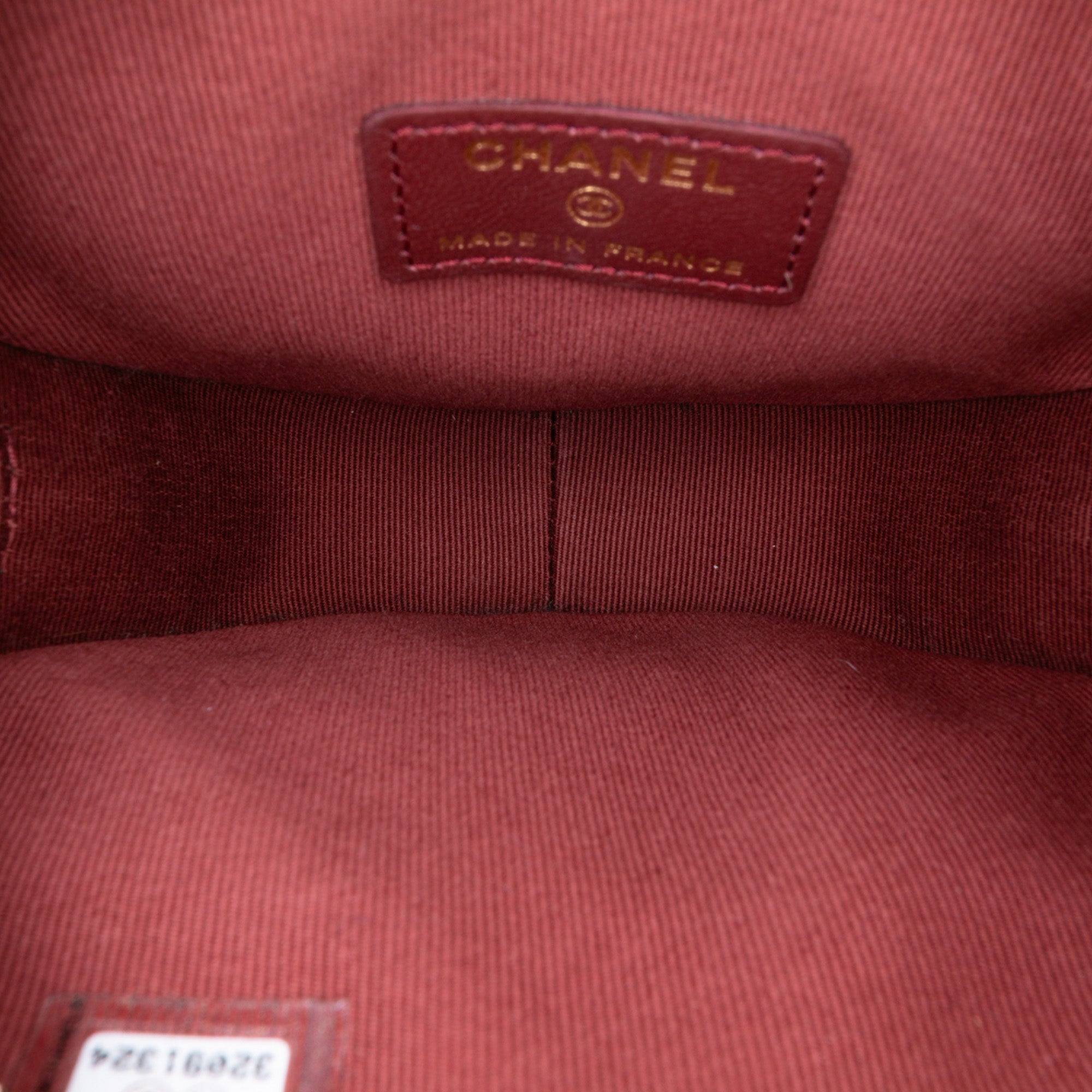 This crossbody bag features a quilted lambskin leather body, a leather woven chain shoulder strap, a zip-around closure, an exterior front flap pocket with CC turn-lock closure, and an exterior back slip pocket. Retail Price: 5500.00