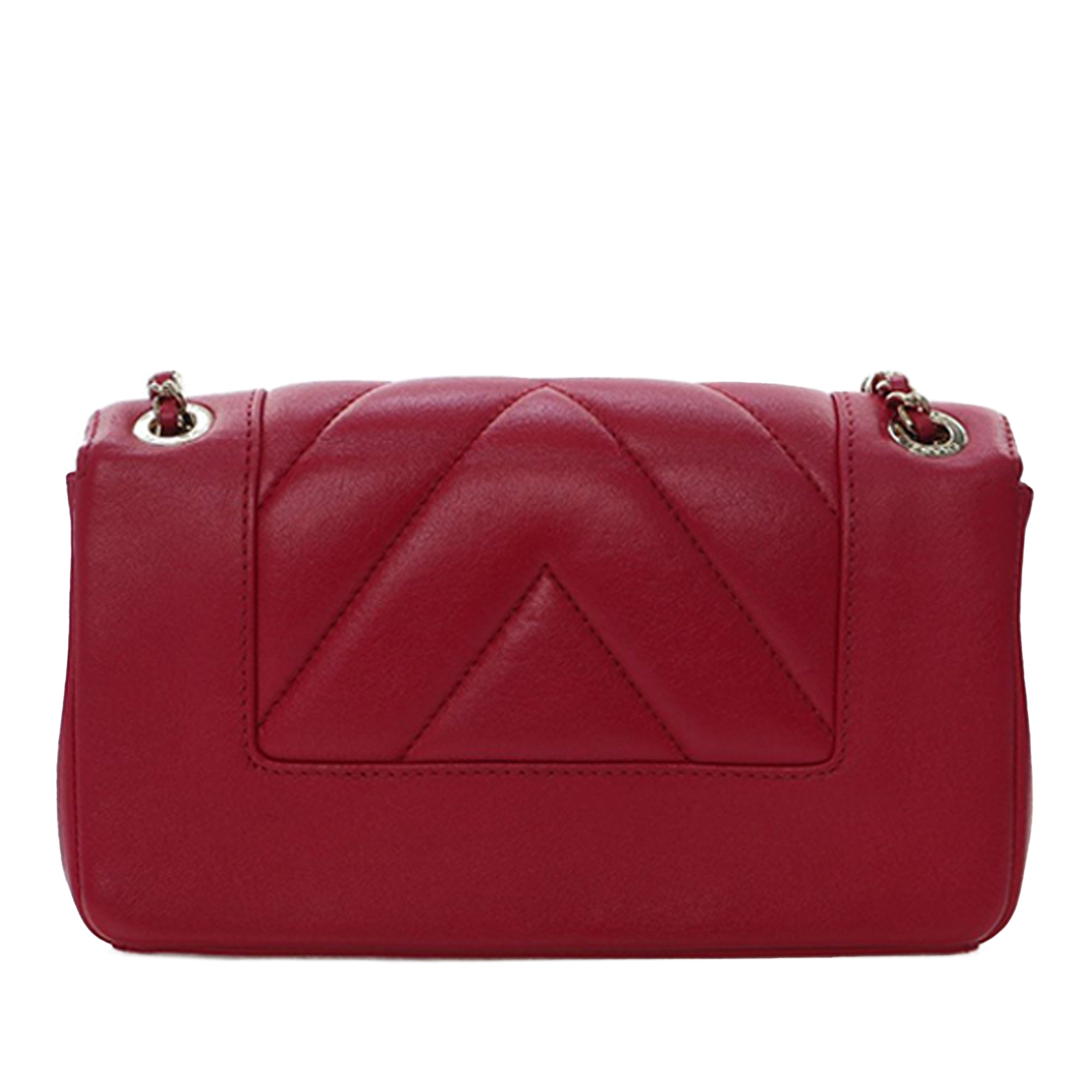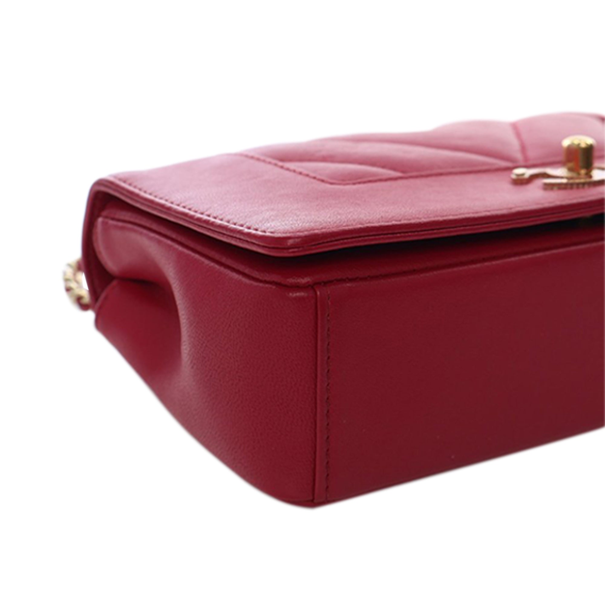 This crossbody bag features a chevron quilted sheepskin leather body, a chain link strap with leather guard, a front flap with CC turn-lock closure, and an interior zip pocket. Retail Price: 3602.00