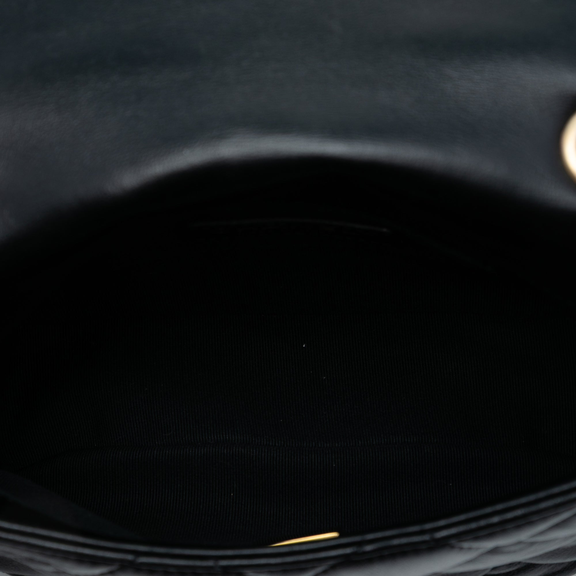 This flap features a quilted lambskin leather body, a leather woven lacquered chain link strap, a front flap with twist lock closure, and an interior slip pocket. Inclusion: Dust bag. Retail Price: 5000.00