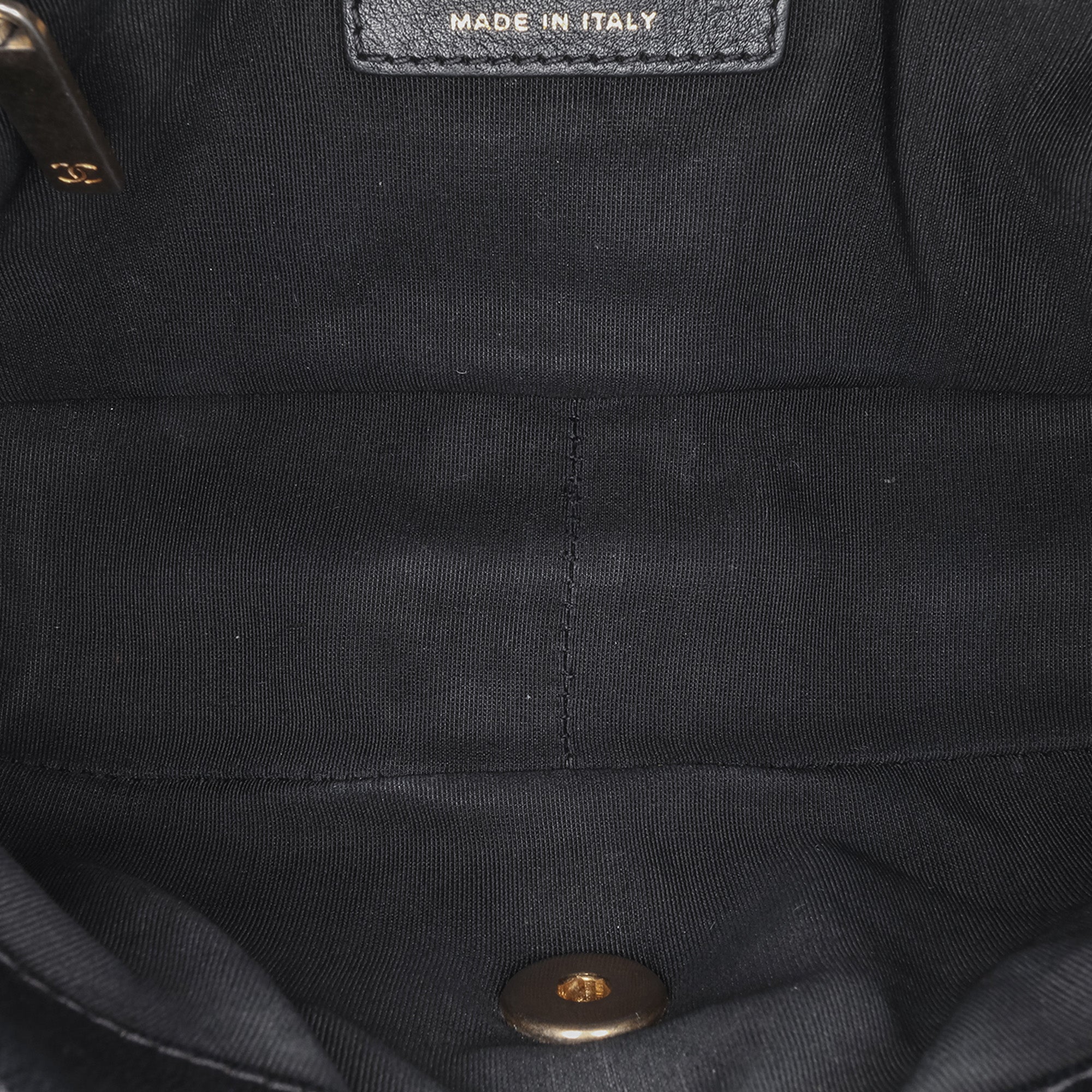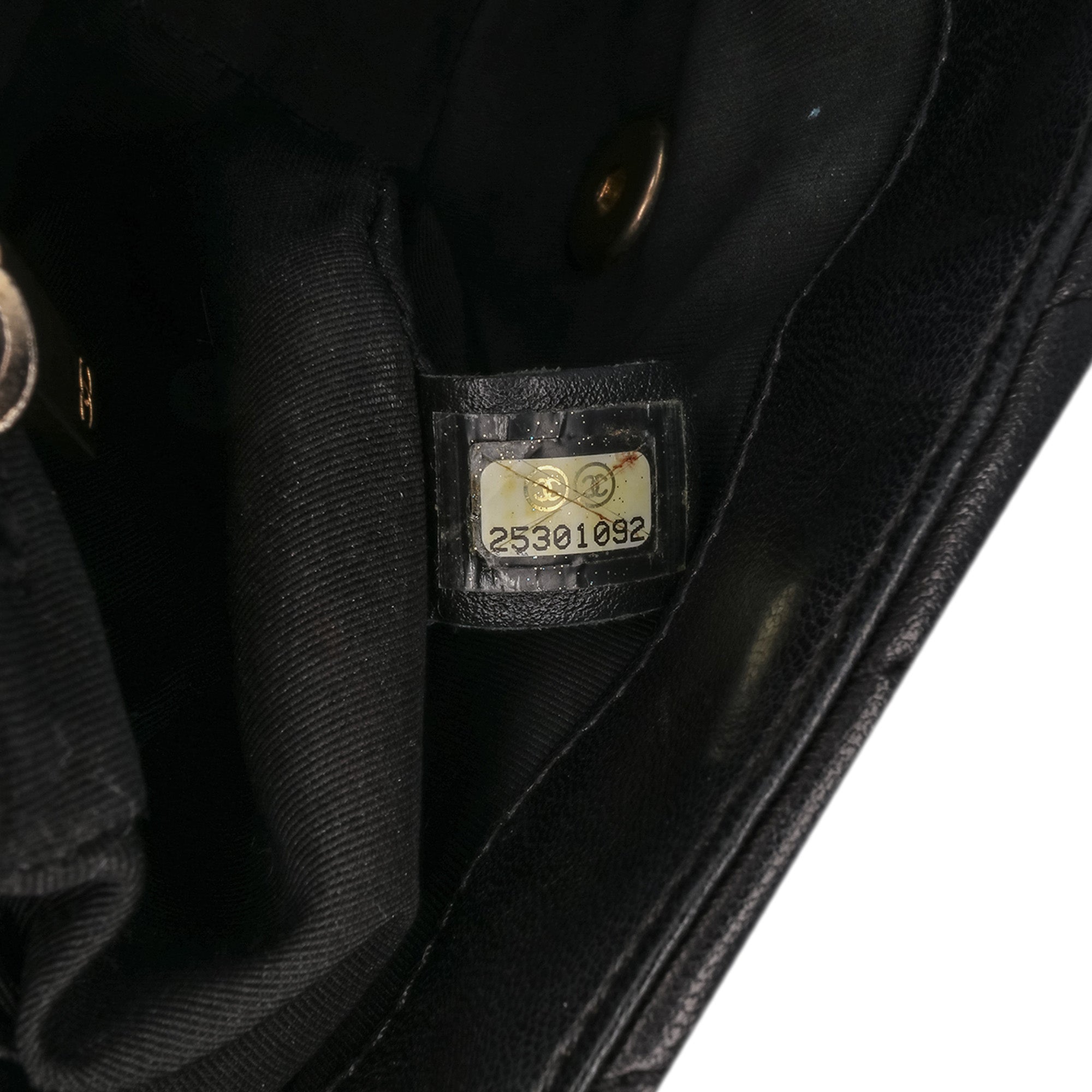 This crossbody bag features a quilted lambskin leather body, a leather woven chain shoulder strap with leather guard, a front flap with CC turn-lock closure, and an interior zip pocket. Retail Price: 5000.00