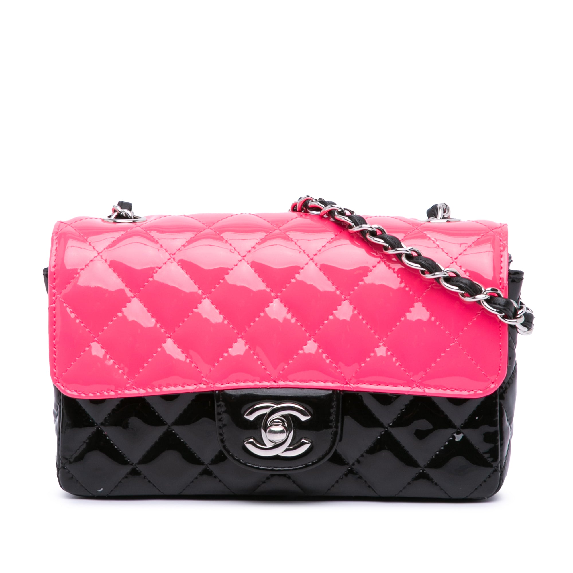 Chanel Mini Rectangular Classic Bicolor Patent Single Flap Secondhand