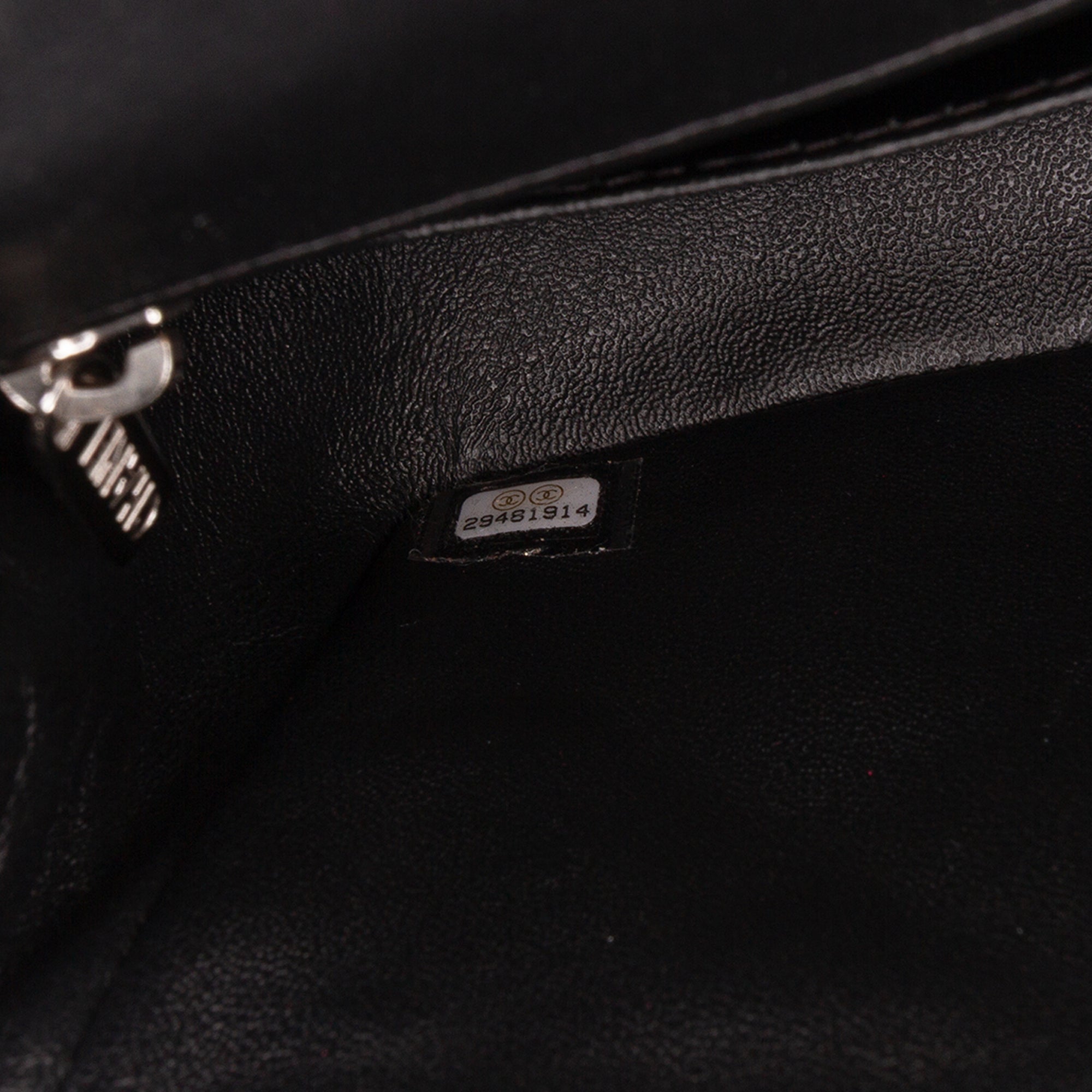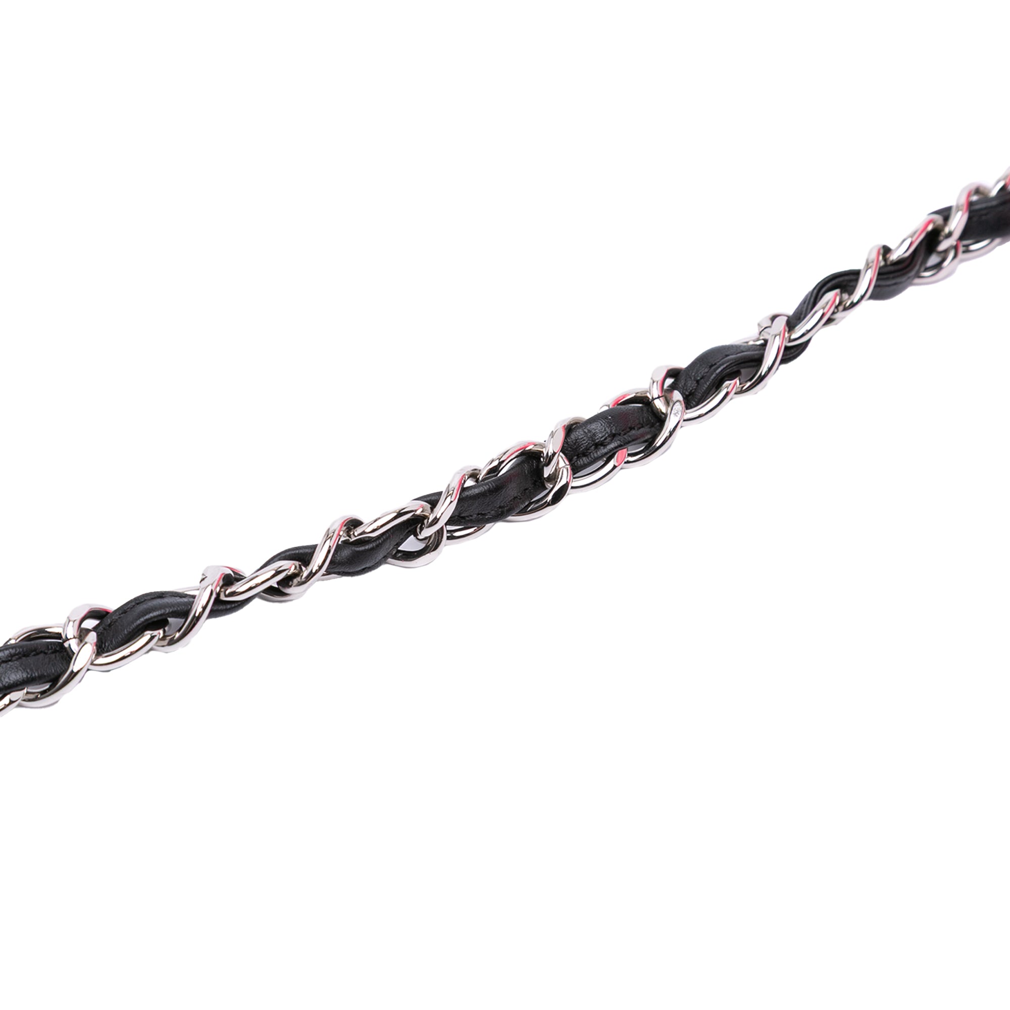 This crossbody bag features a quilted patent leather body, a leather woven chain strap, a front flap with interlocking Cs and a twist lock closure, an exterior back slip pocket, and interior zip and slip pockets. Inclusion: authenticity card. Retail Price: 6700.00