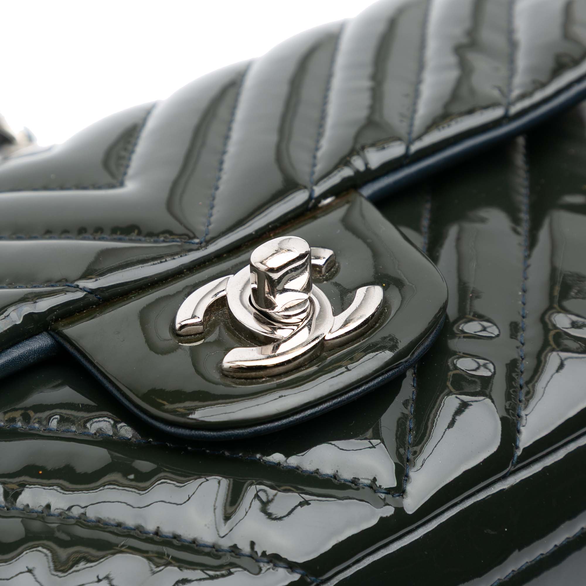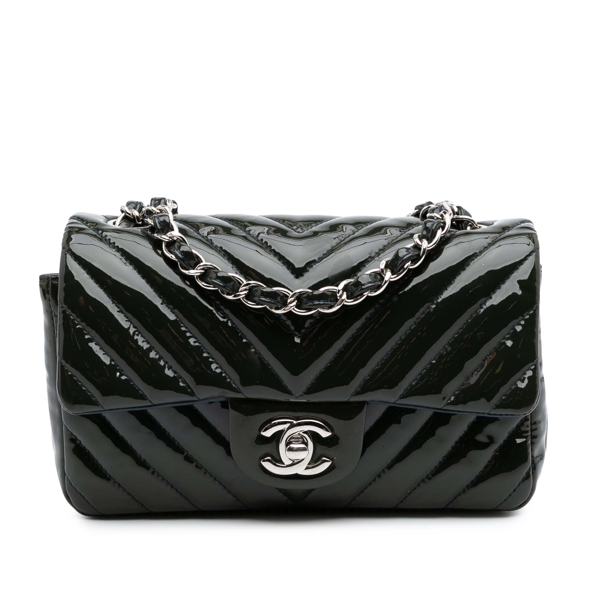 Chanel Mini Rectangular Classic Chevron Patent Single Flap Secondhand