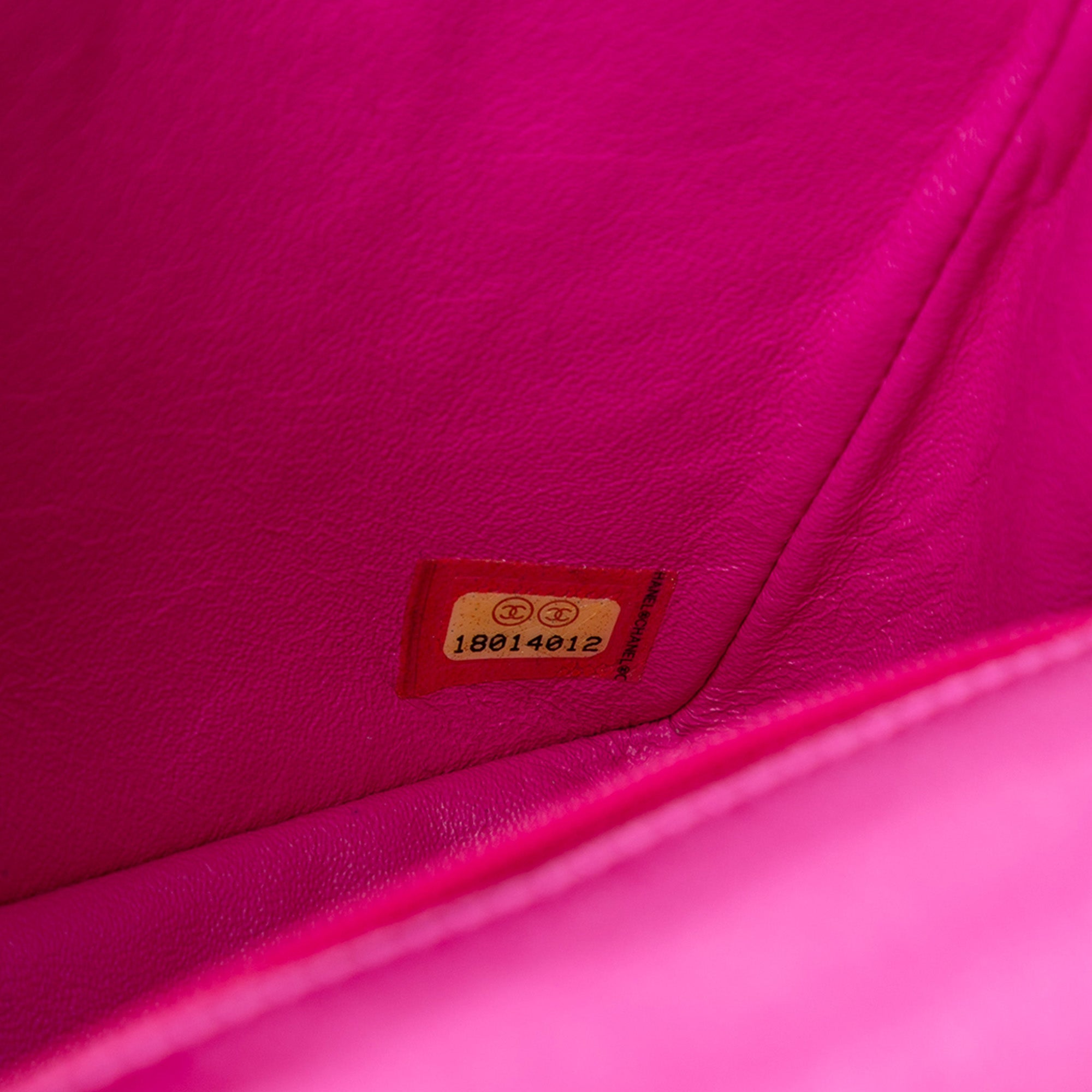 This flap bag features a quilted satin body, a satin-woven chain shoulder strap, a front flap with turn lock closure, an exterior back slip pocket, and interior zip and slip pockets. Inclusion: authenticity card. Retail Price: 4400.00