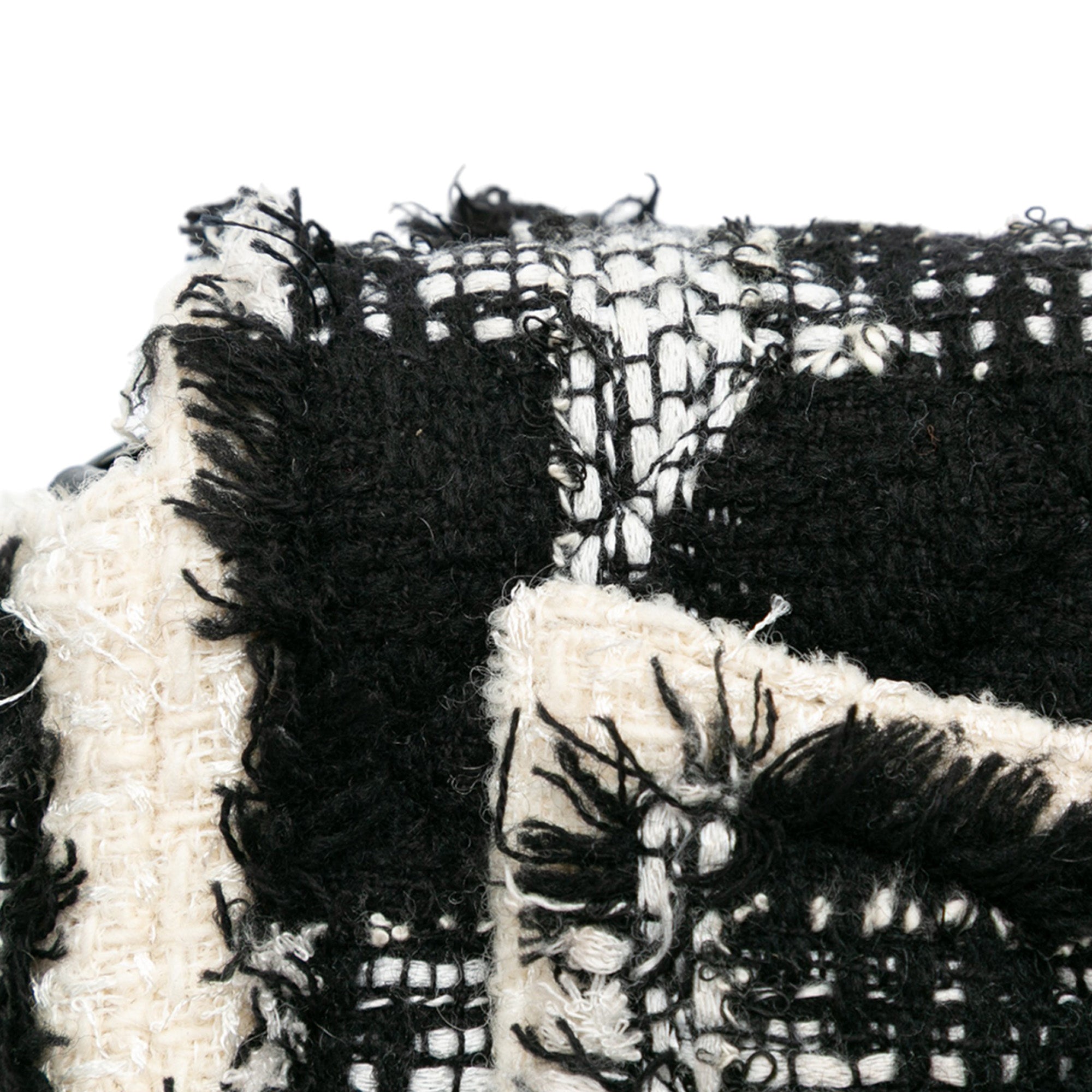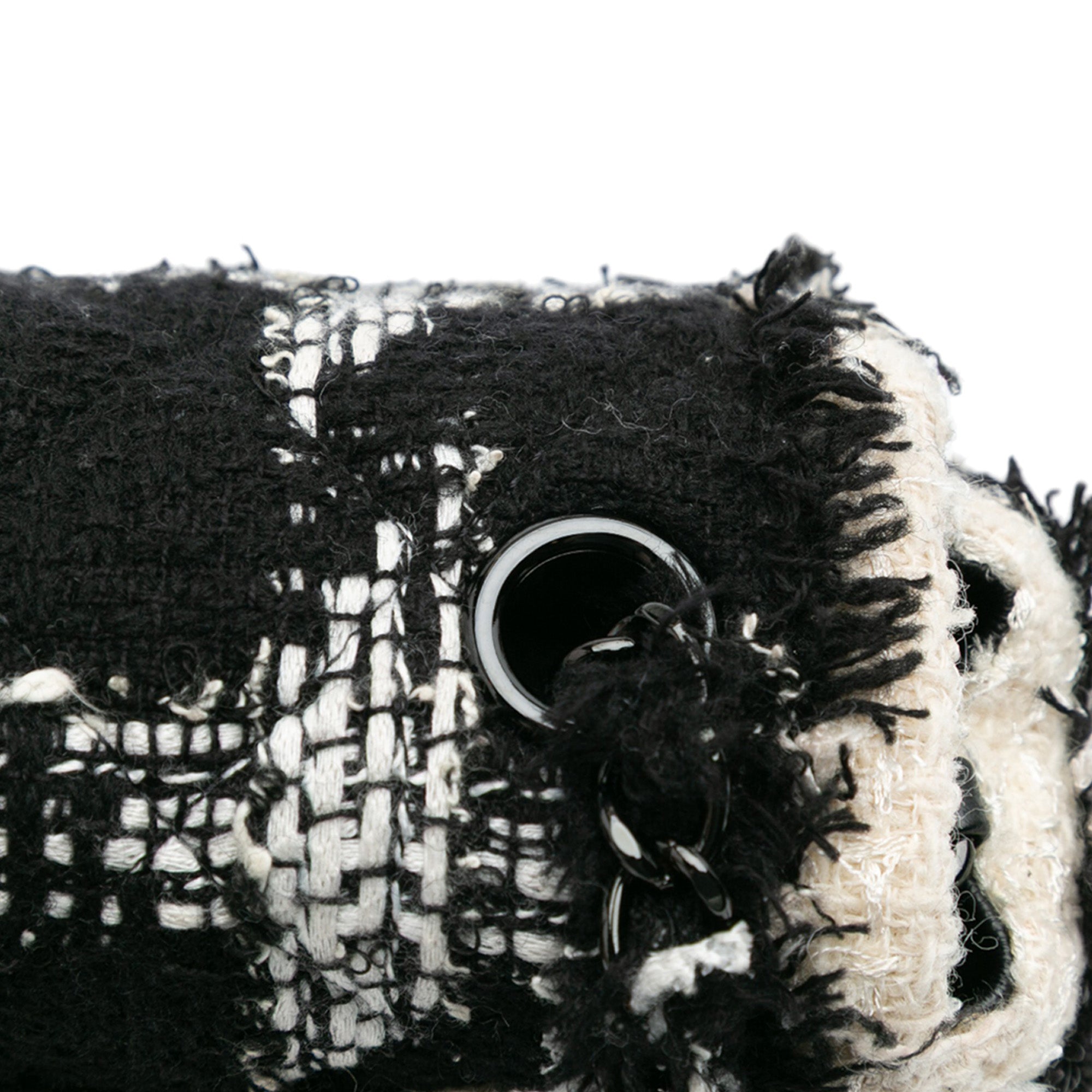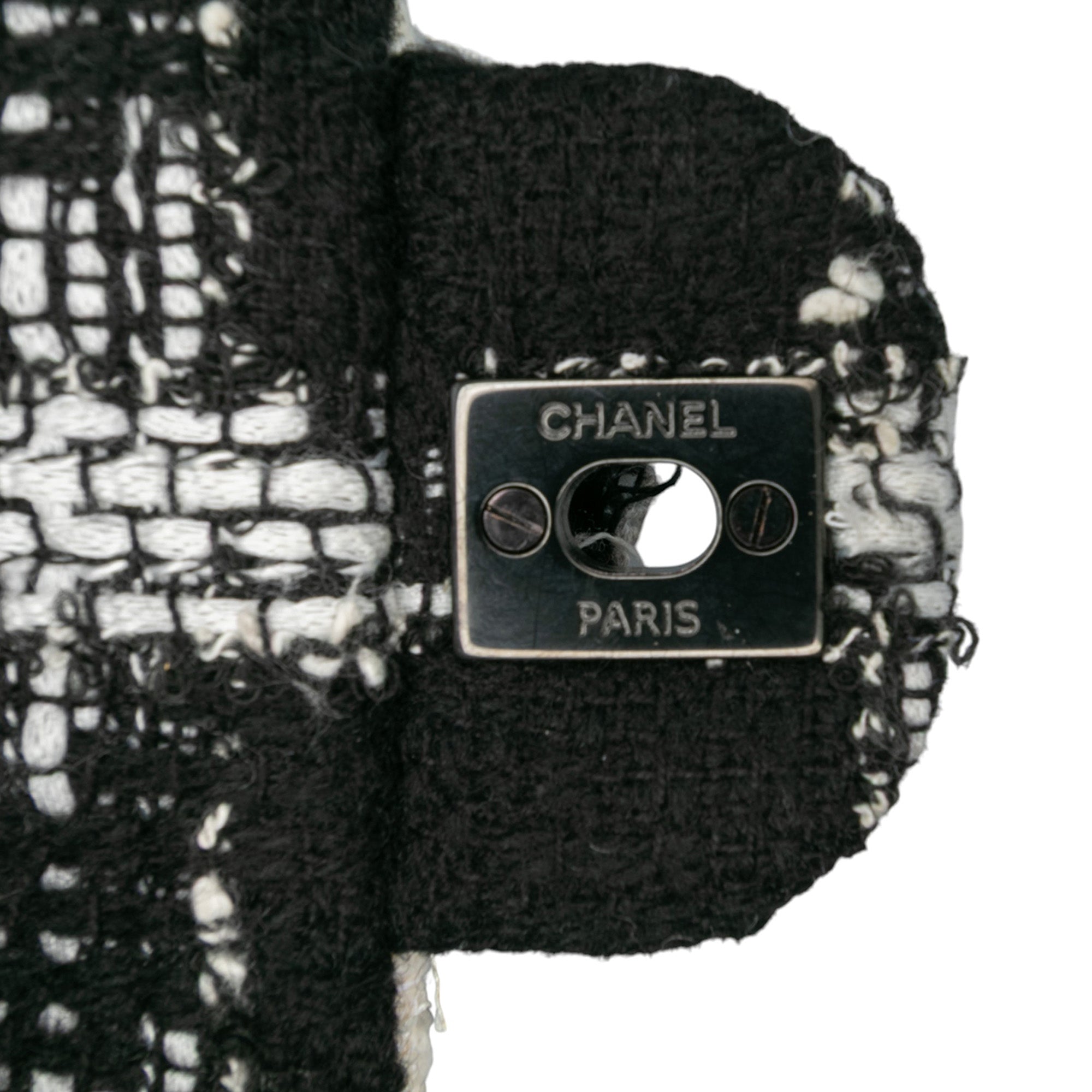 This flap bag features a quilted tweed body, a tweed woven chain strap, a front flap with interlocking Cs and a twist lock closure, an exterior back slip pocket, and interior zip and slip pockets. Inclusion: authenticity card. Retail Price: 6000.00