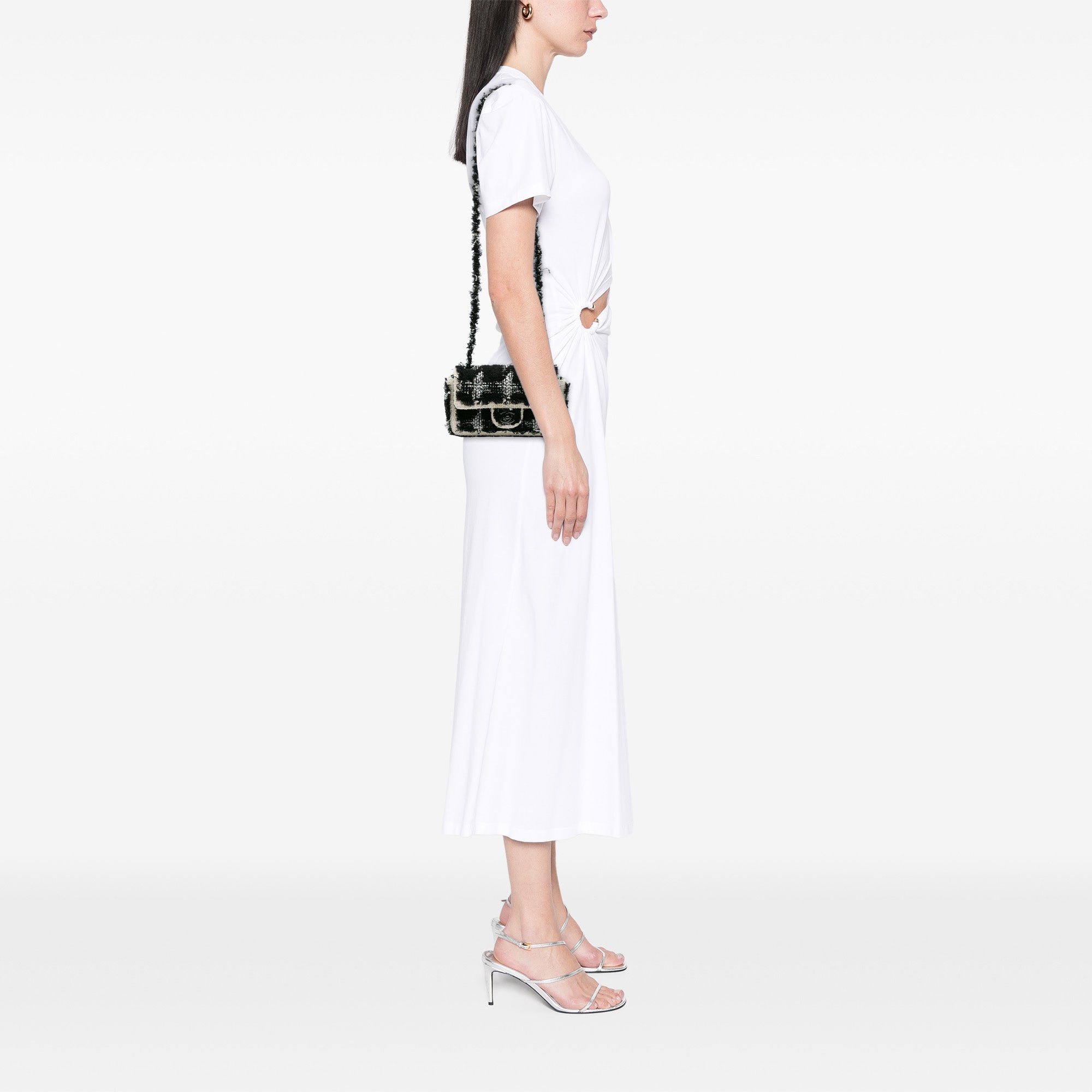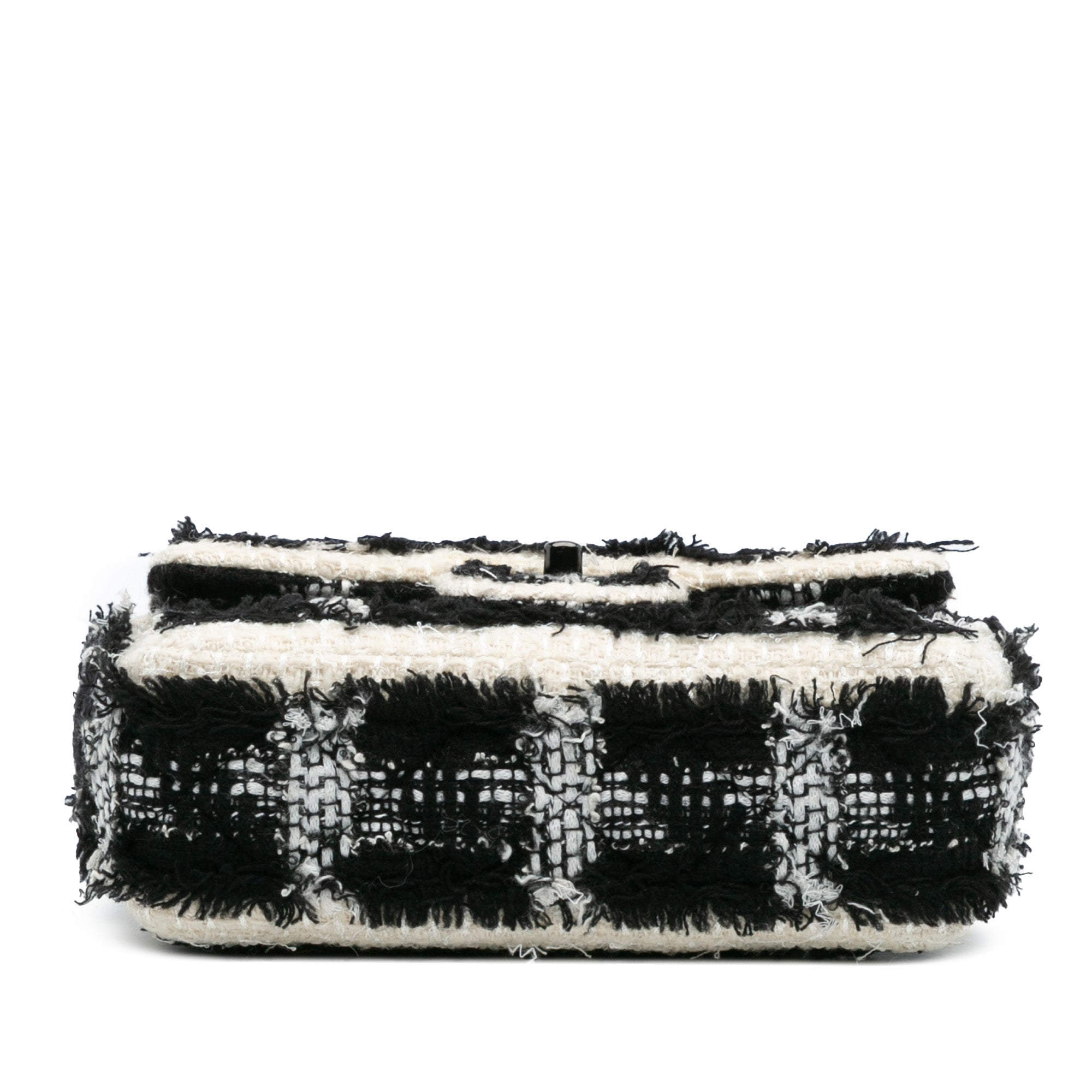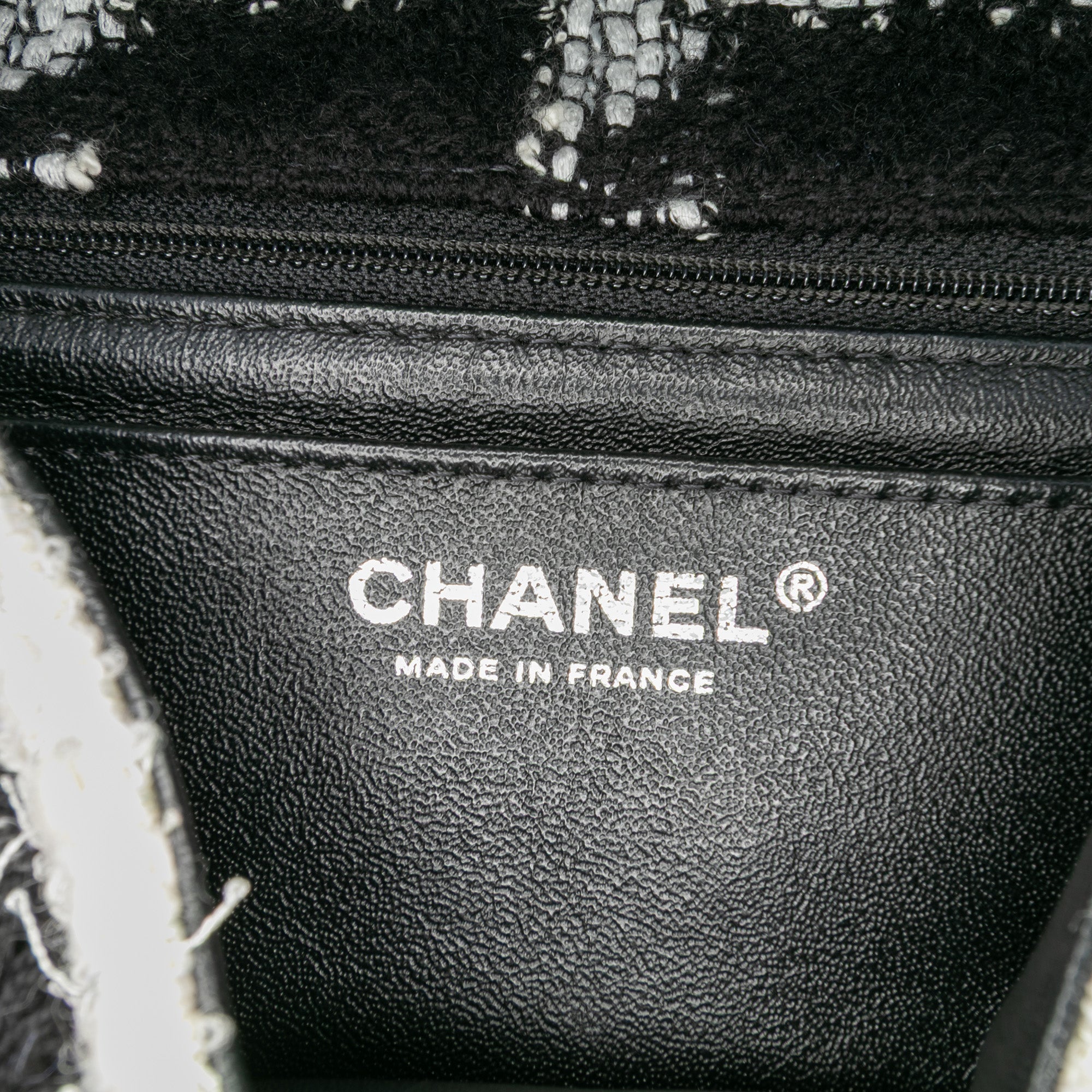 This flap bag features a quilted tweed body, a tweed woven chain strap, a front flap with interlocking Cs and a twist lock closure, an exterior back slip pocket, and interior zip and slip pockets. Inclusion: authenticity card. Retail Price: 6000.00