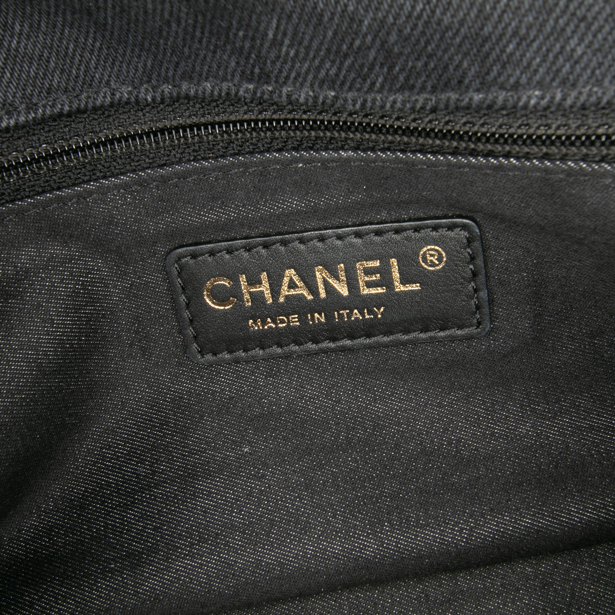This crossbody bag features a quilted denim body, denim woven chain strap with denim shoulder guard, a front flap with twist lock closure, an exterior back slip pocket, and an interior zip pocket. Retail Price: 5900.00