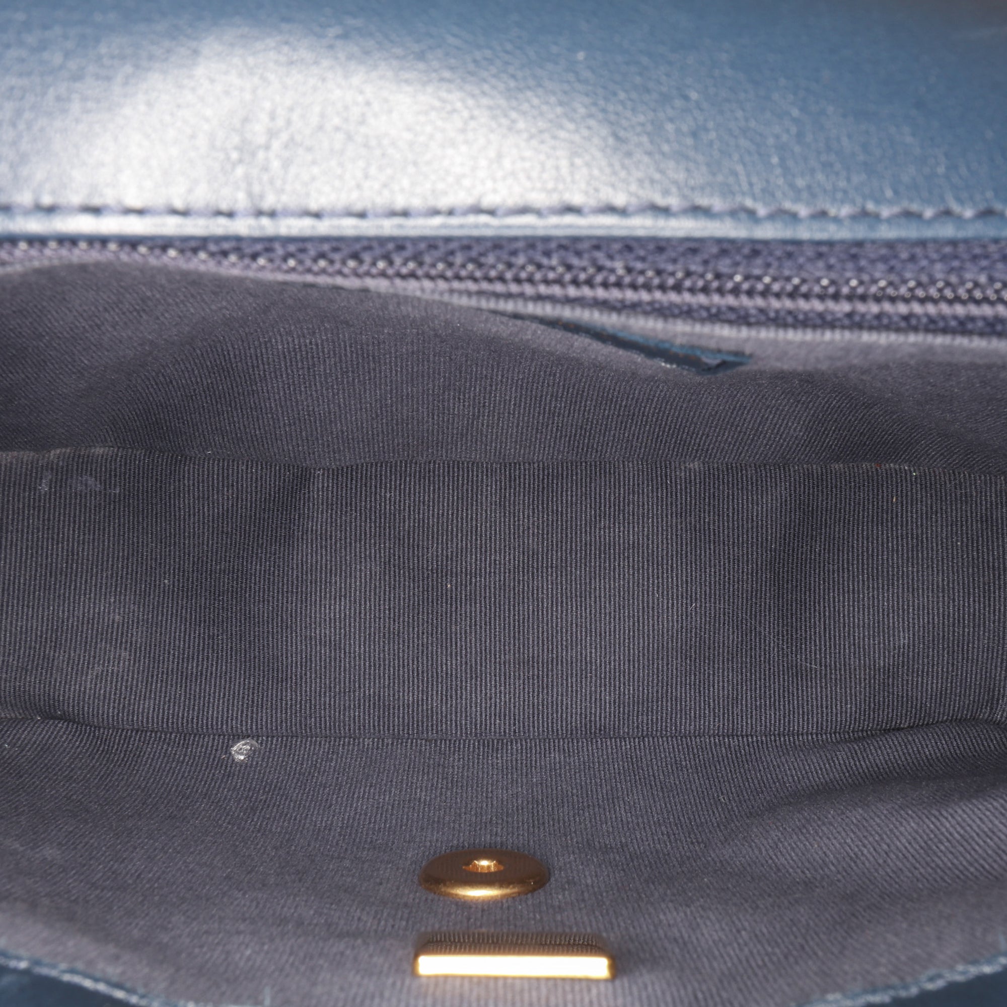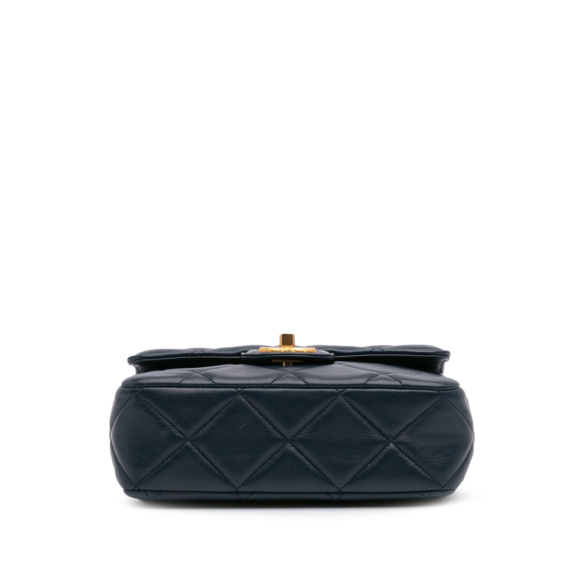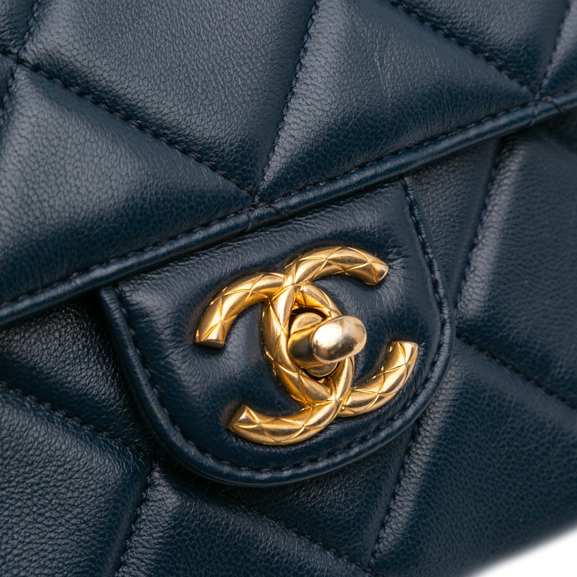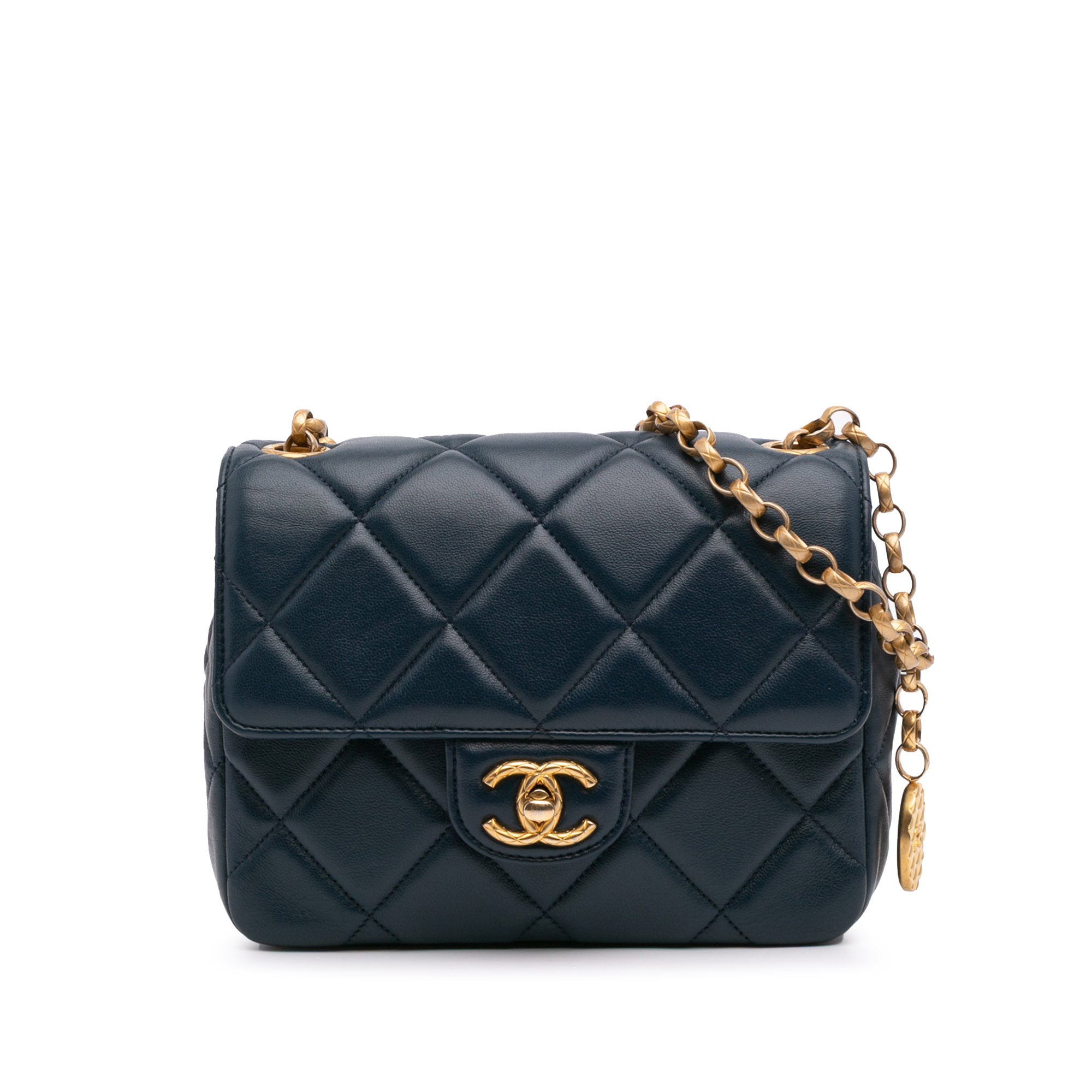 This crossbody features a quilted lambskin leather body, a gold-tone chain link strap, a flap with CC twist-lock closure, and an interior zip pocket. Retail Price: 4400.00