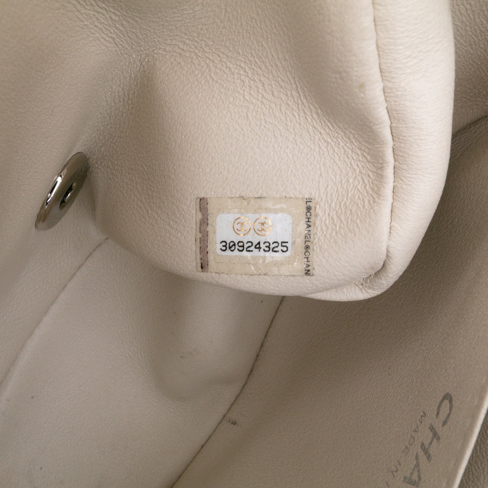 The Mini Chevron Classic Flap features a quilted lambskin leather body, a leather woven chain strap, a front flap with CC turn lock closure, an exterior back slip pocket, and interior zip and slip pockets. Inclusion: authenticity card. Retail Price: 4900.00