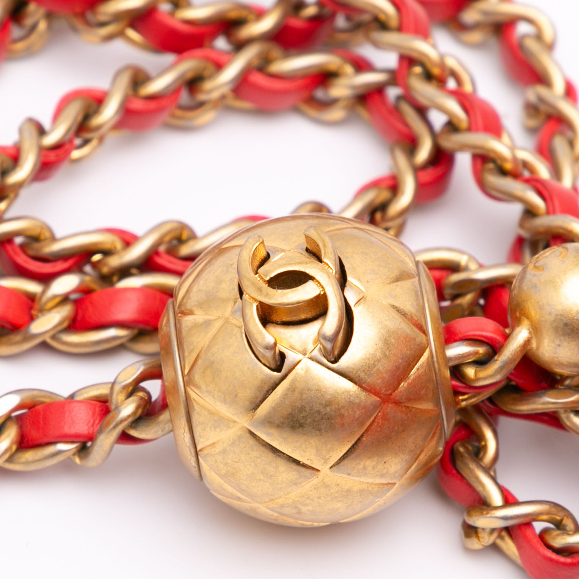 This crossbody bag features a quilted lambskin leather body, a leather woven chain shoulder strap with ball detail, a front flap with CC turn-lock closure, an exterior back slip pocket, and interior zip and slip pockets. Inclusion: authenticity card. Retail Price: 4175.00