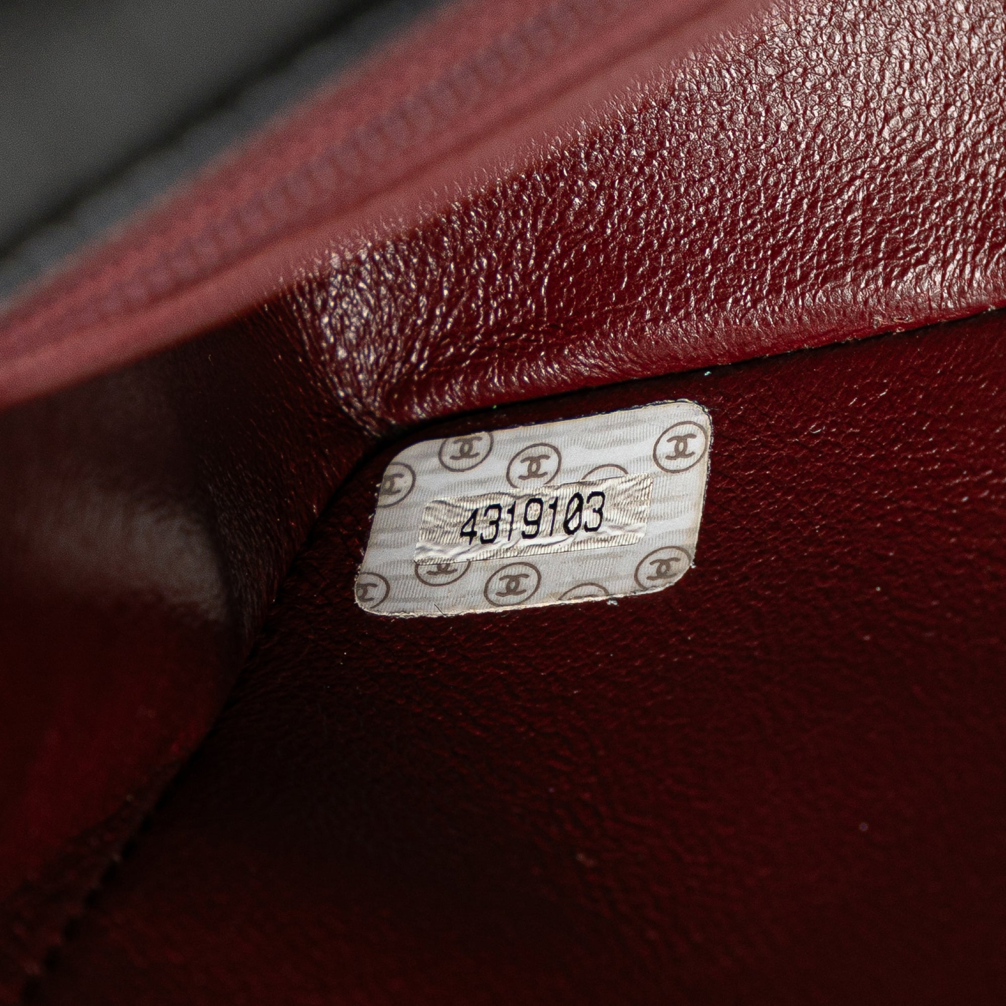 The Square Flap features a lambskin leather body, a leather woven chain shoulder strap, a front flap with turnlock closure, an exterior back slip pocket, and interior zip and slip pockets. Retail Price: 6850.00