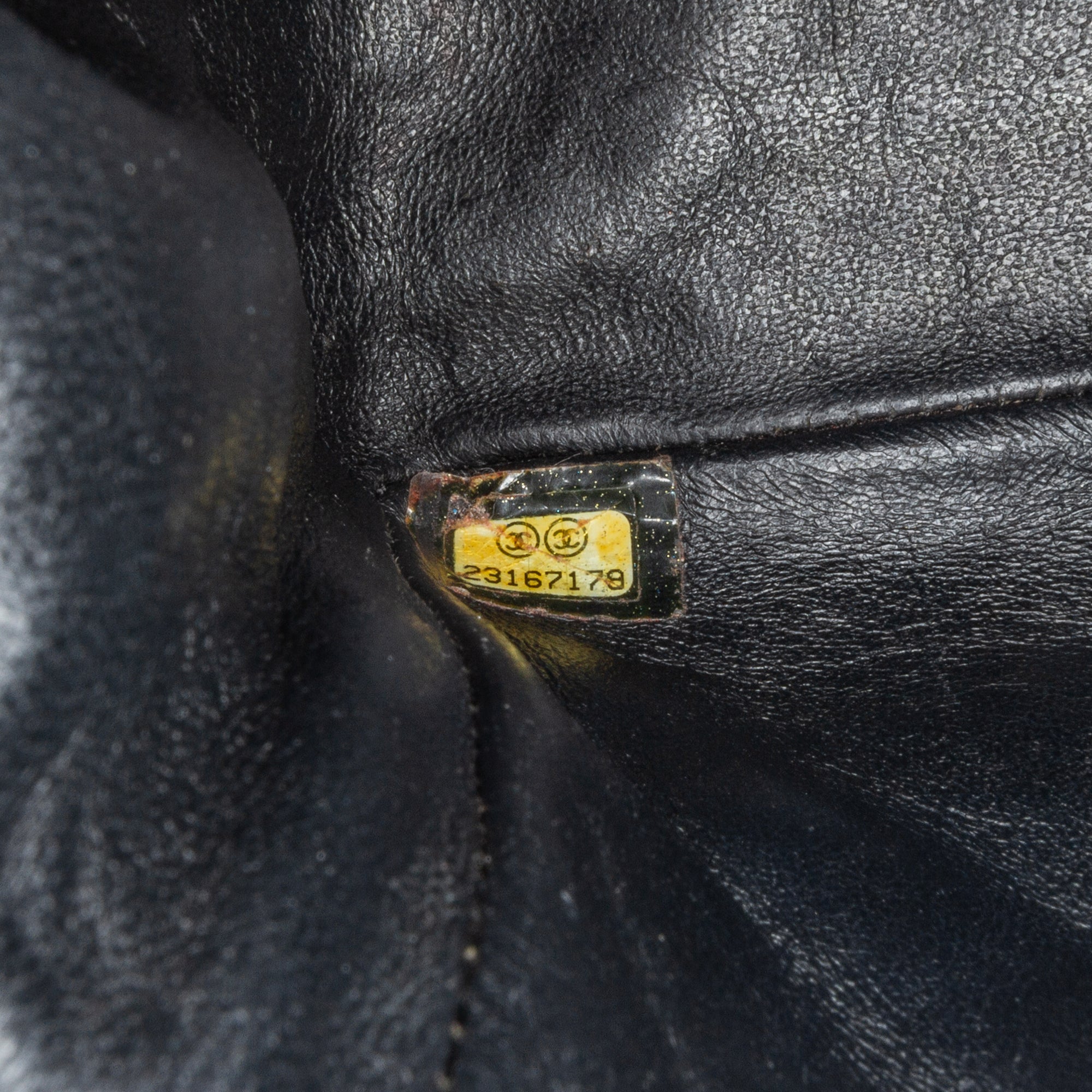 This flap bag features a quilted patent leather body, a leather woven chain shoulder strap, a front flap with interlocking Cs and a twist lock closure, an exterior back slip pocket, and interior zip and slip pockets. Retail Price: 4850.00