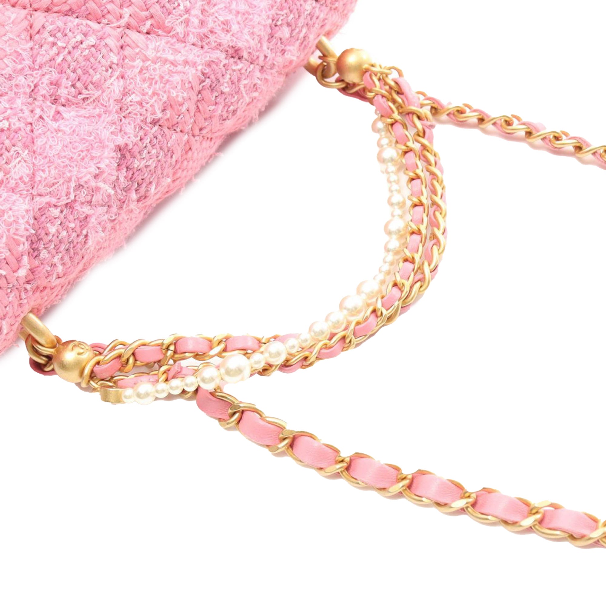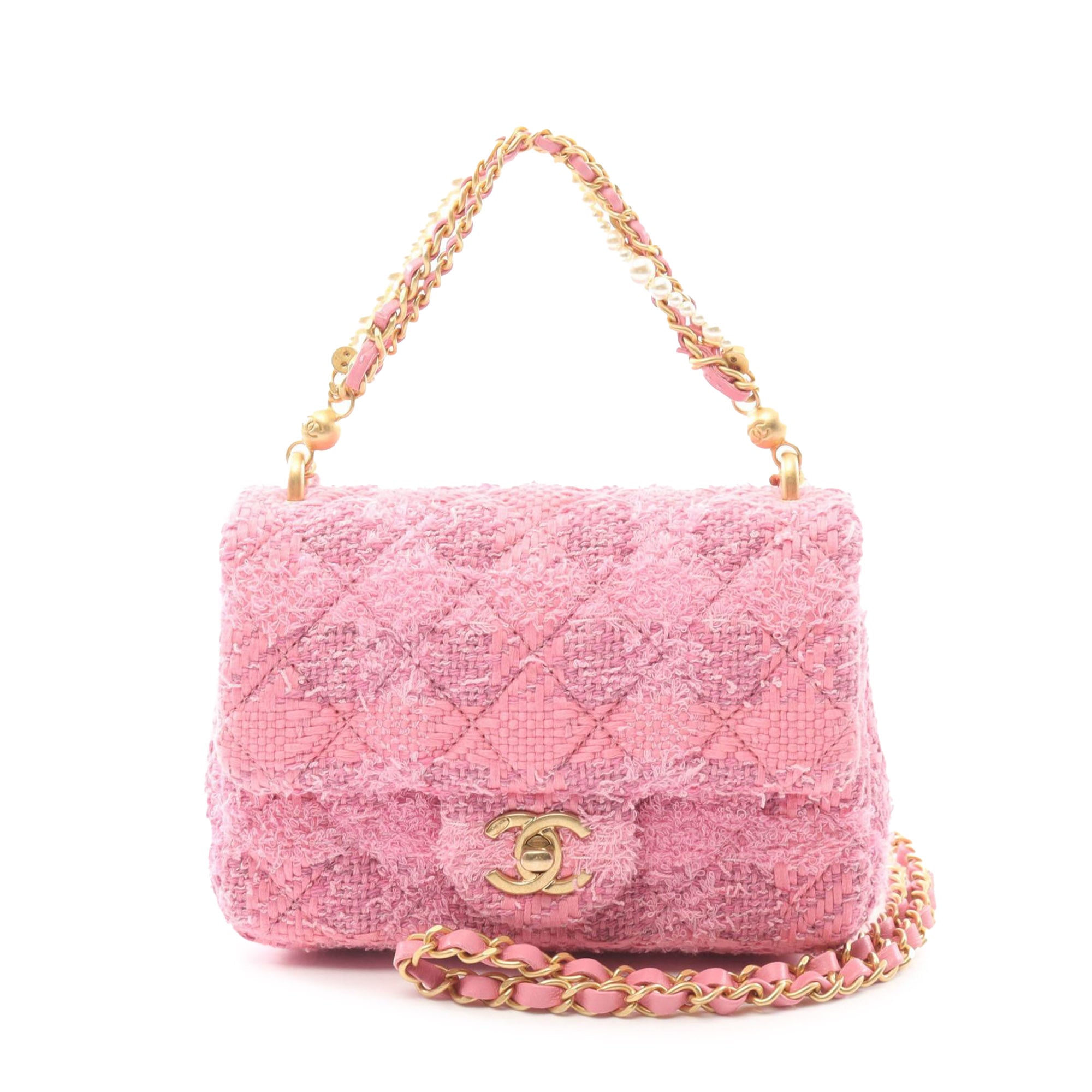 Chanel Mini Square Quilted Woven Tweed Pearl Twist Flap