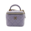 The Chanel Light Purple Mini Vanity Box features a delicate purple hue accented with elegant gold hardware. This compact piece blends luxury and sophistication, making it the perfect accessory for adding a refined touch to any outfit.