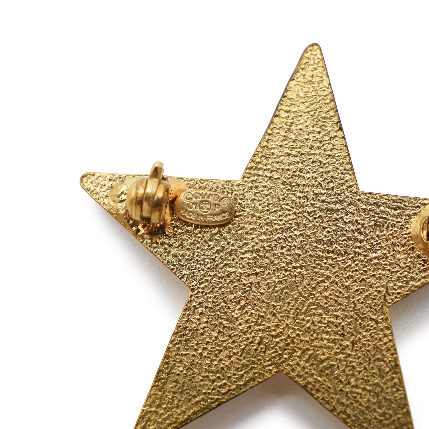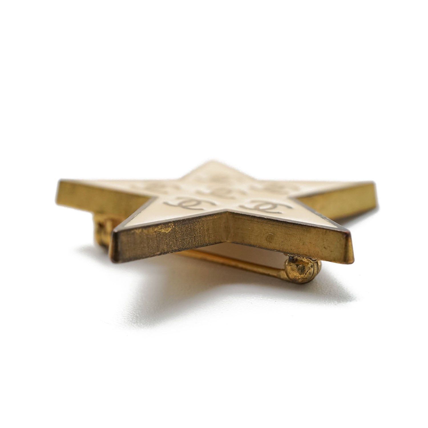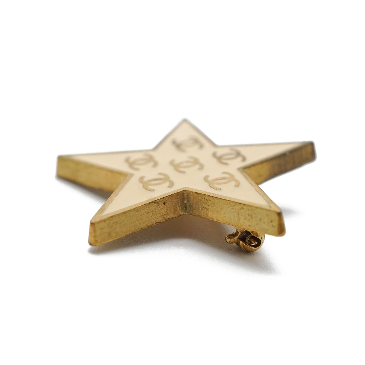 Multiple CC Star Brooch Cream white/Gold BrassDepth: 0.2cmHeight: 3cmWidth: 3.4cmDiscoloration: Some tarnish on the backScratch: Minor scratch on the leftSerial code: 01P