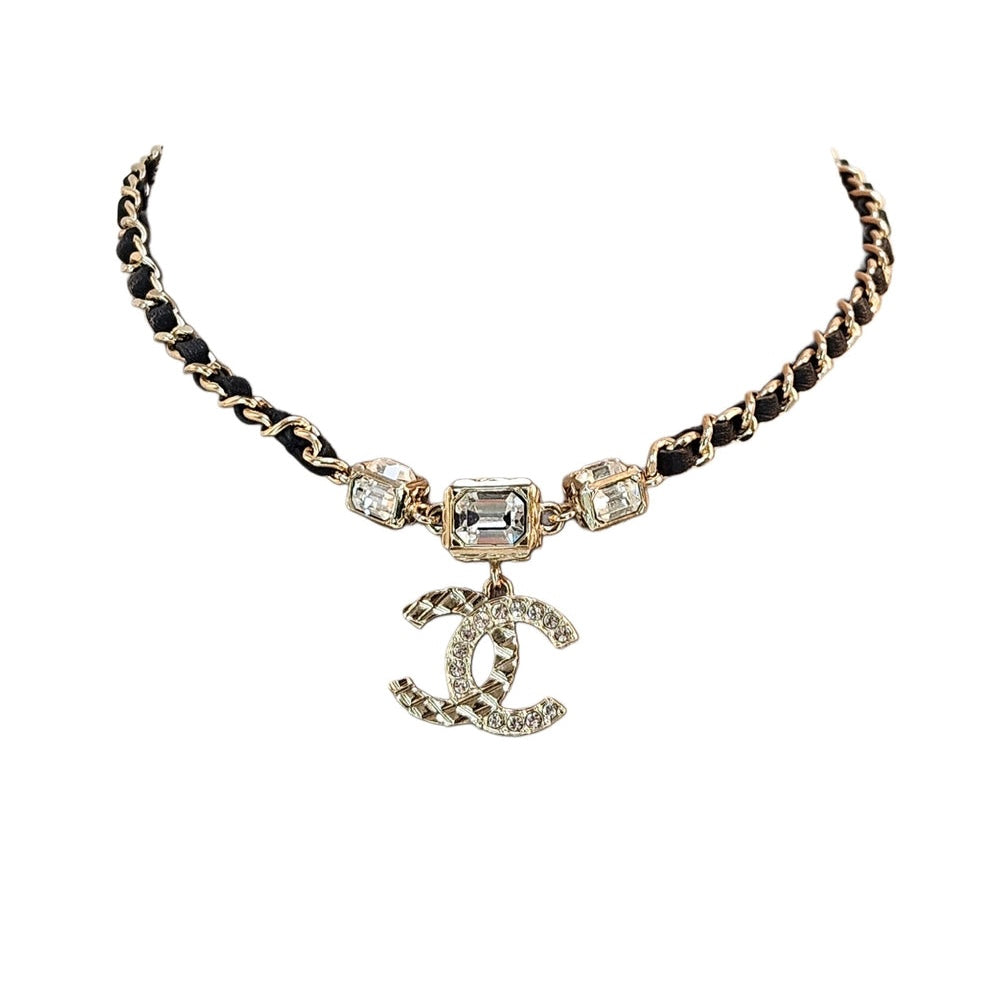 Chanel choker necklace in gold-plated metal with white CC Total dimension adjustable from 30 to 40cm present punch sold in a neutral box excellent condition