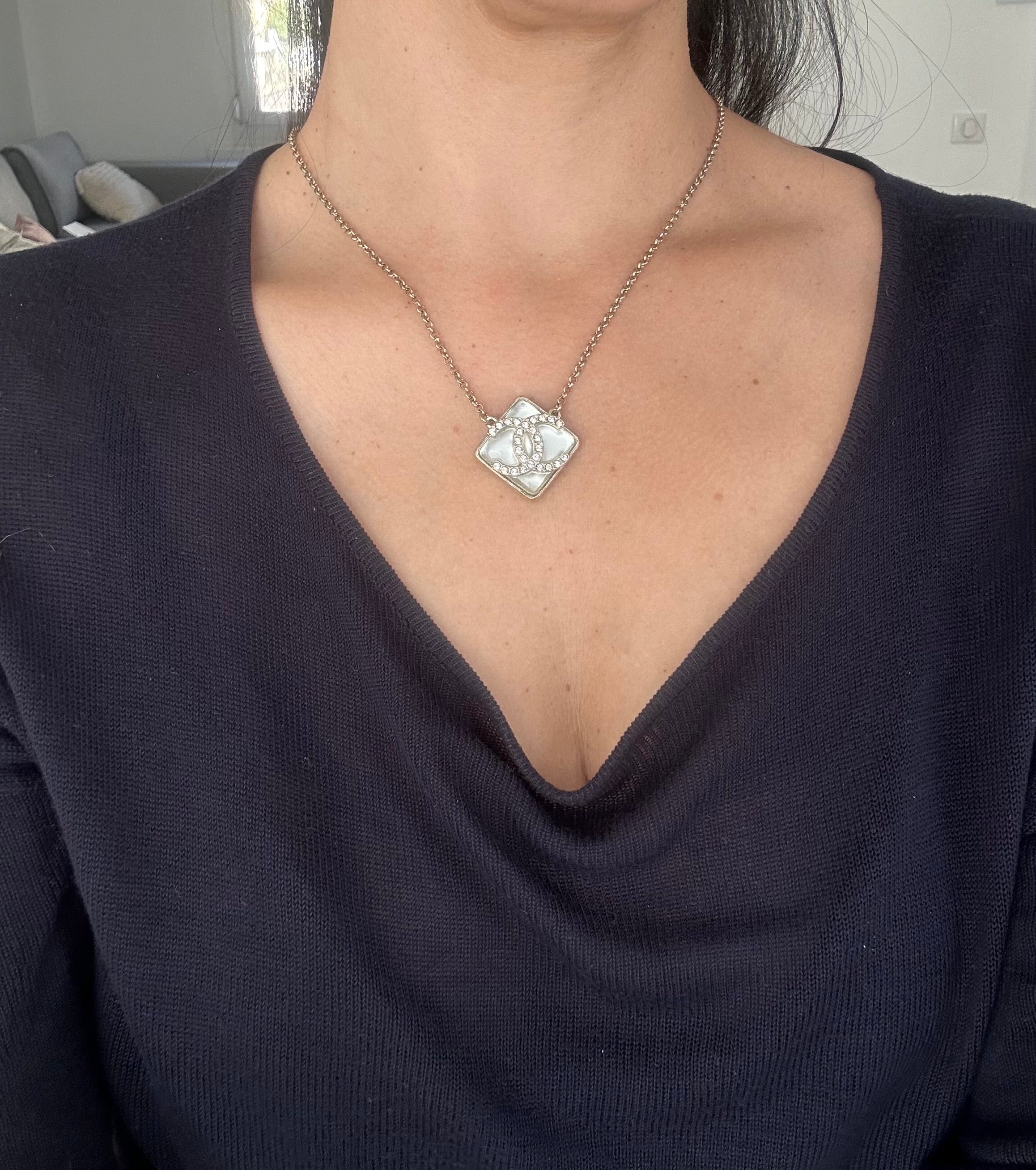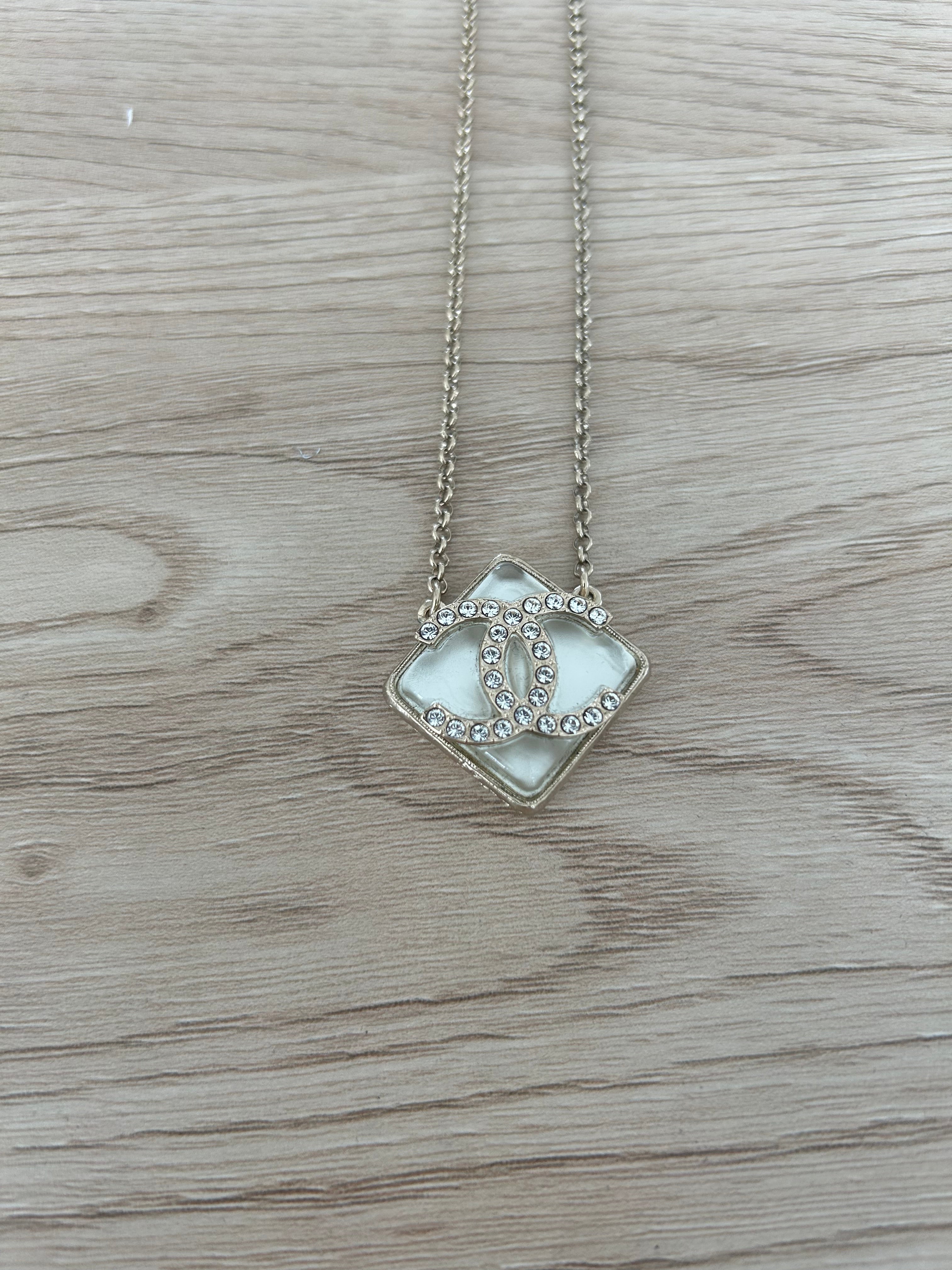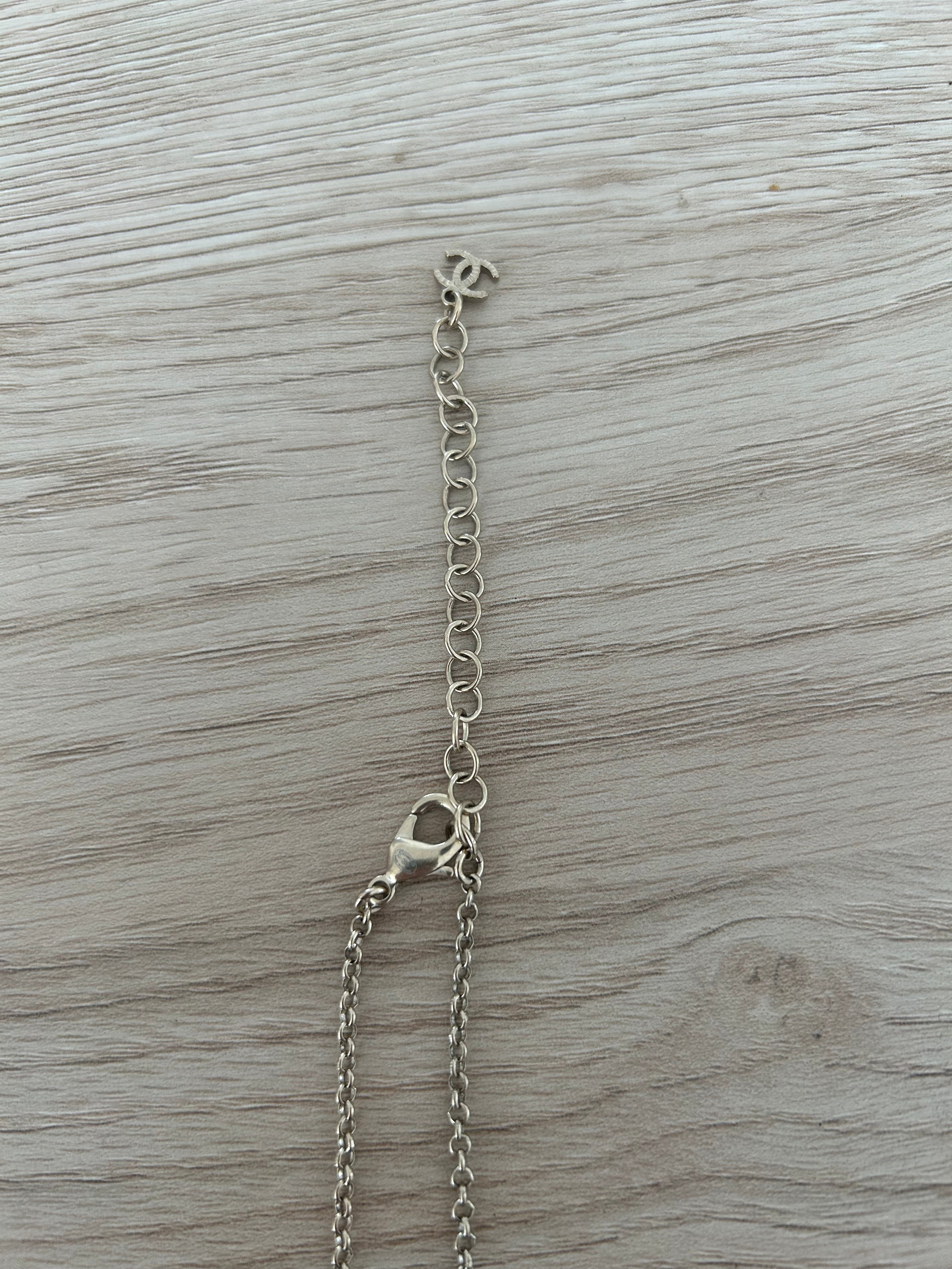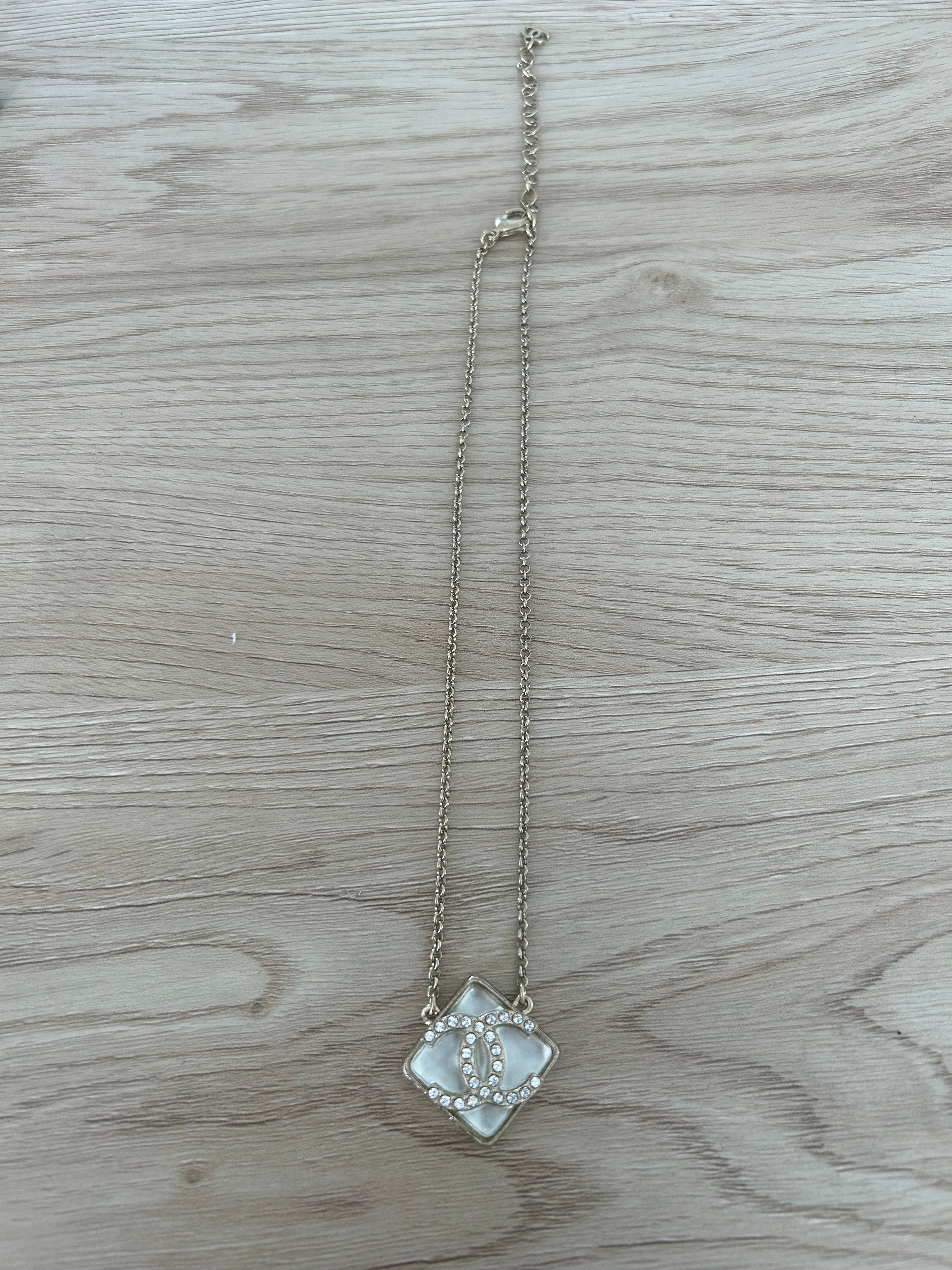 Chanel choker necklace in gold-plated metal with white CC Total dimension adjustable from 30 to 40cm present punch sold in a neutral box excellent condition