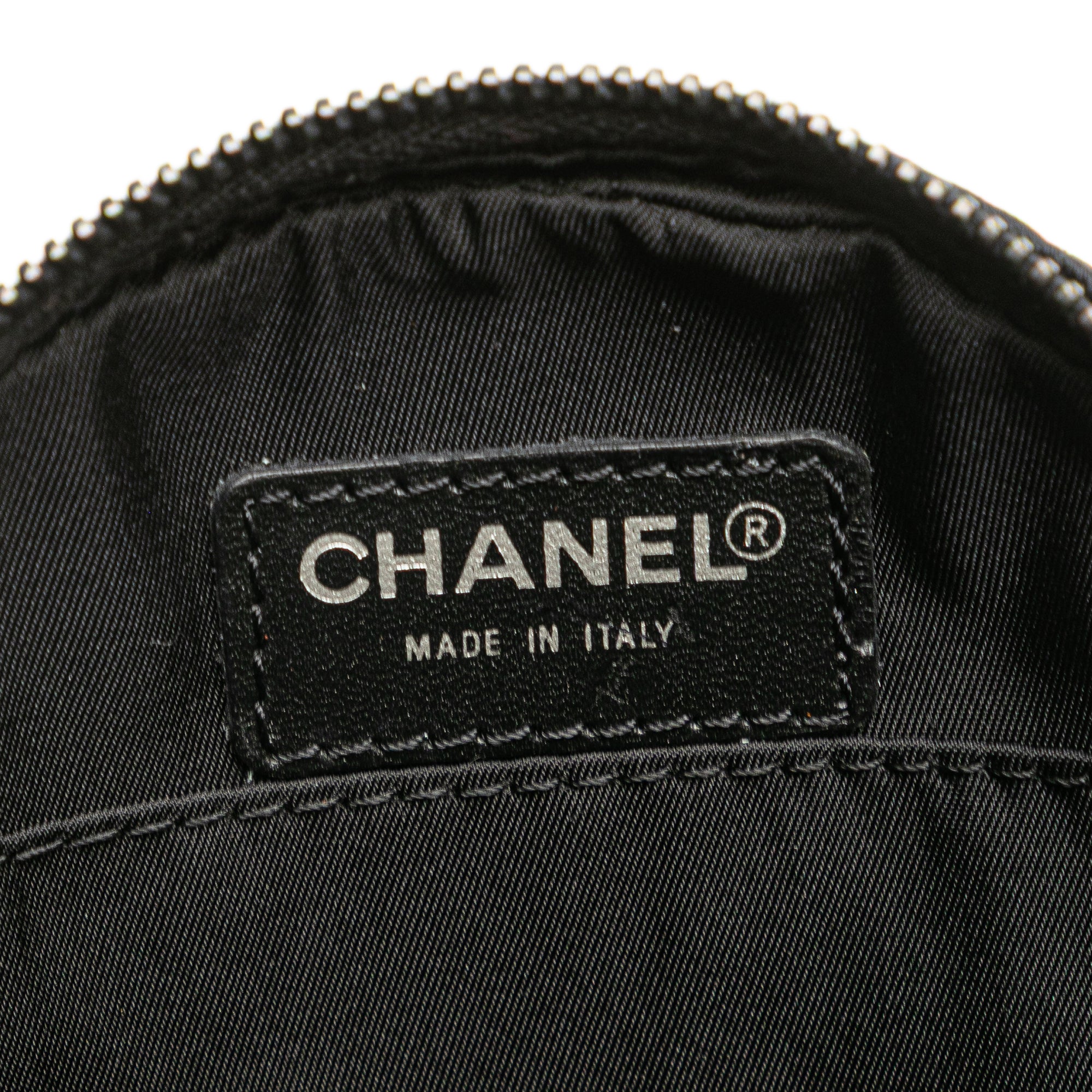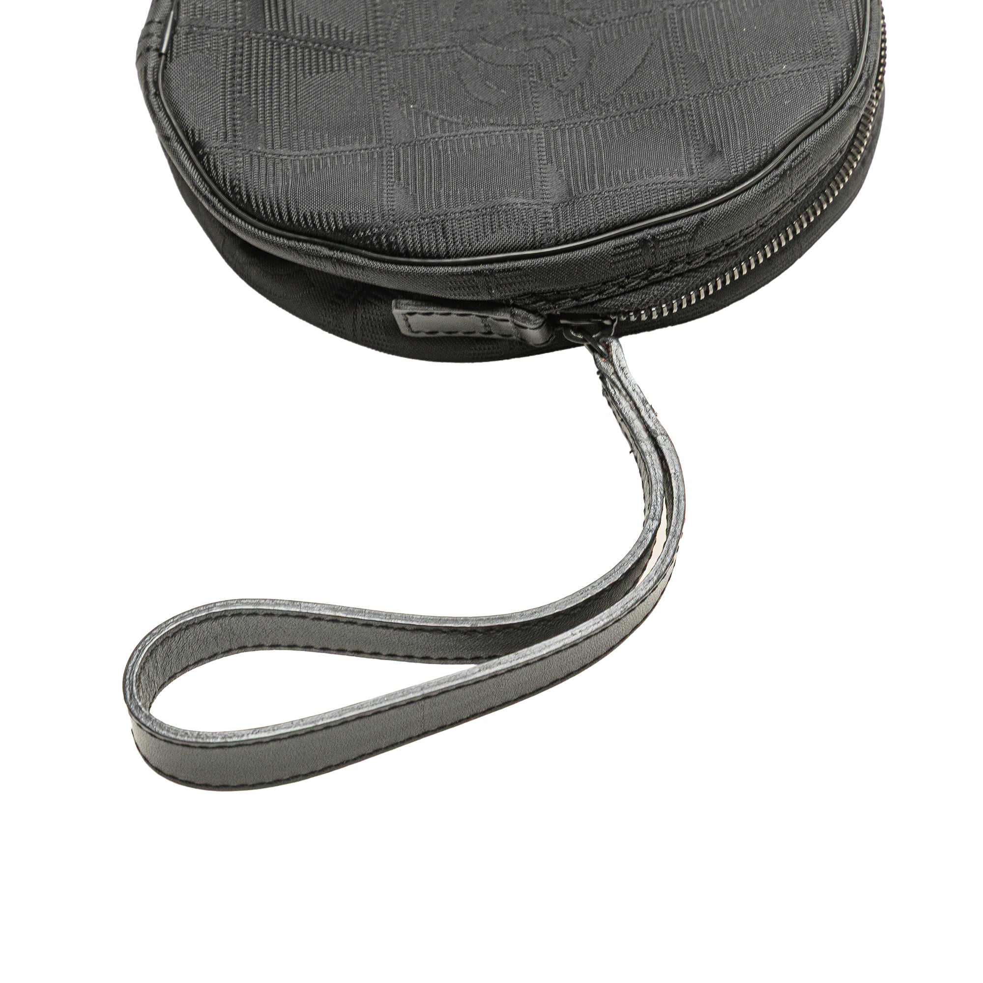 This pouch features a nylon body, a flat leather wrist strap, a top zip closure, and an interior slip pocket. Inclusion: authenticity card. Retail Price: 950.00