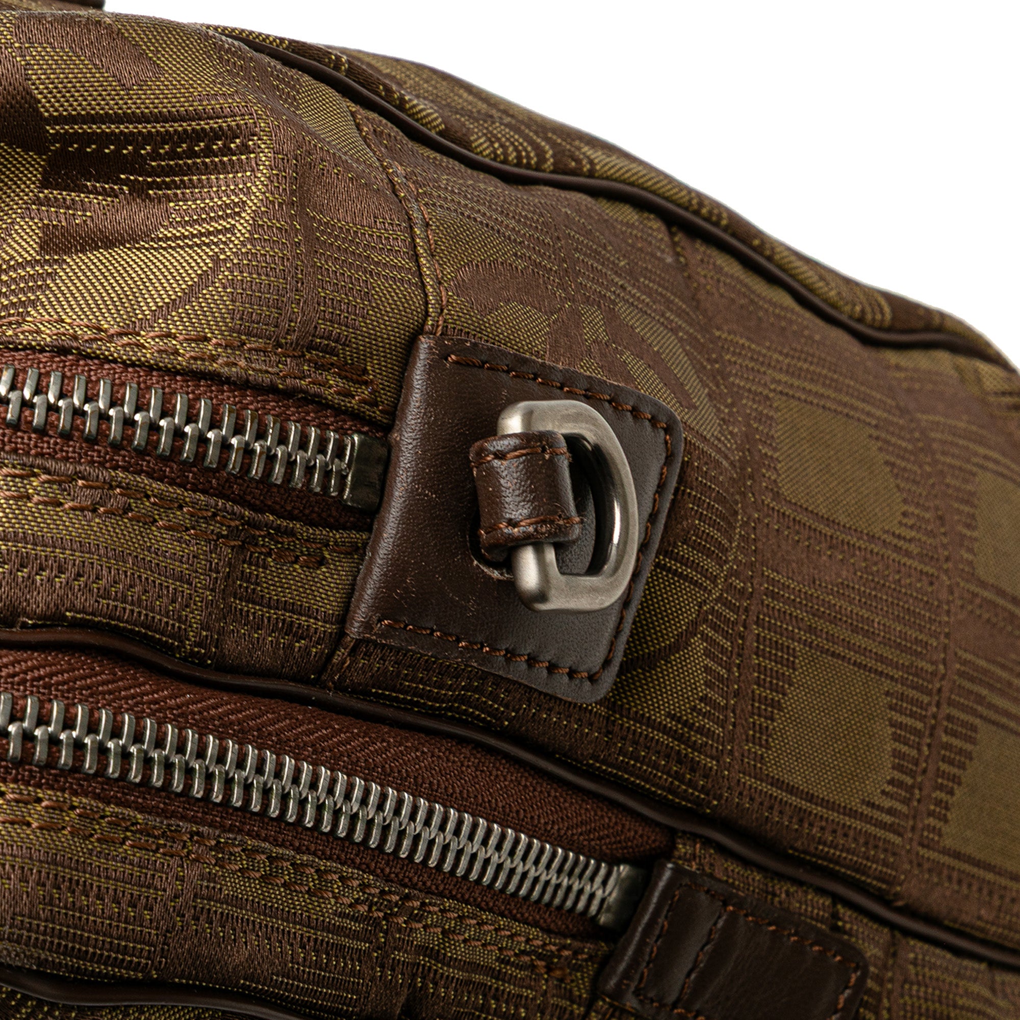 This satchel features a nylon body, flat leather handles, adjustable and detachable nylon strap, top zip closures, and an interior zip pocket. Inclusion: authenticity card. Retail Price: 626.00