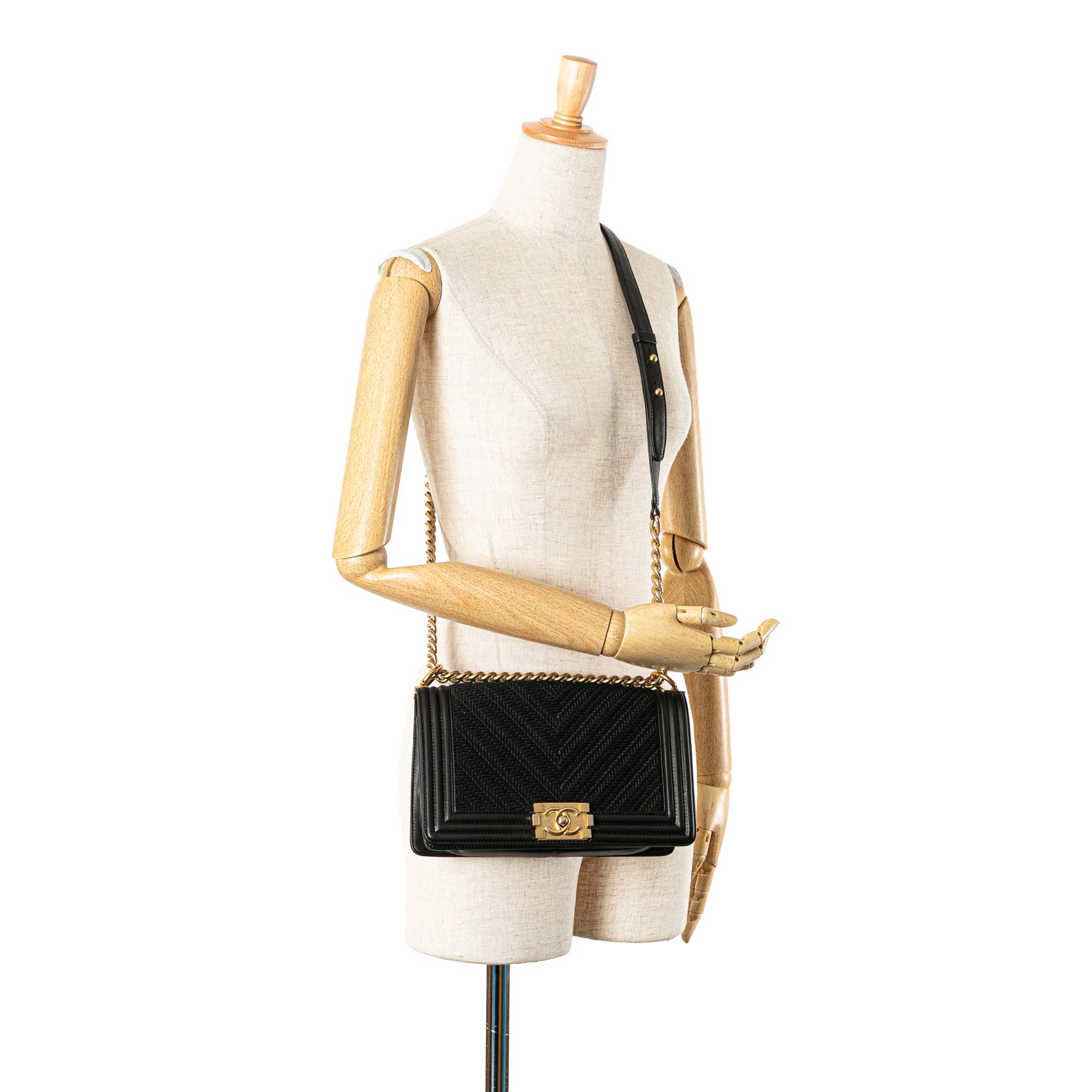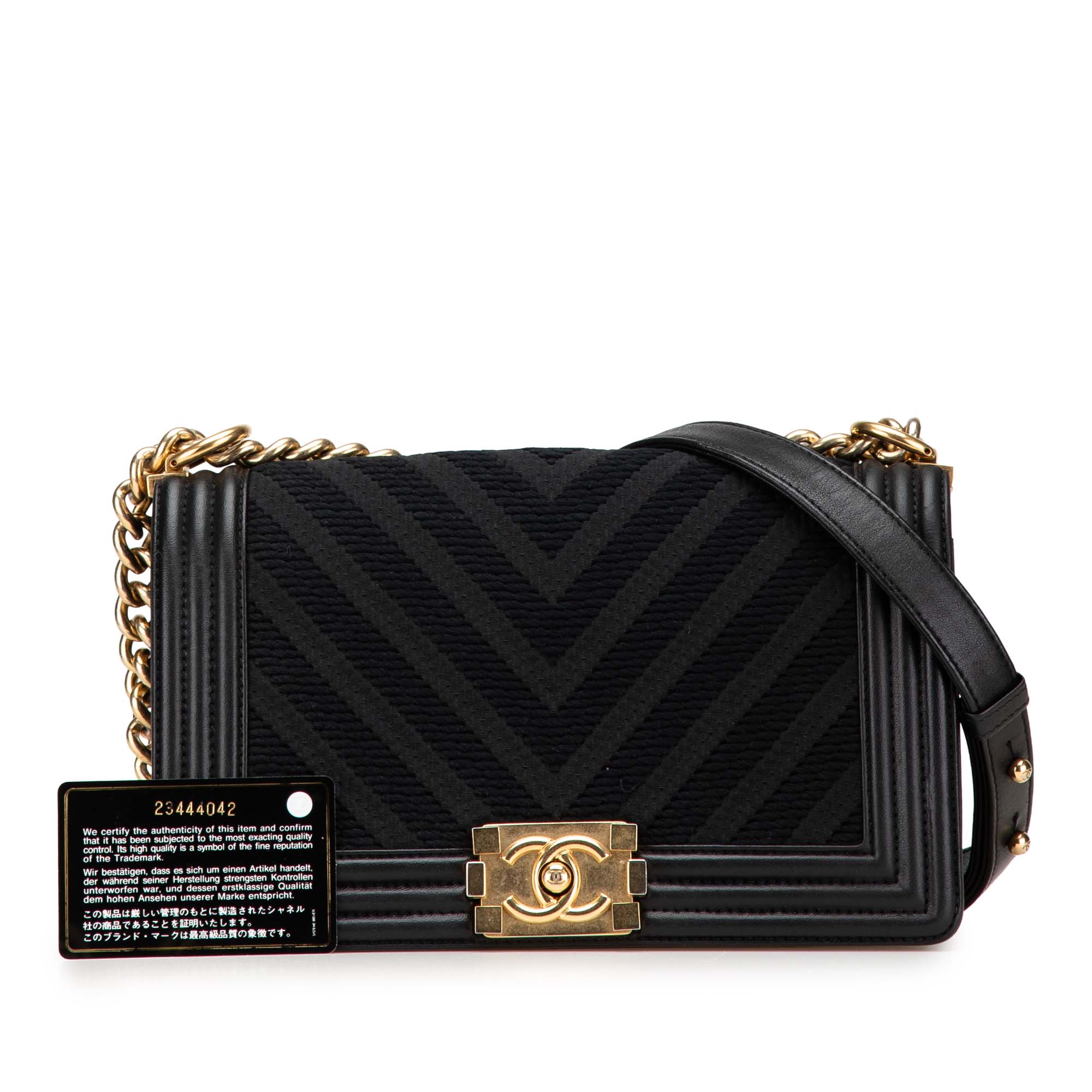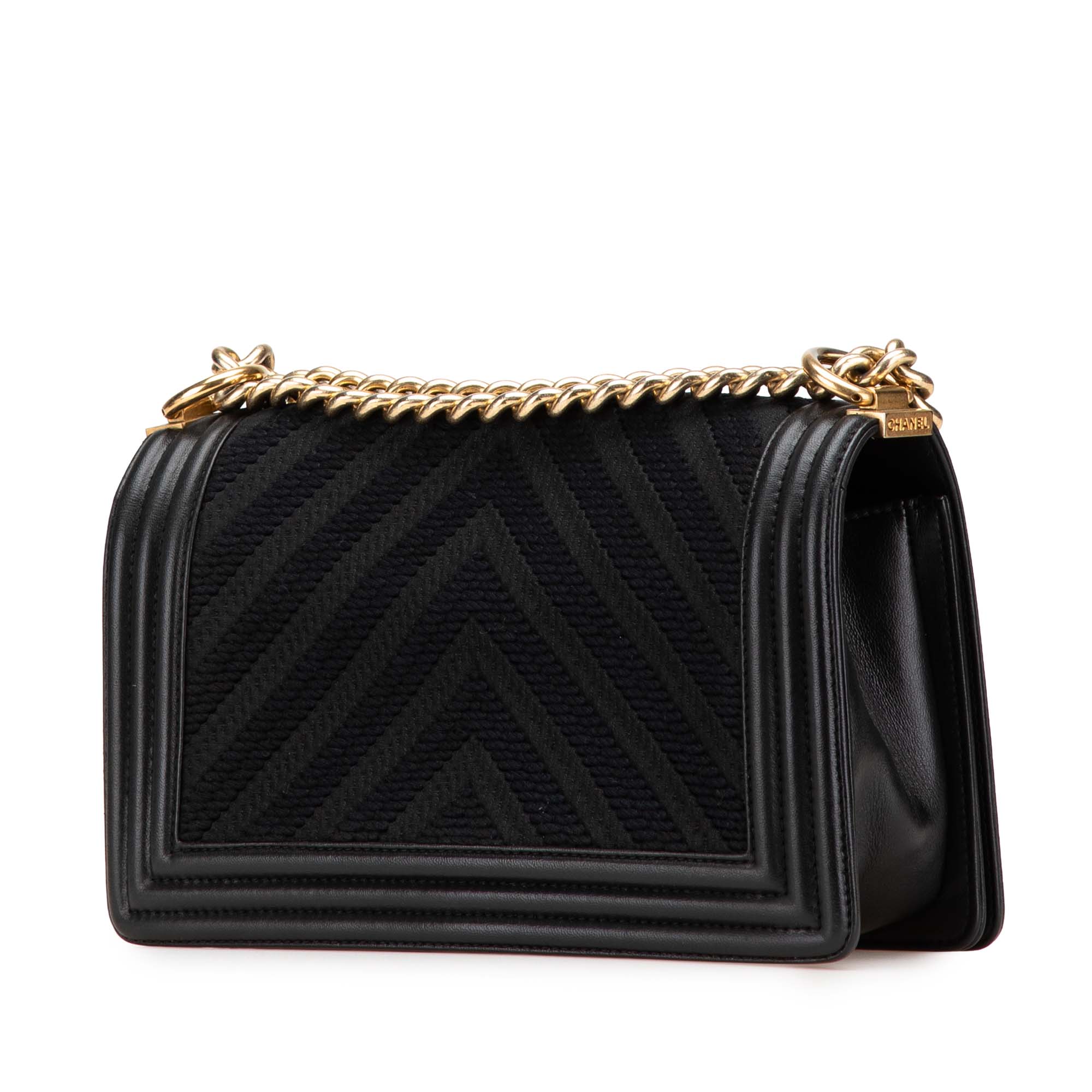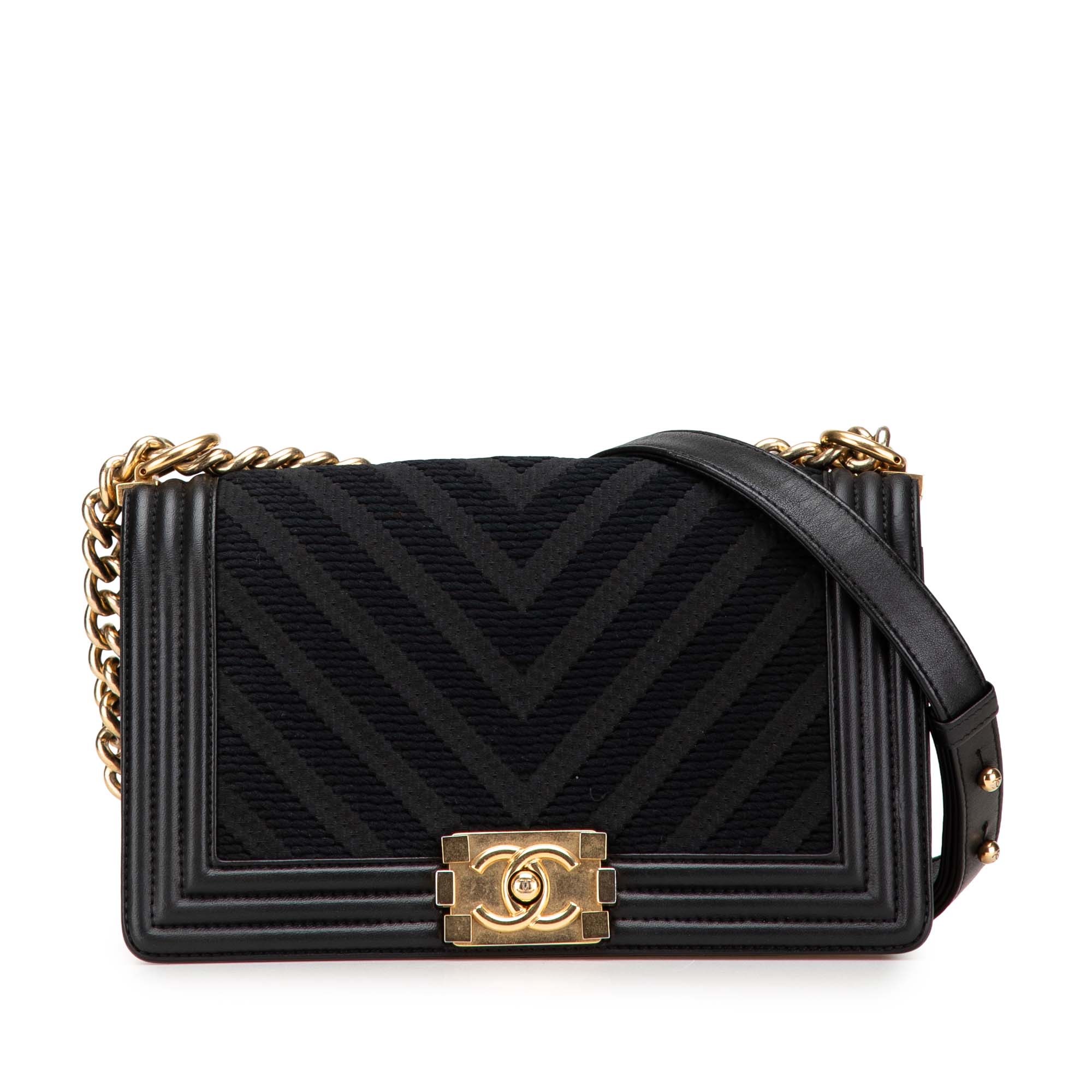 Chanel Old Medium Braided Chevron Cotton and Lambskin Boy Flap