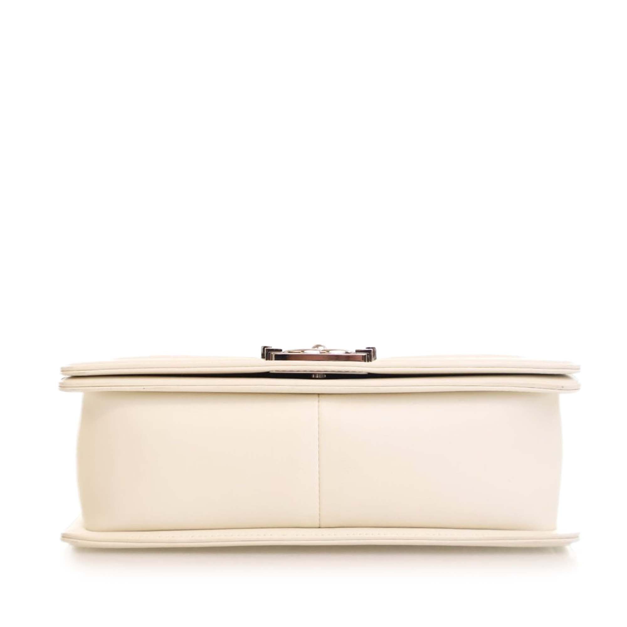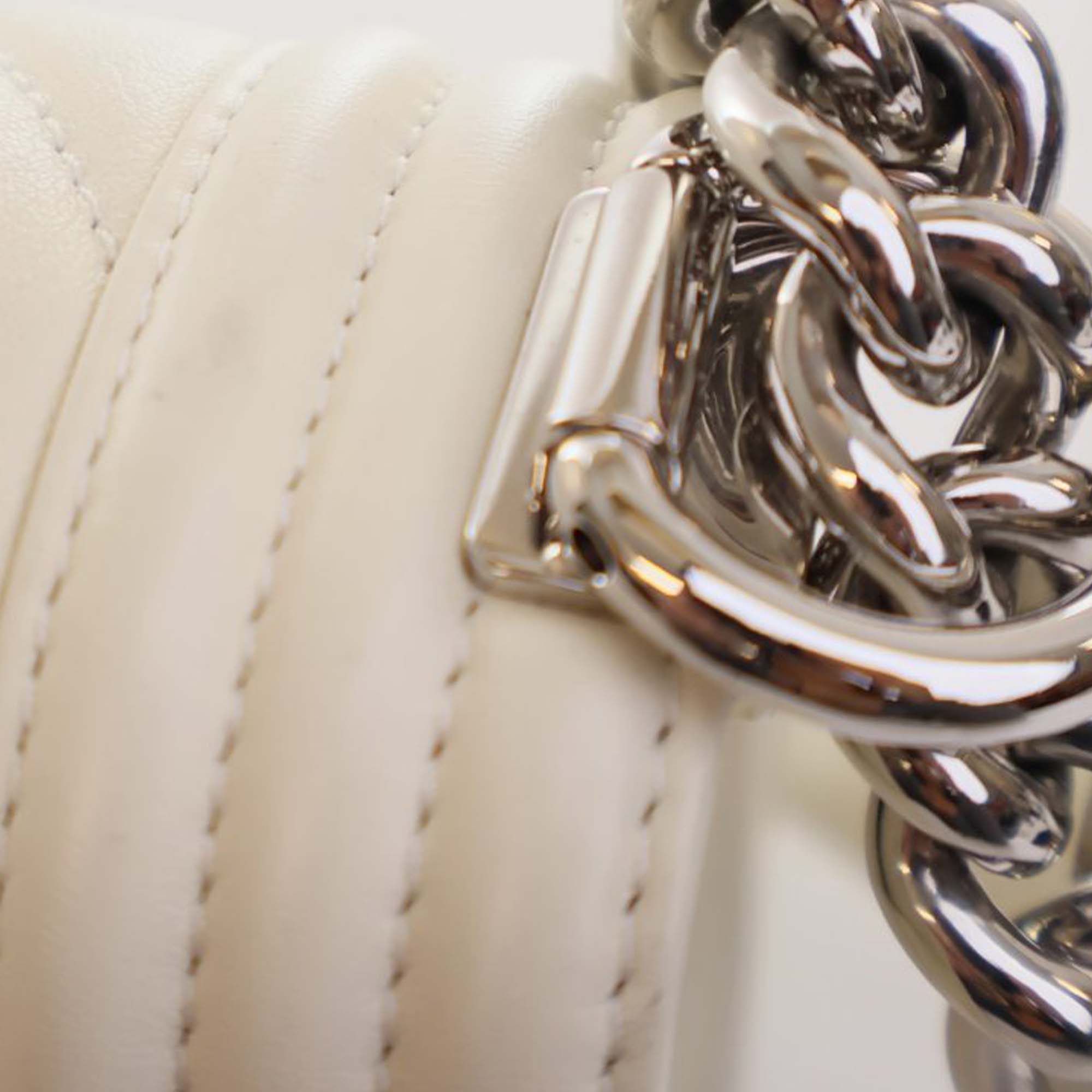 The Boy Flap bag features a quilted lambskin leather body, a curb chain shoulder strap with leather guard, a front flap with interlocking Cs and twist lock closure, and interior zip and slip pockets. Inclusion: Dust bag, box, authenticity card. Retail Price: 6050.00