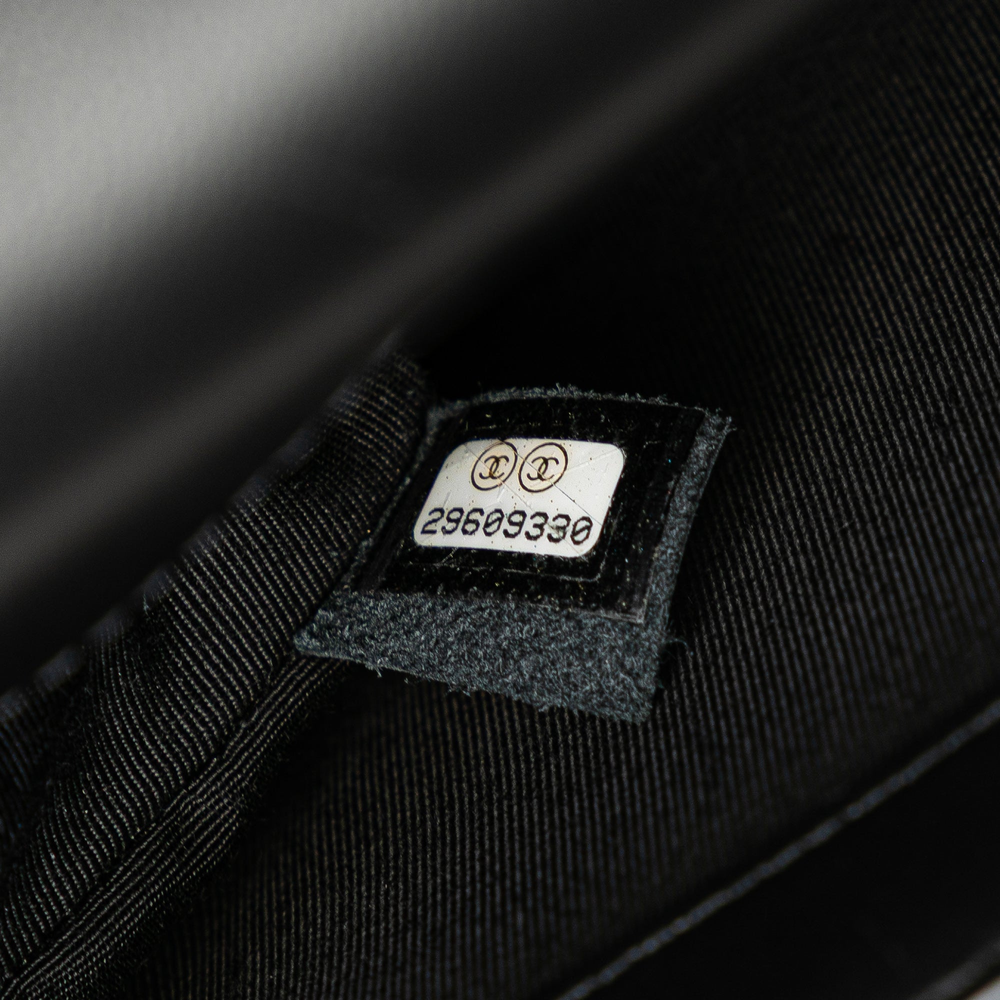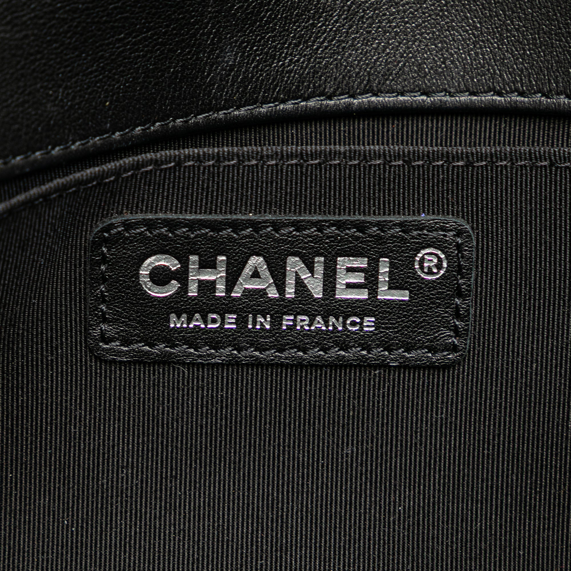 The Boy Flap bag features a quilted lambskin leather body, a curb chain shoulder strap with leather guard, a front flap with interlocking Cs and twist lock closure, and interior slip pockets. Retail Price: 6600.00