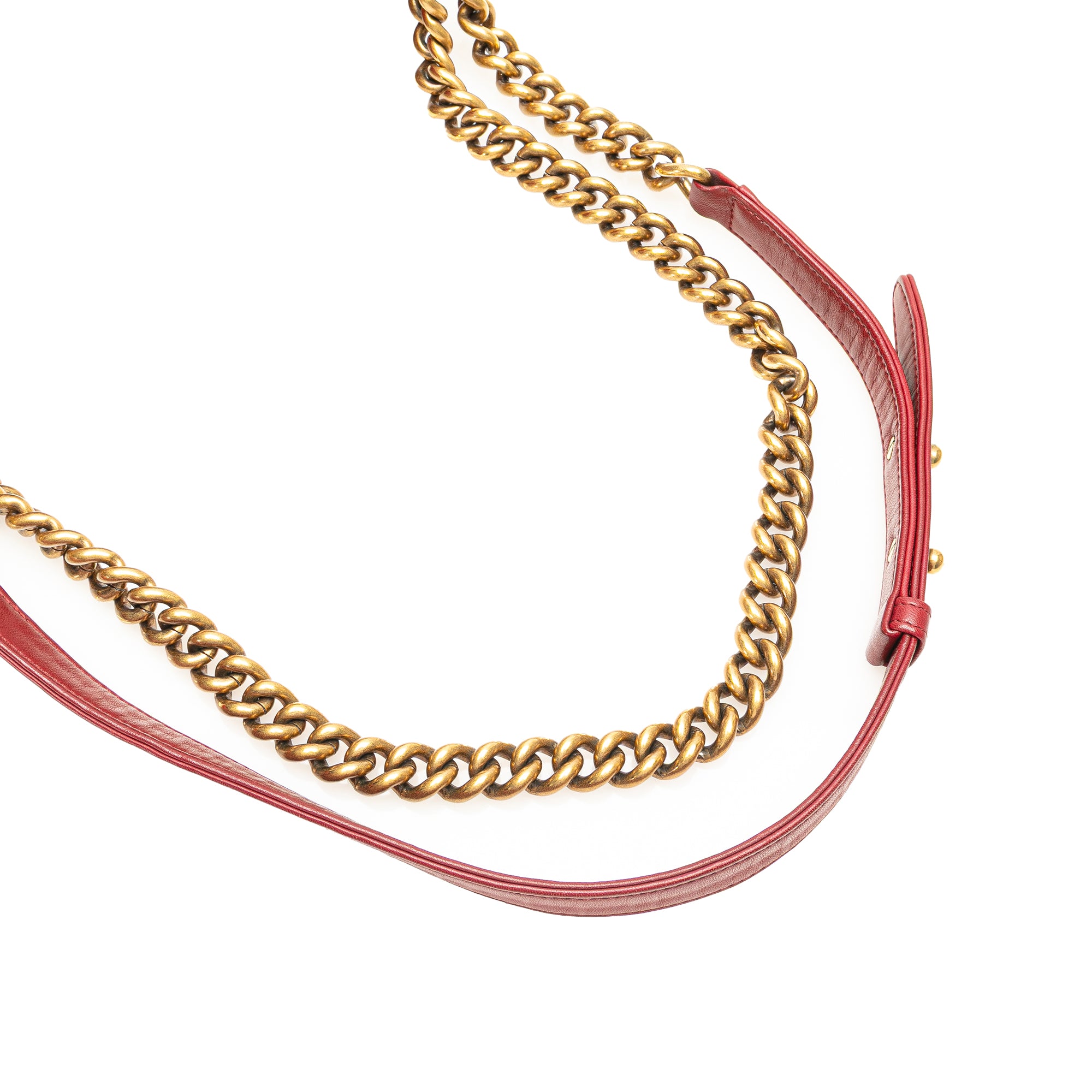 The Boy flap features a quilted lambskin leather body, a gold-tone woven chain strap, and a front flap with magnetic snap closure, and interior slip pockets. Retail Price: 5992.00