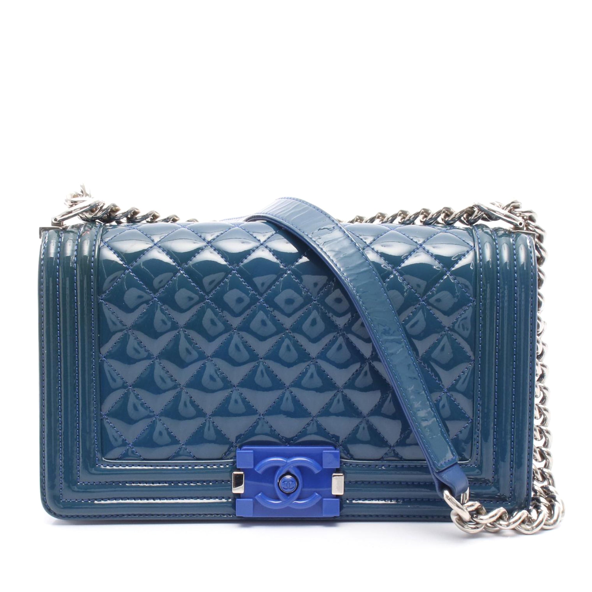 Chanel Old Medium Quilted Patent Acrylic Boy Flap