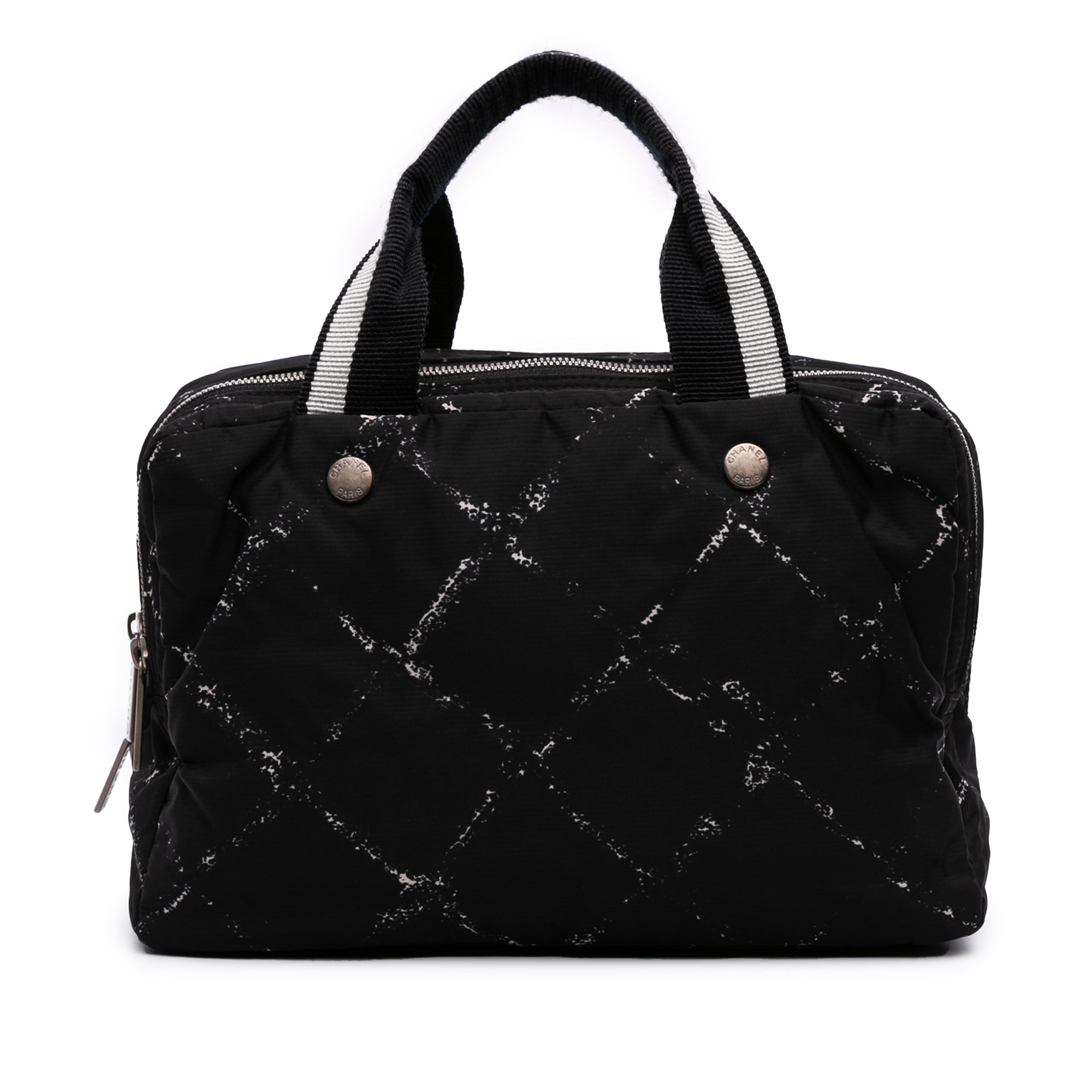 This handbag features a nylon body, flat straps, and top zip closures. Retail Price: 1300.00