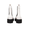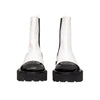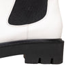 These Chelsea boots from Chanel's Cruise 2022 collection, feature shiny white patent leather with black trims and the iconic interlocking CC logo over the toe.