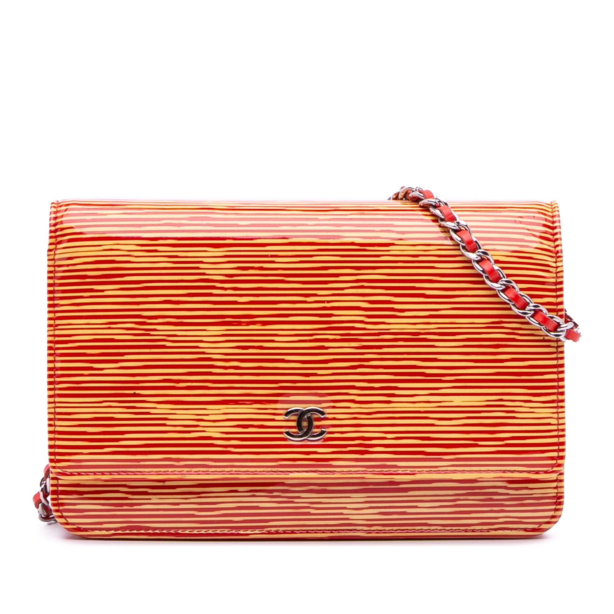Chanel Patent Striped Wallet On Chain