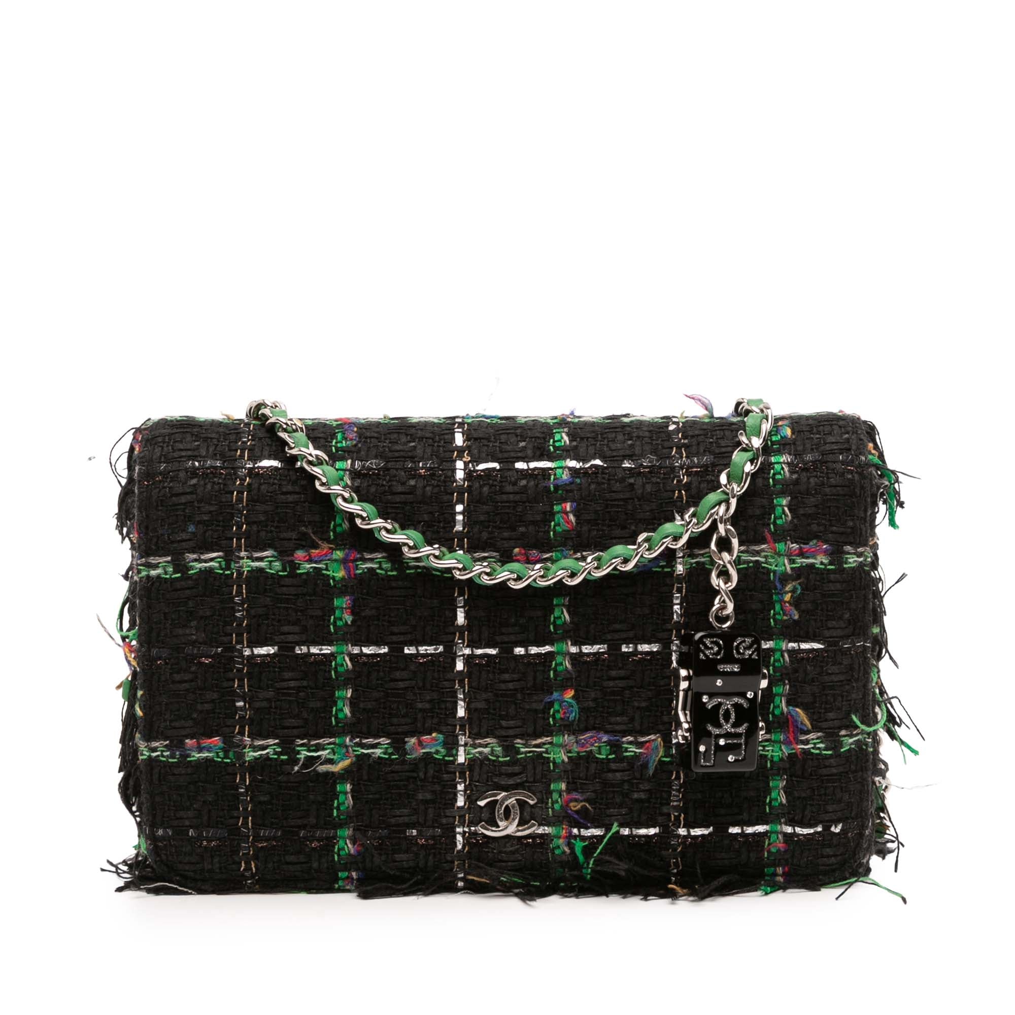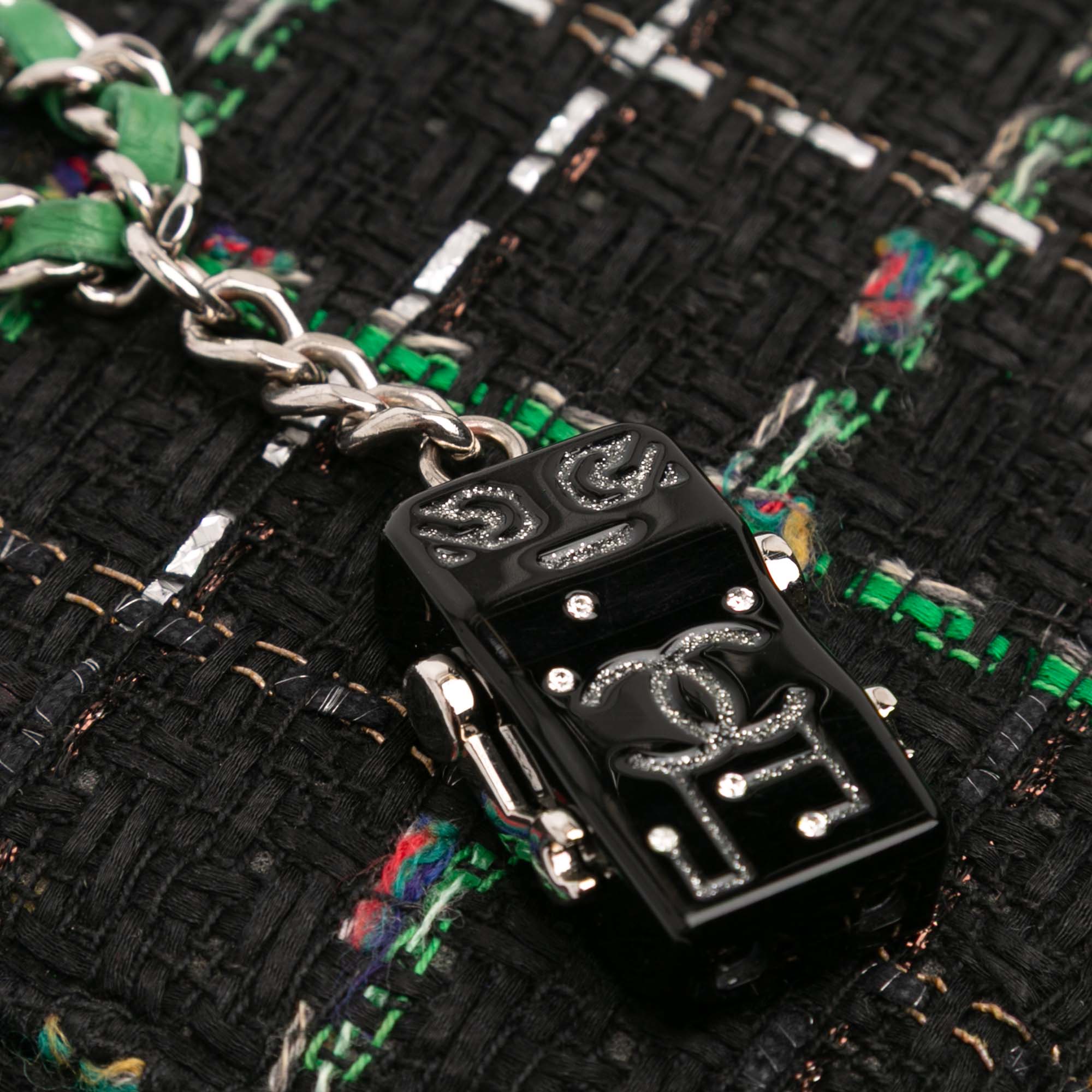 Chanel Quilted Boucle Tweed Robot Charm Wallet On Chain