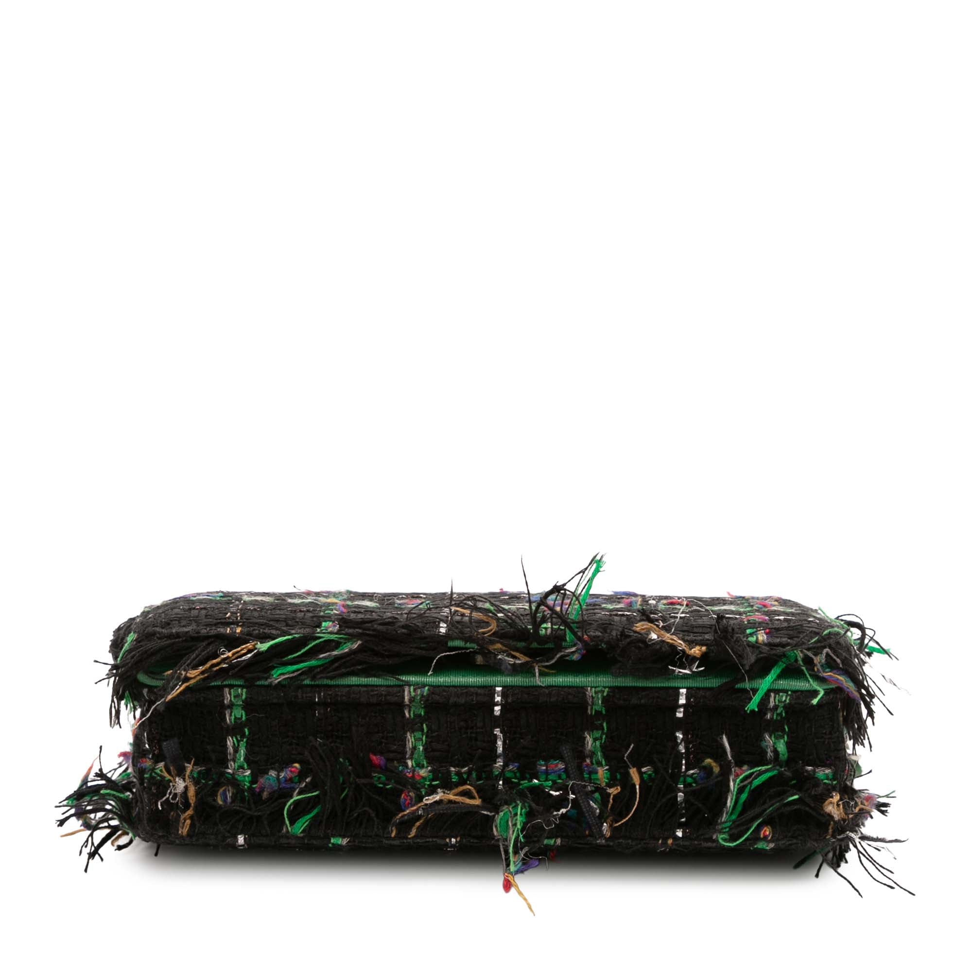 This crossbody bag features a tweed body, a leather-woven chain link strap, a flap with snap closure, an interior zip compartment, and interior zip and slip pockets. Retail Price: 3500.00
