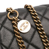 This shoulder bag features a quilted lambskin leather body, chain link straps, a front flap with CC turn-lock closure, an exterior back zip compartment, and an interior zip pocket. Retail Price: 5812.00