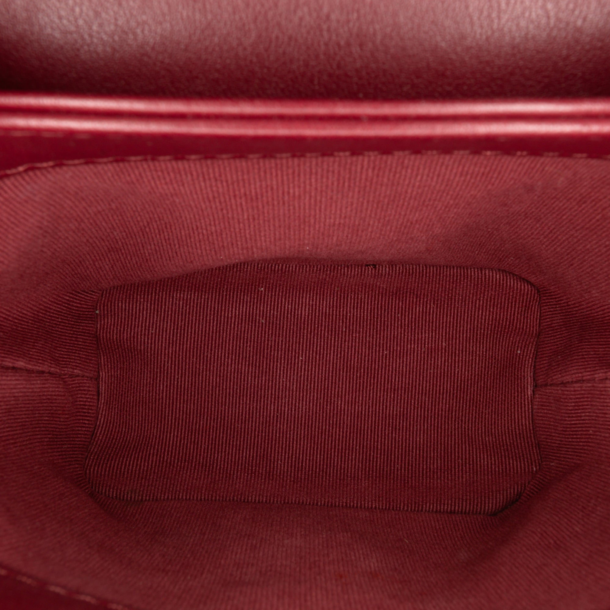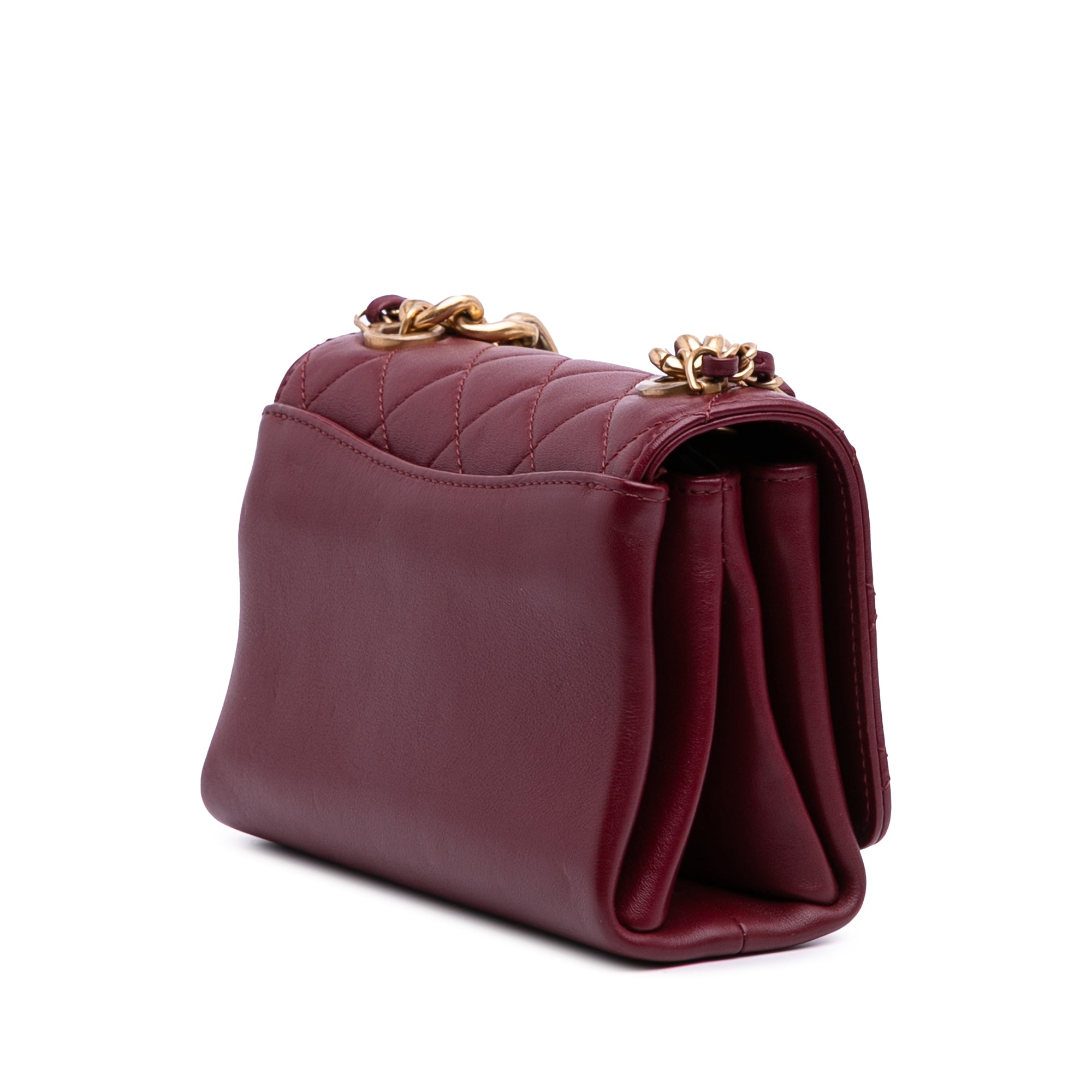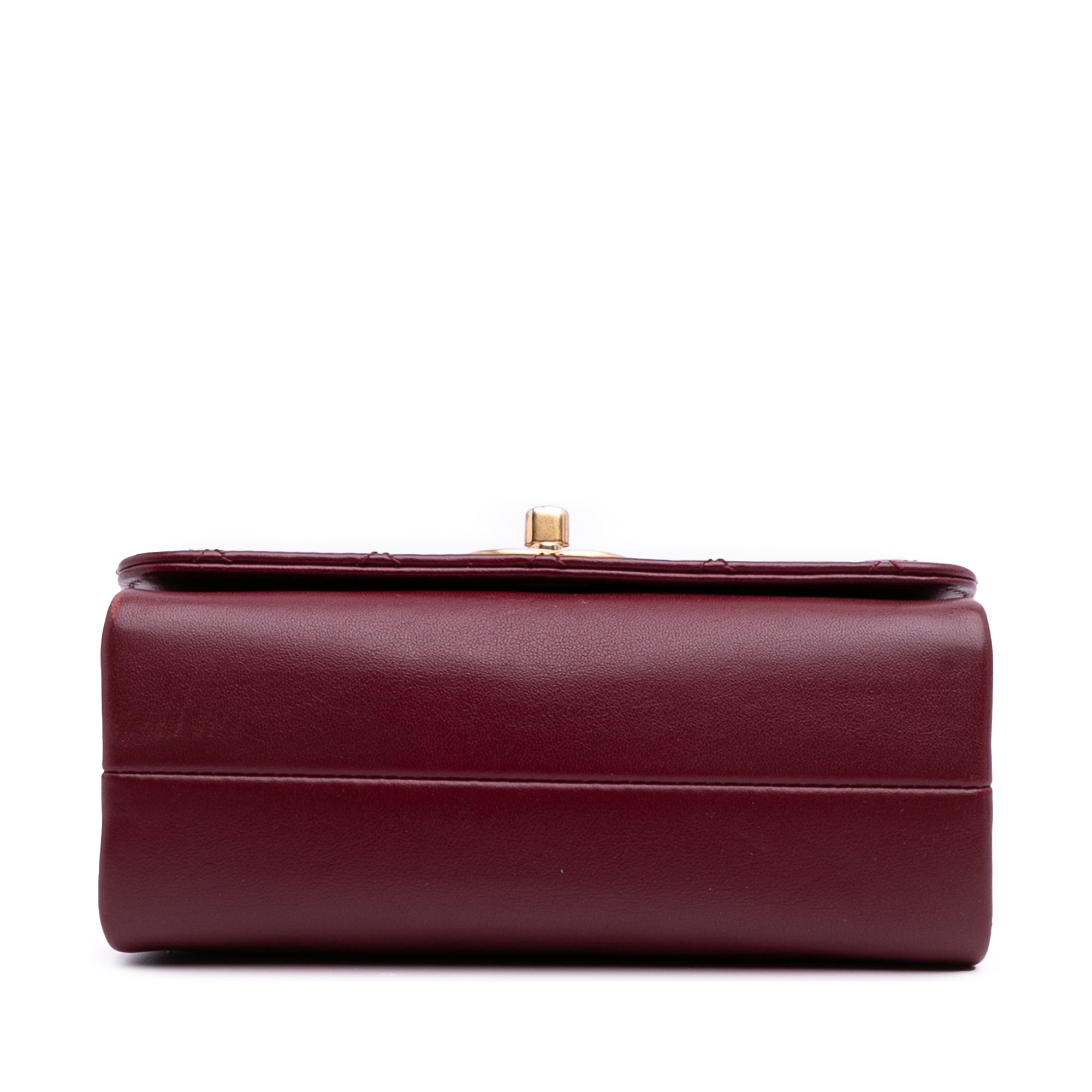 This satchel features a quilted calfskin leather body, a chain link top handle with faux pearl details, a leather woven chain link strap with leather guard, a front flap with CC turn lock closure, and an exterior back slip pocket. Retail Price: 4800.00