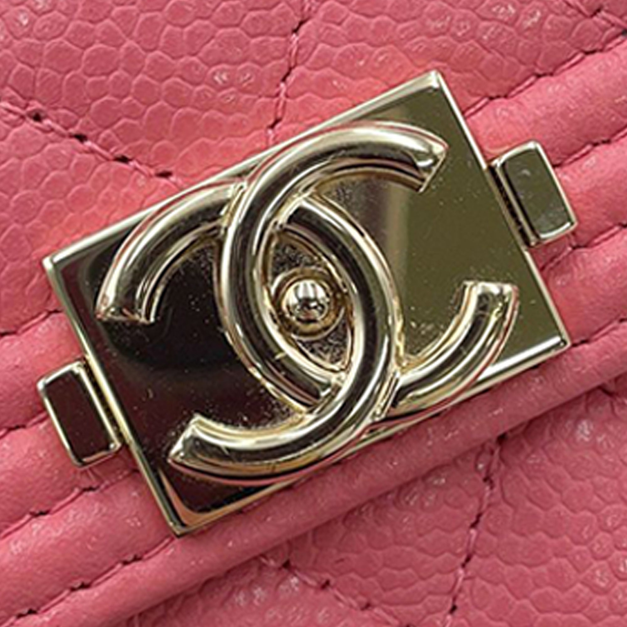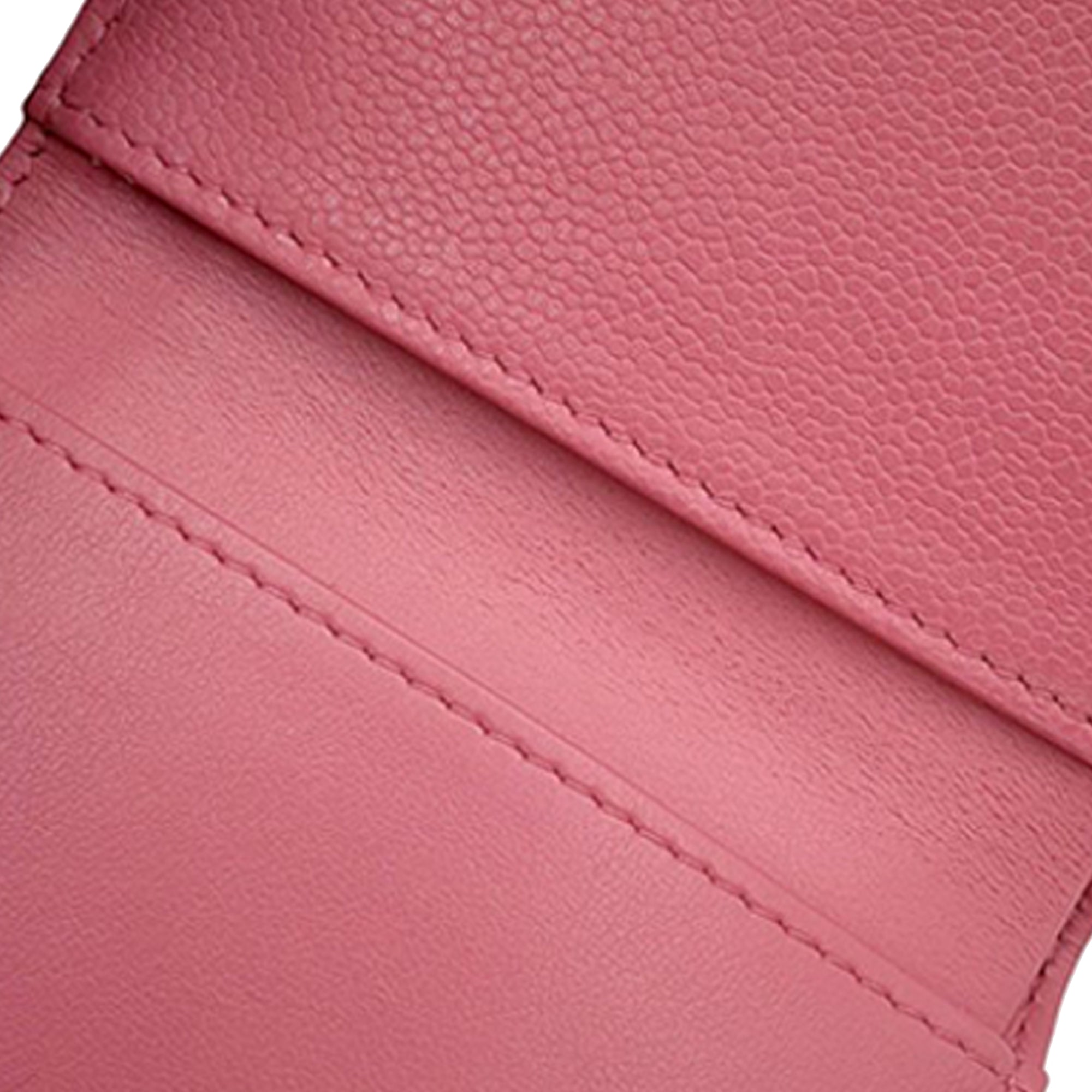 This wallet features a quilted caviar leather body, a front flap with push lock closure, a snap button closure, and interior slip pockets. Inclusion: Dust bag. Retail Price: 1010.00