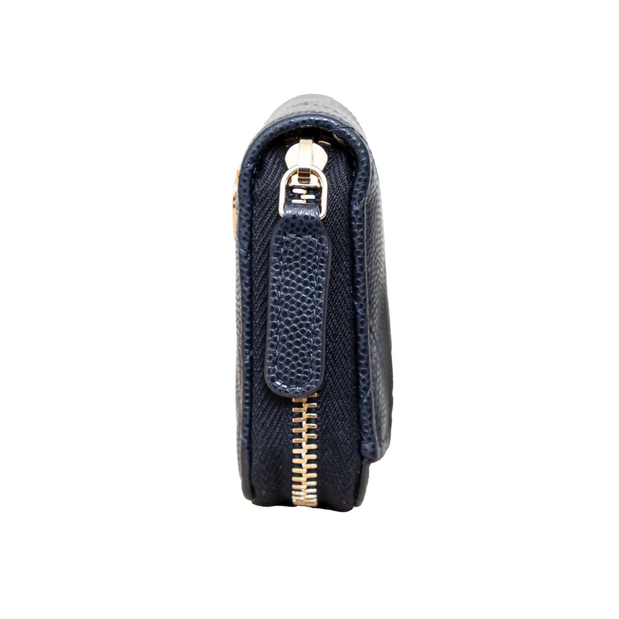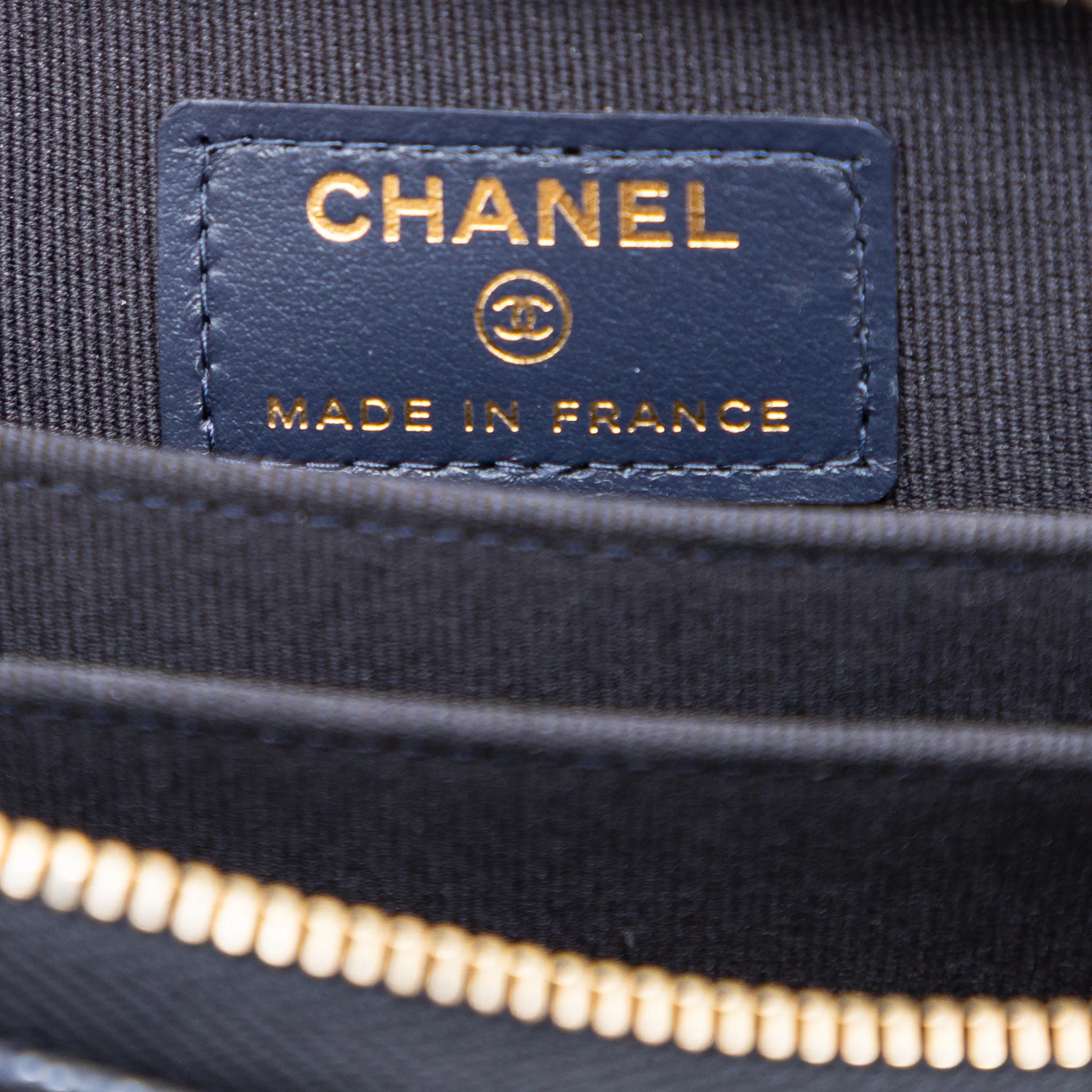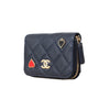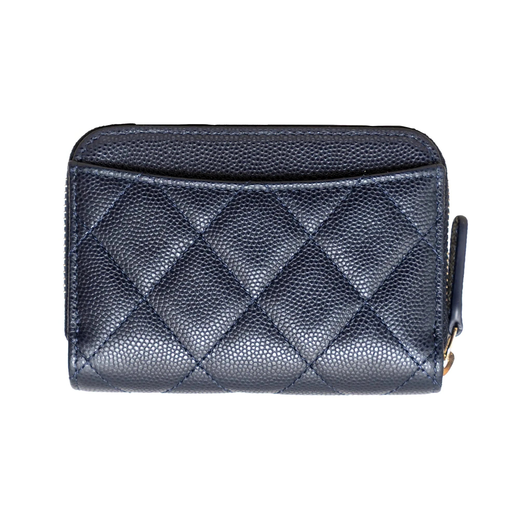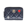 Chanel coin purse from Cruise 2023 collection, in navy quilted caviar leather, gold-tone hardware, heart & spade charms, top zip, 3 compartments & back pocket.