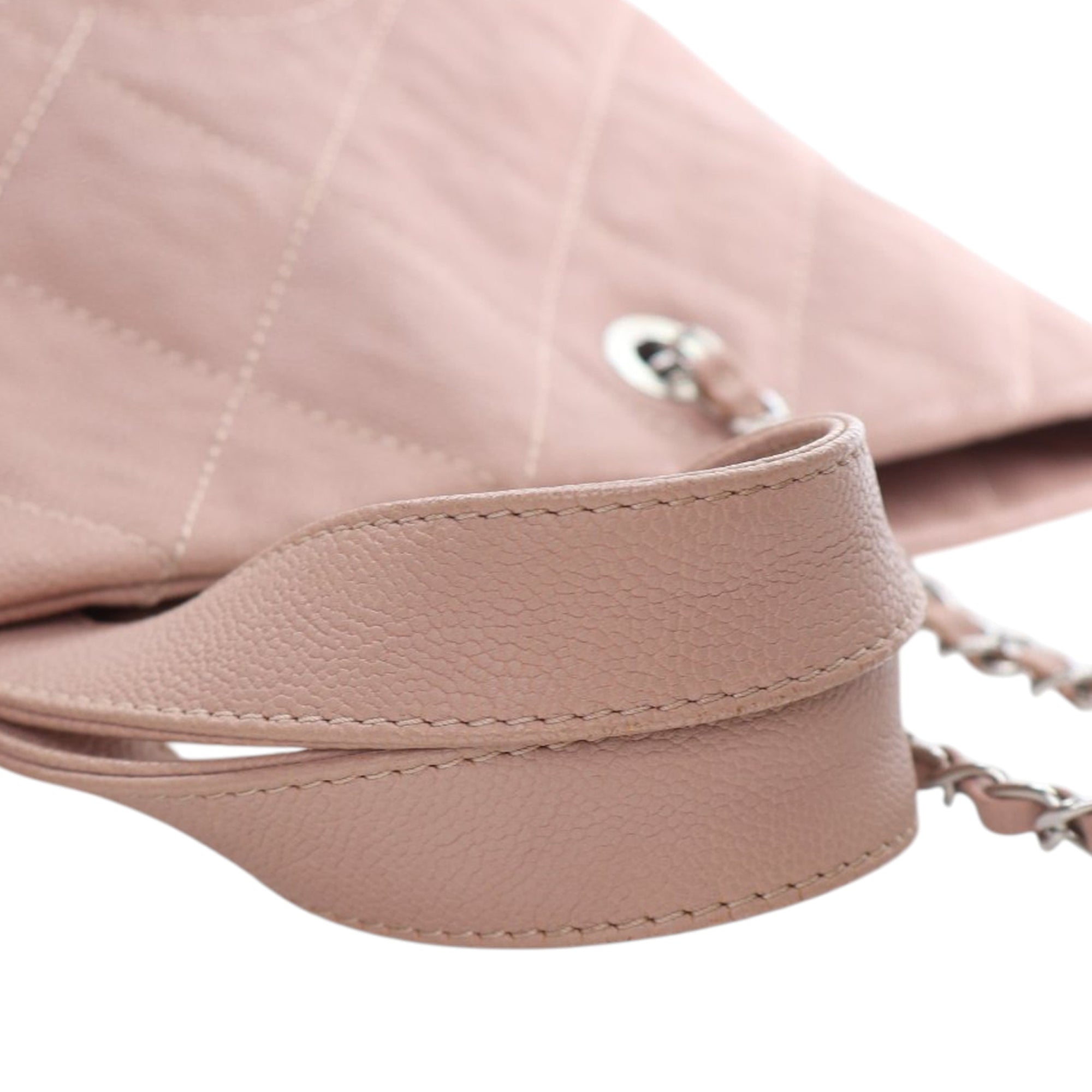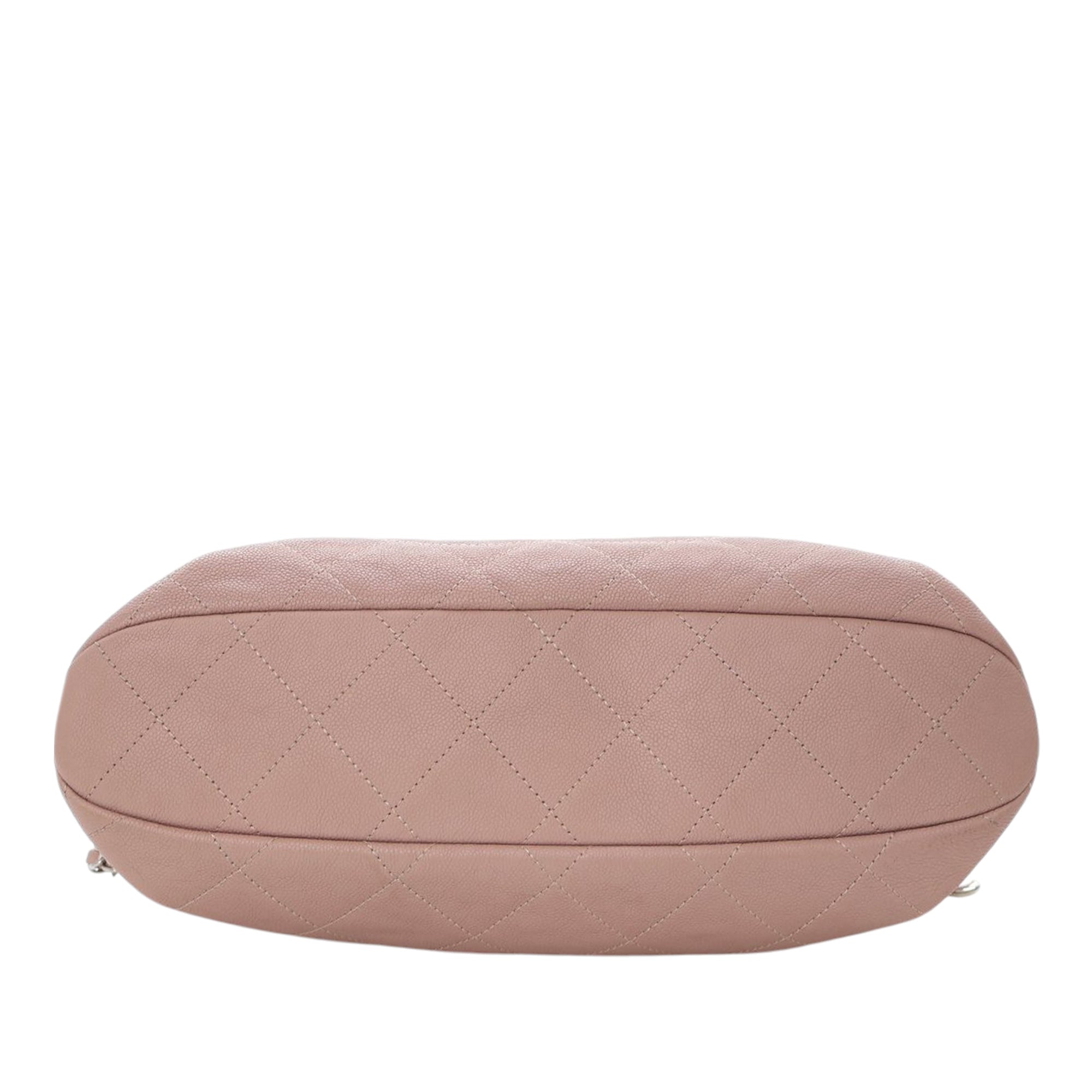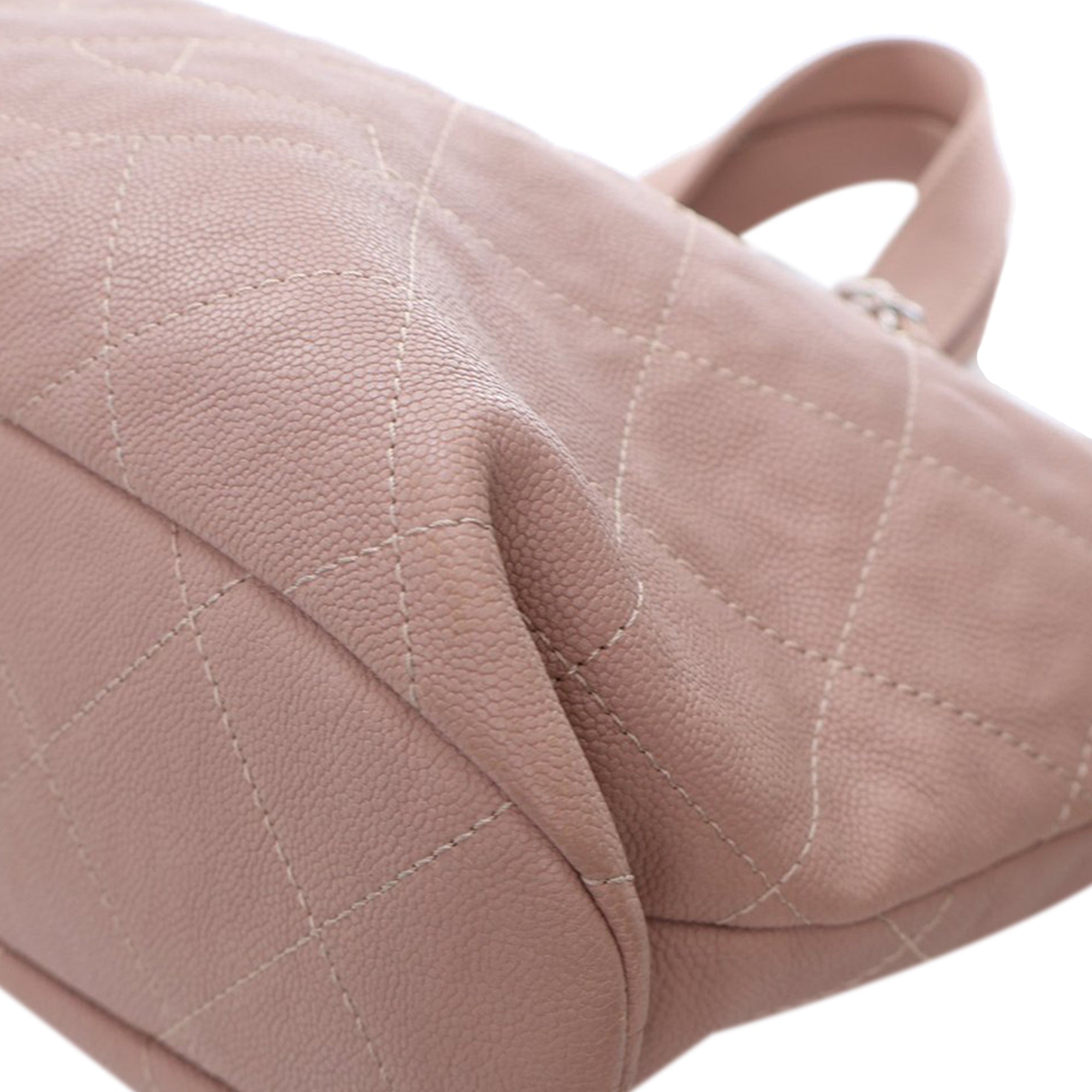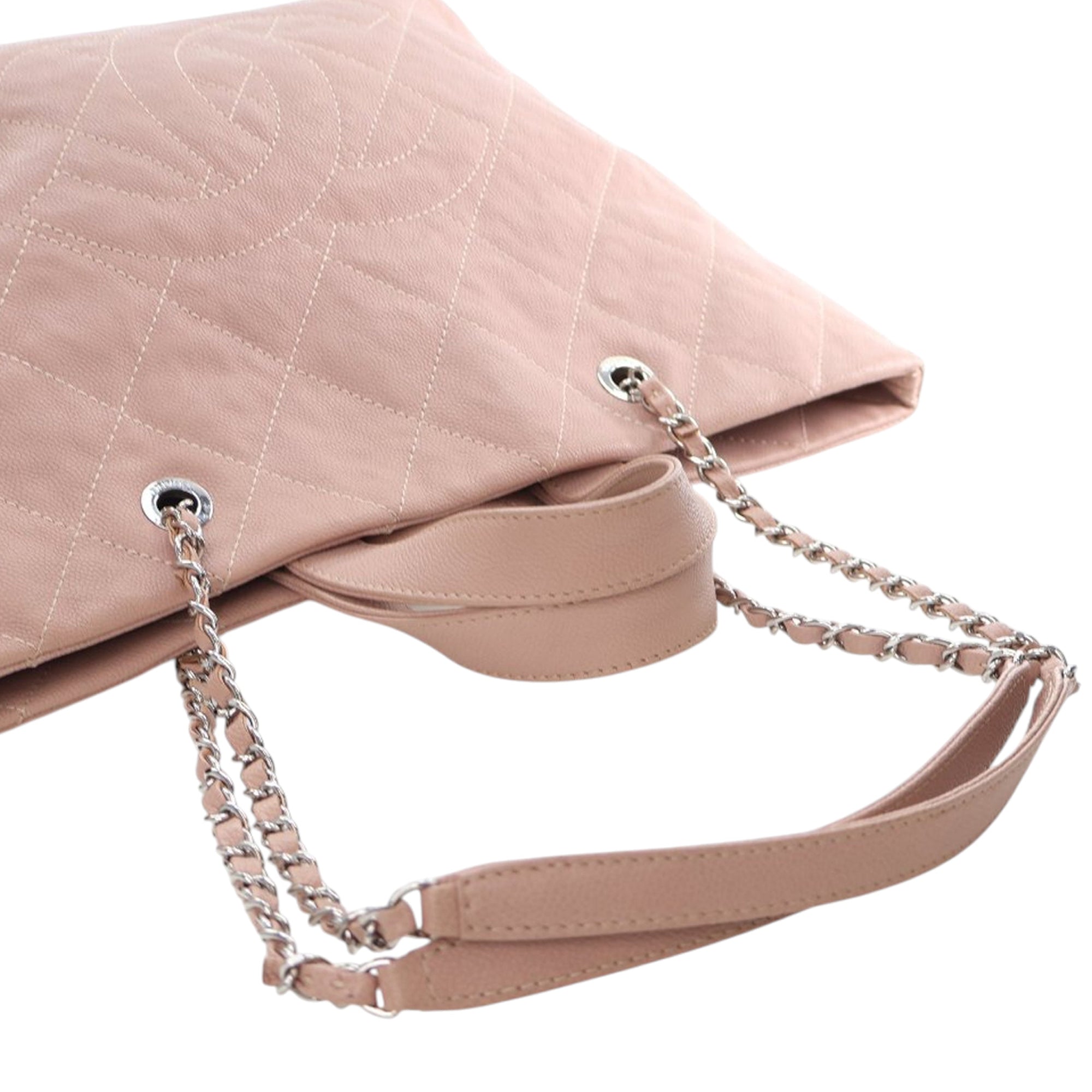 This satchel features a quilted caviar leather body, flat leather handles, leather woven chain straps with leather guards, an open top with magnetic closure, and interior zip and slip pockets. Inclusion: Dust bag, authenticity card. Retail Price: 5500.00