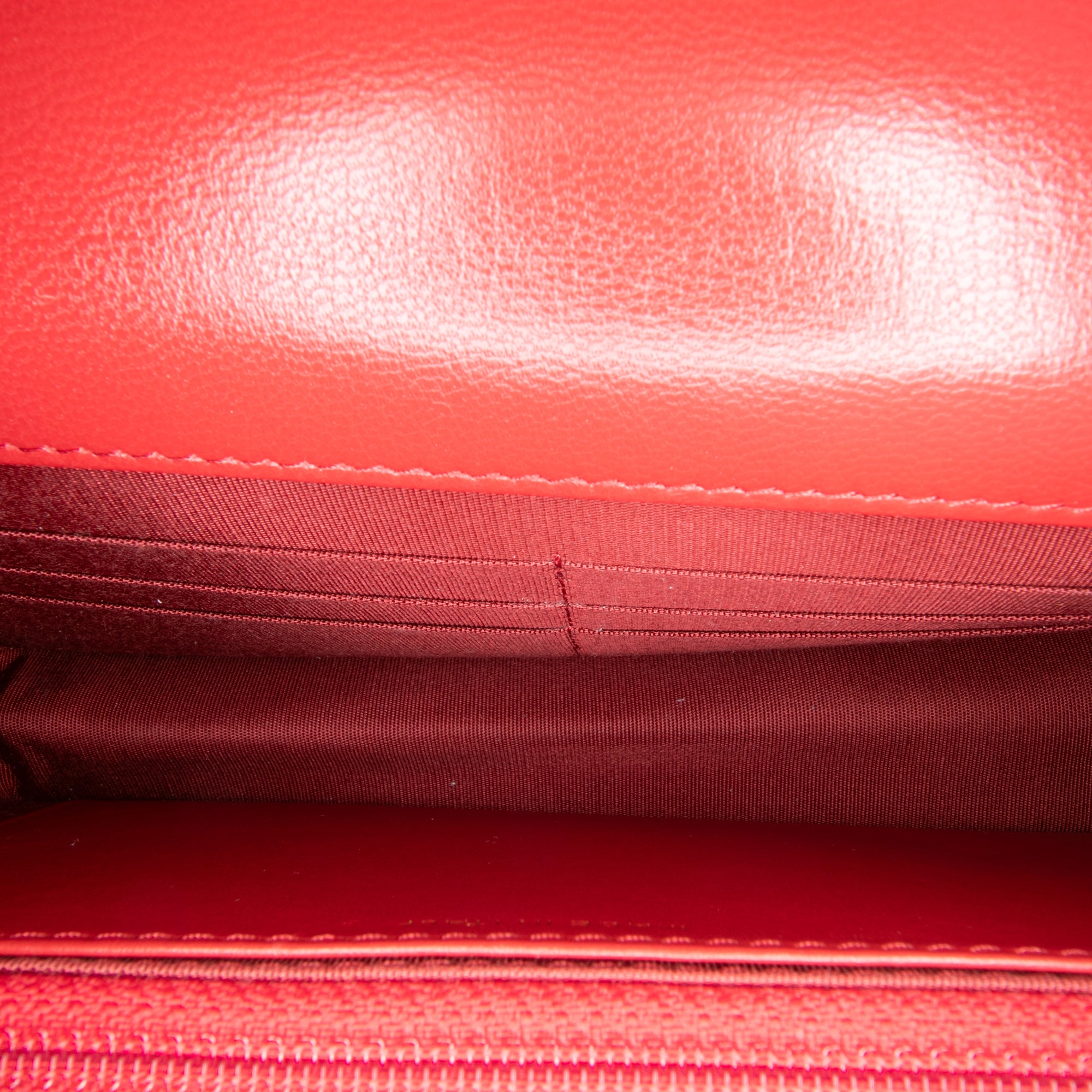 This wallet on chain features a quilted goatskin body, a chain-link handle, a leather woven chain shoulder strap with leather guard, a flap with magnetic closure, and interior zip and slip pockets. Inclusion: Dust bag, box, authenticity card. Retail Price: 5100.00