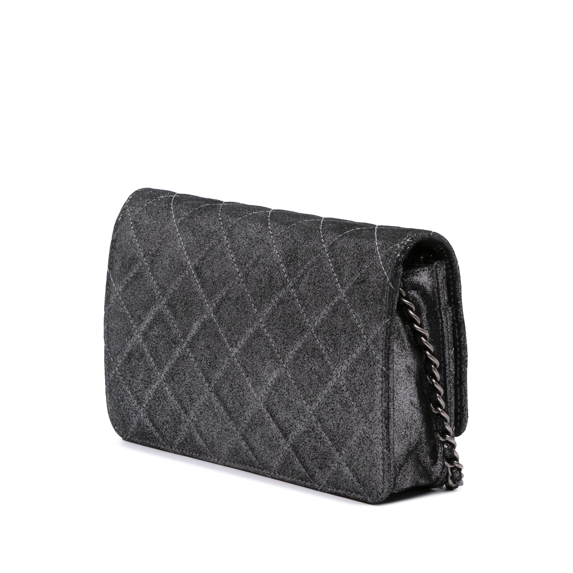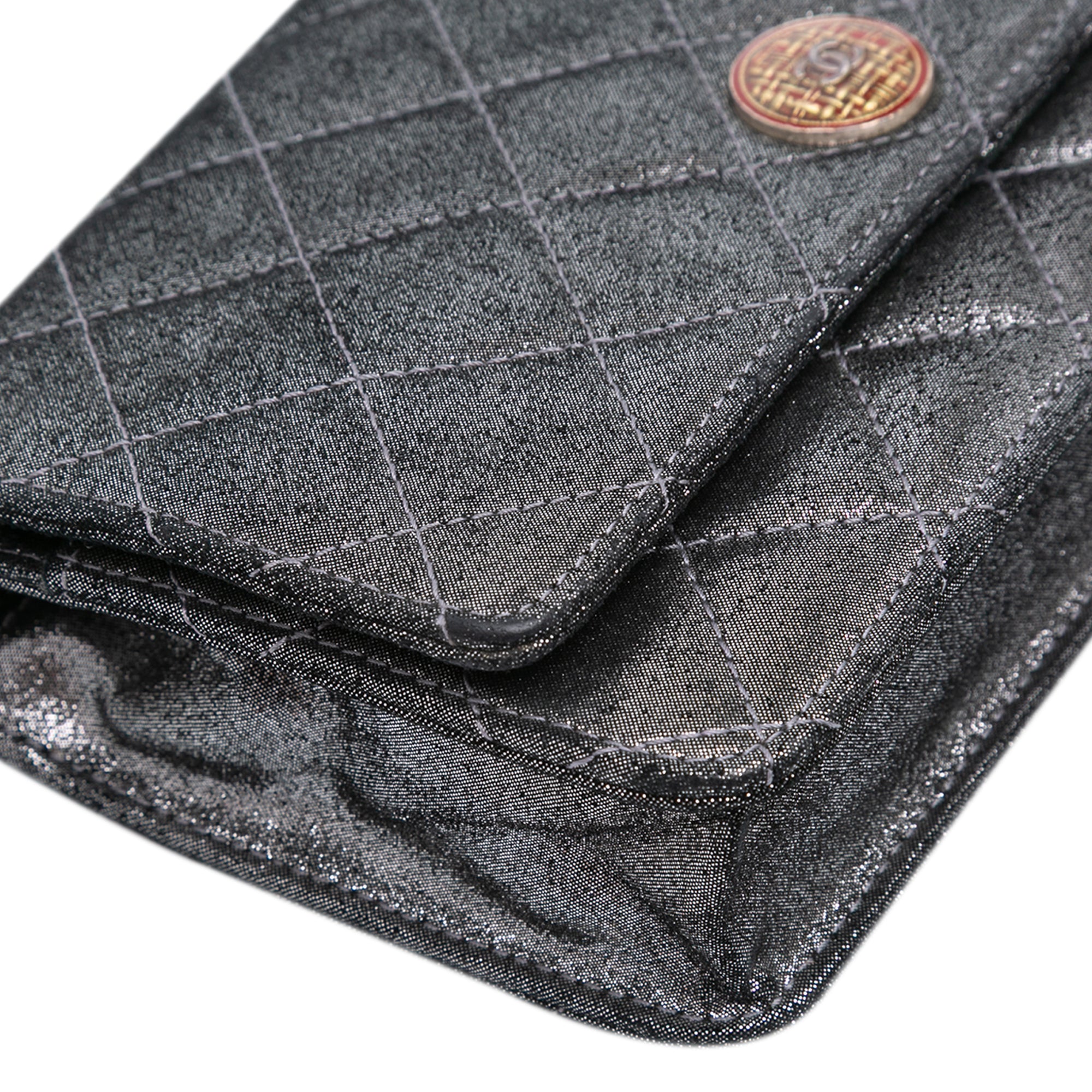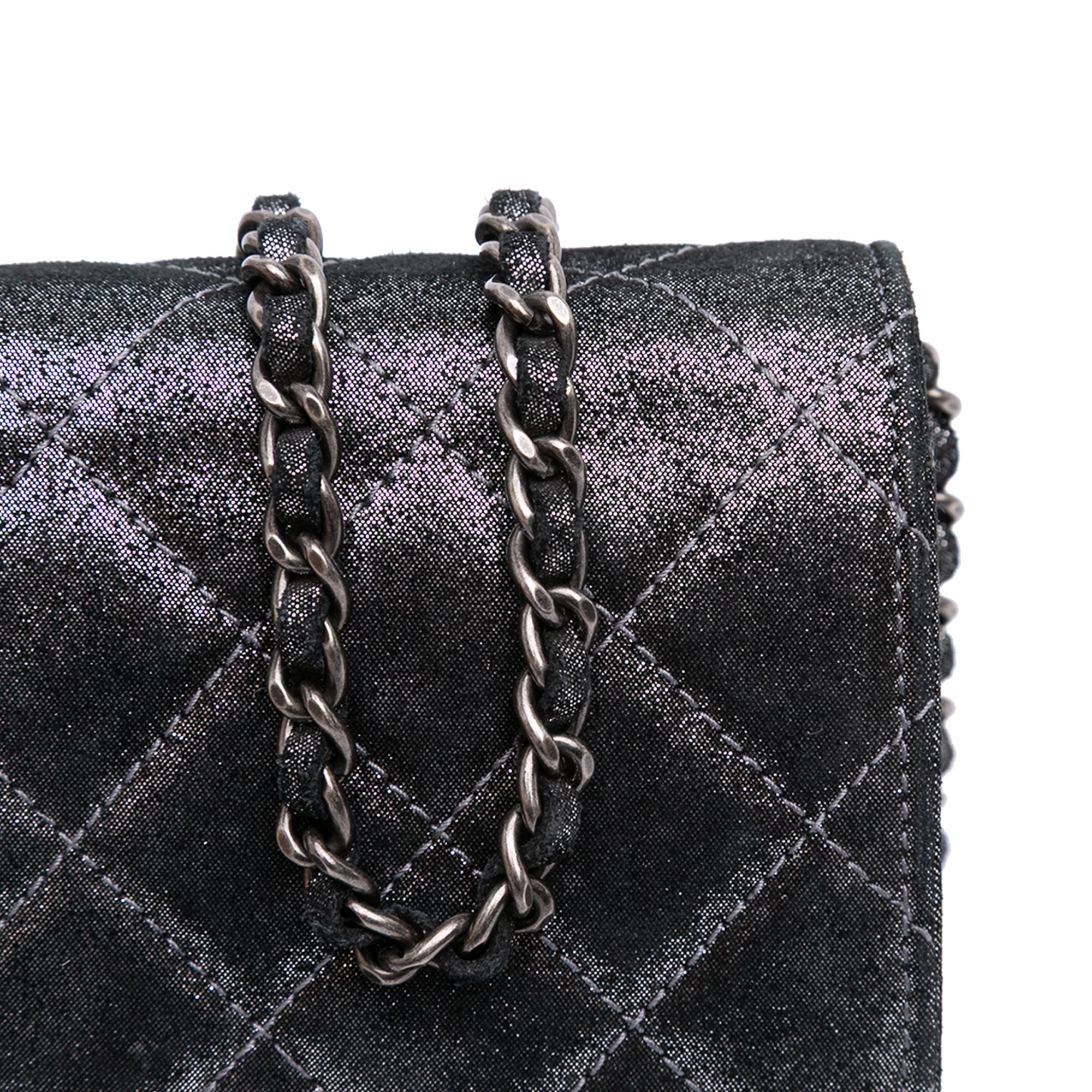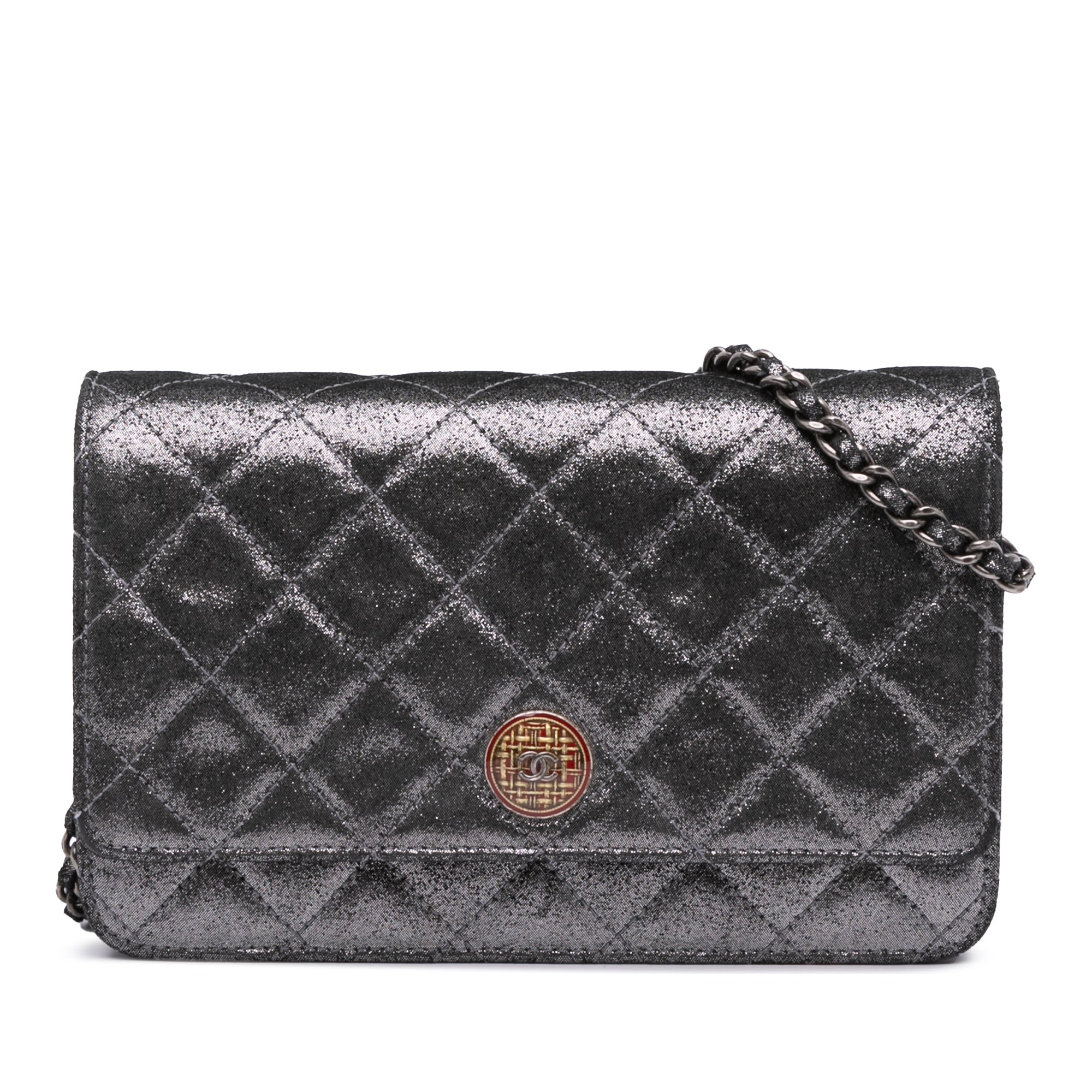 Chanel Quilted Iridescent Lambskin Tartan Button Wallet On Chain