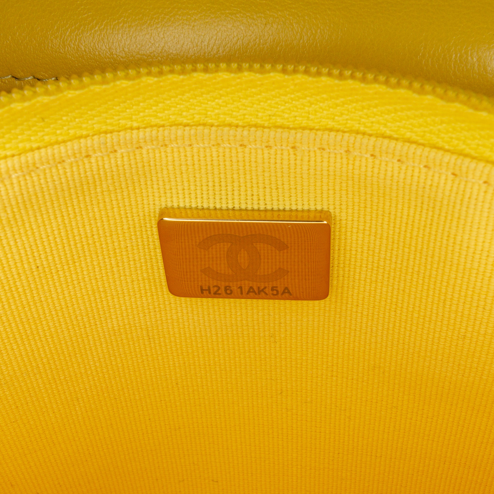 This crossbody features a quilted lambskin leather body, leather woven chain strap, a front flap with magnetic closure, an interior zip compartment, and interior slip pockets. Retail Price: 5800.00