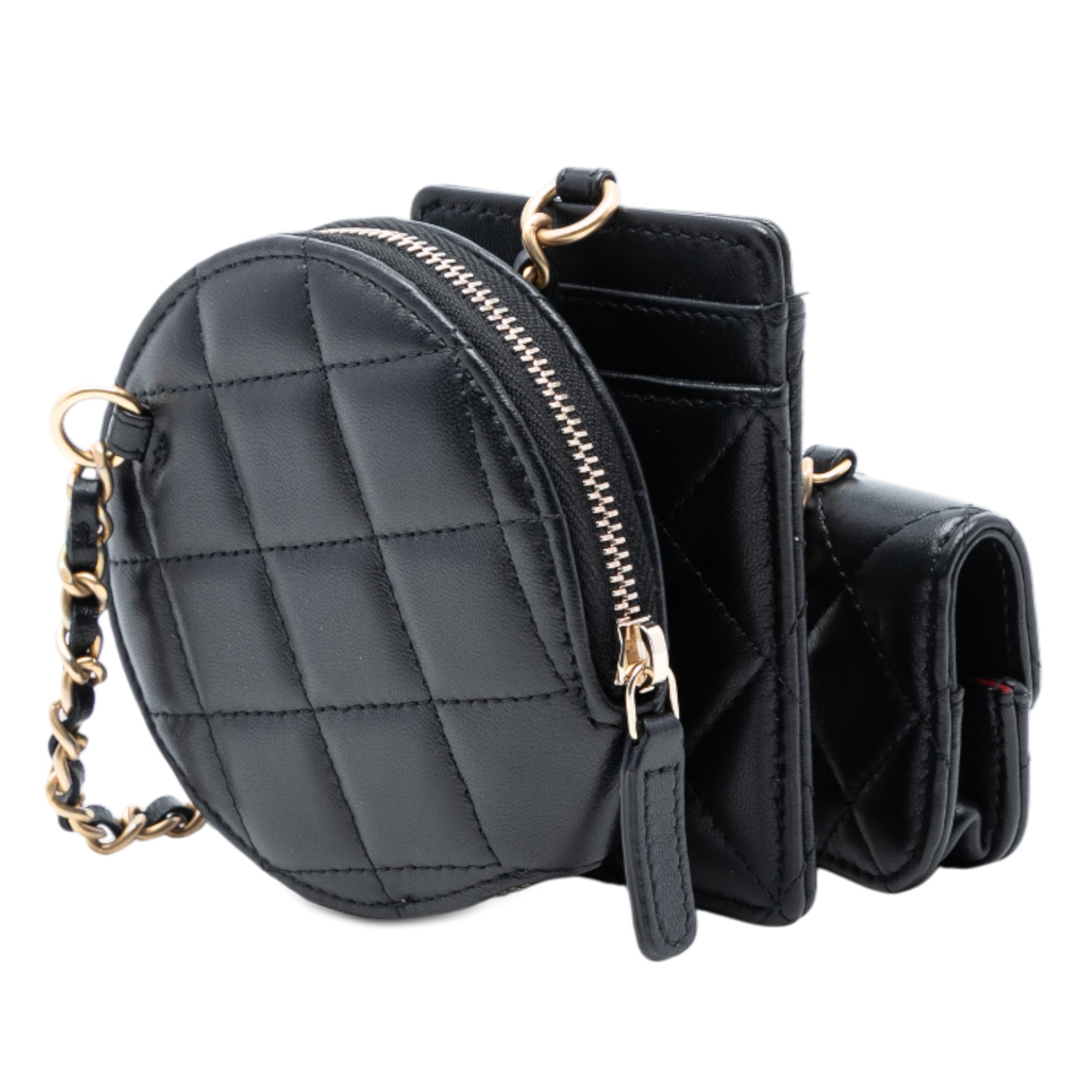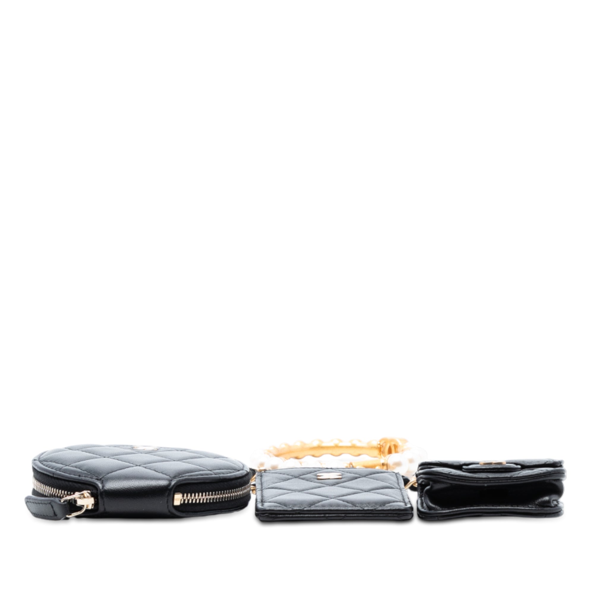Chanel Quilted Lambskin Pearl Crown CC Wristlet Multi Pouches