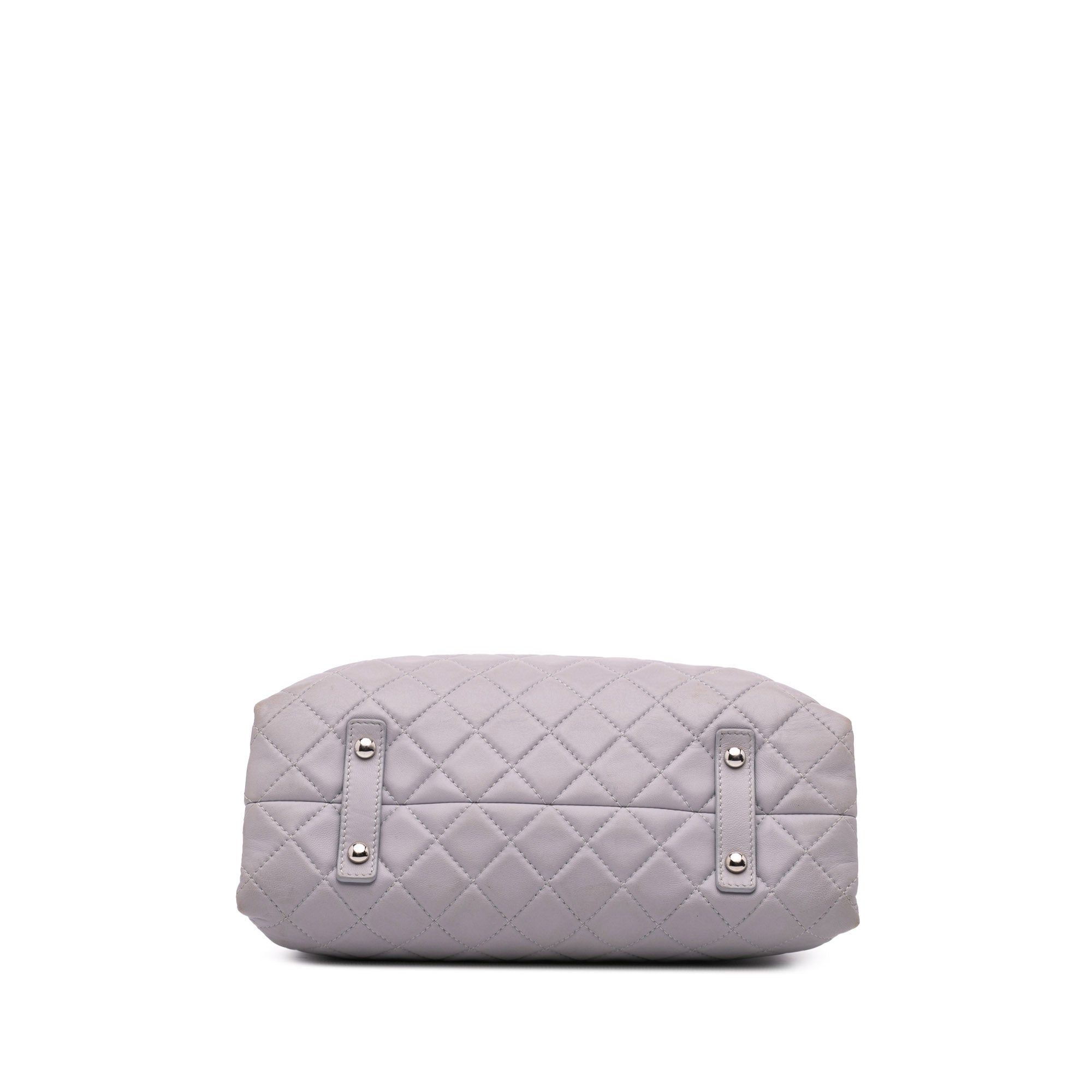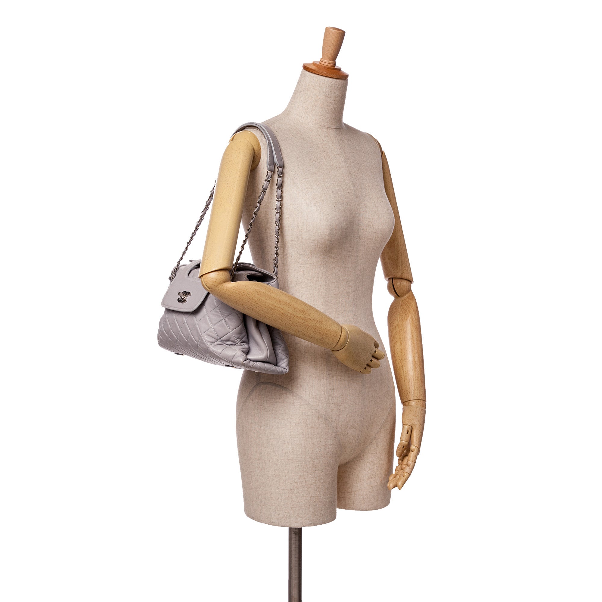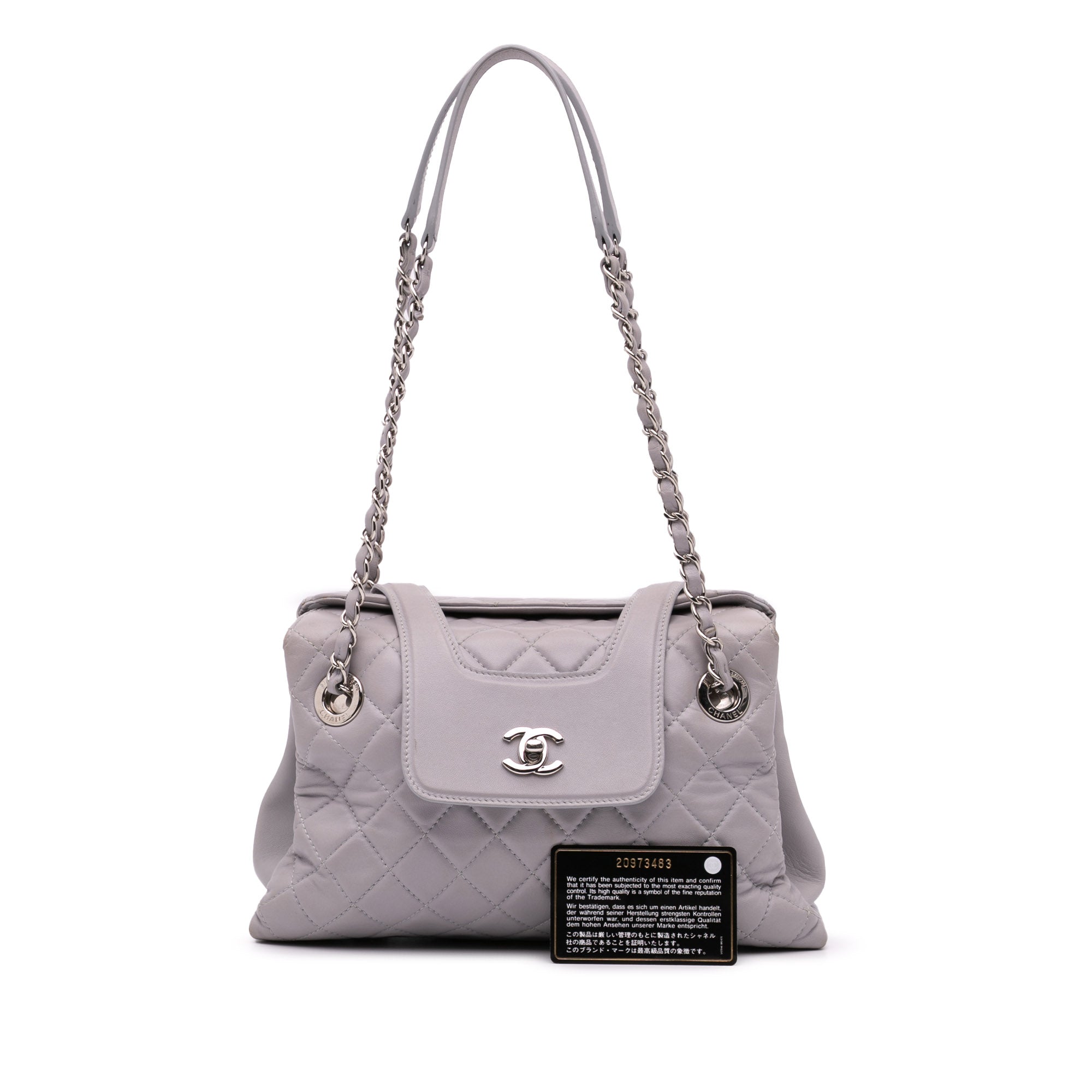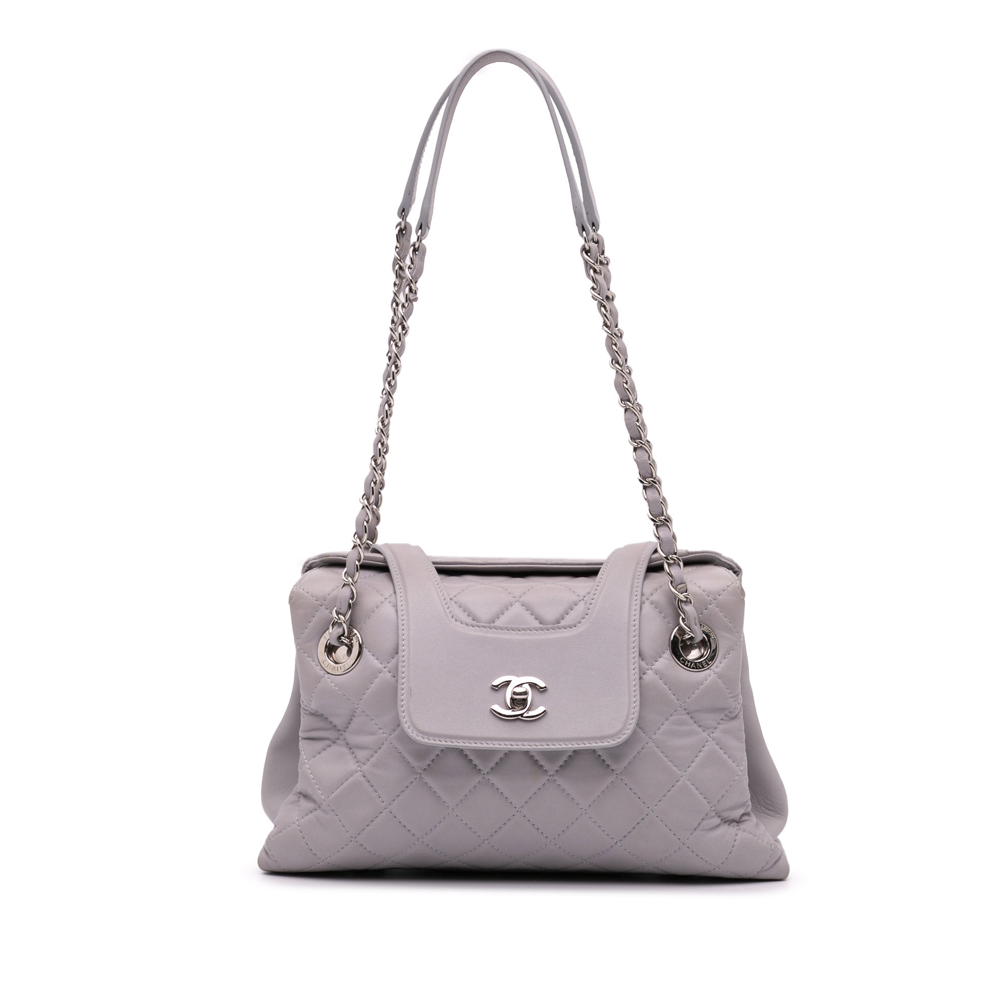 This shoulder bag features a quilted lambskin leather body, leather woven chain link straps with leather guard, a top flap with interlocking Cs and a twist lock closure, an interior zip compartment, and interior slip pockets. Inclusion: authenticity card. Retail Price: 4600.00