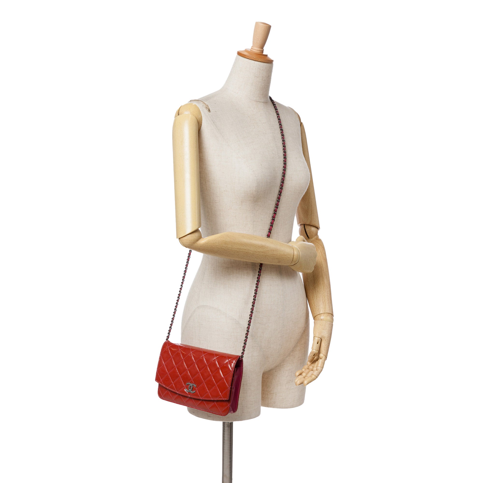Chanel Quilted Patent Brilliant Wallet On Chain