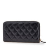 This wallet features a quilted leather body, a zip-around closure, and interior zip and slip pockets. Retail Price: 1150.00
