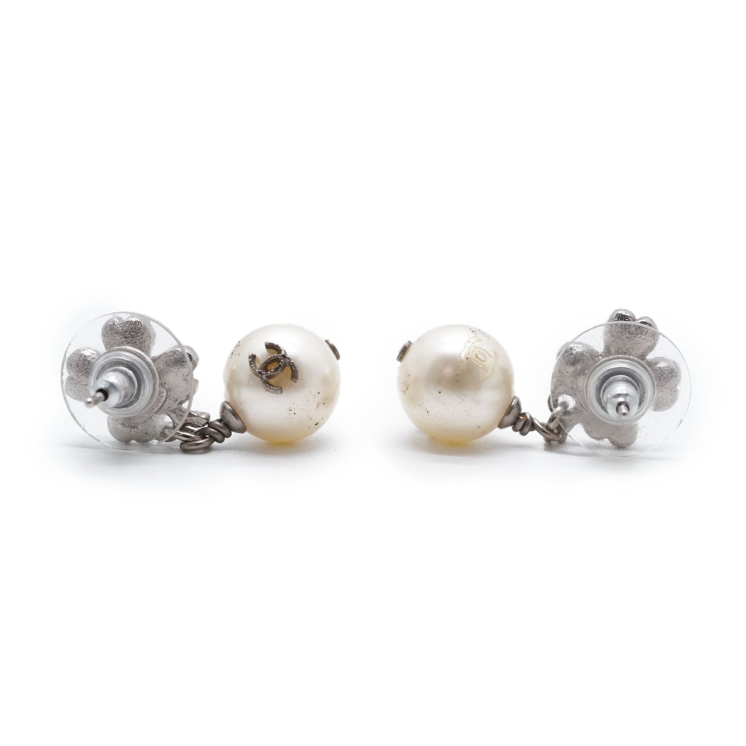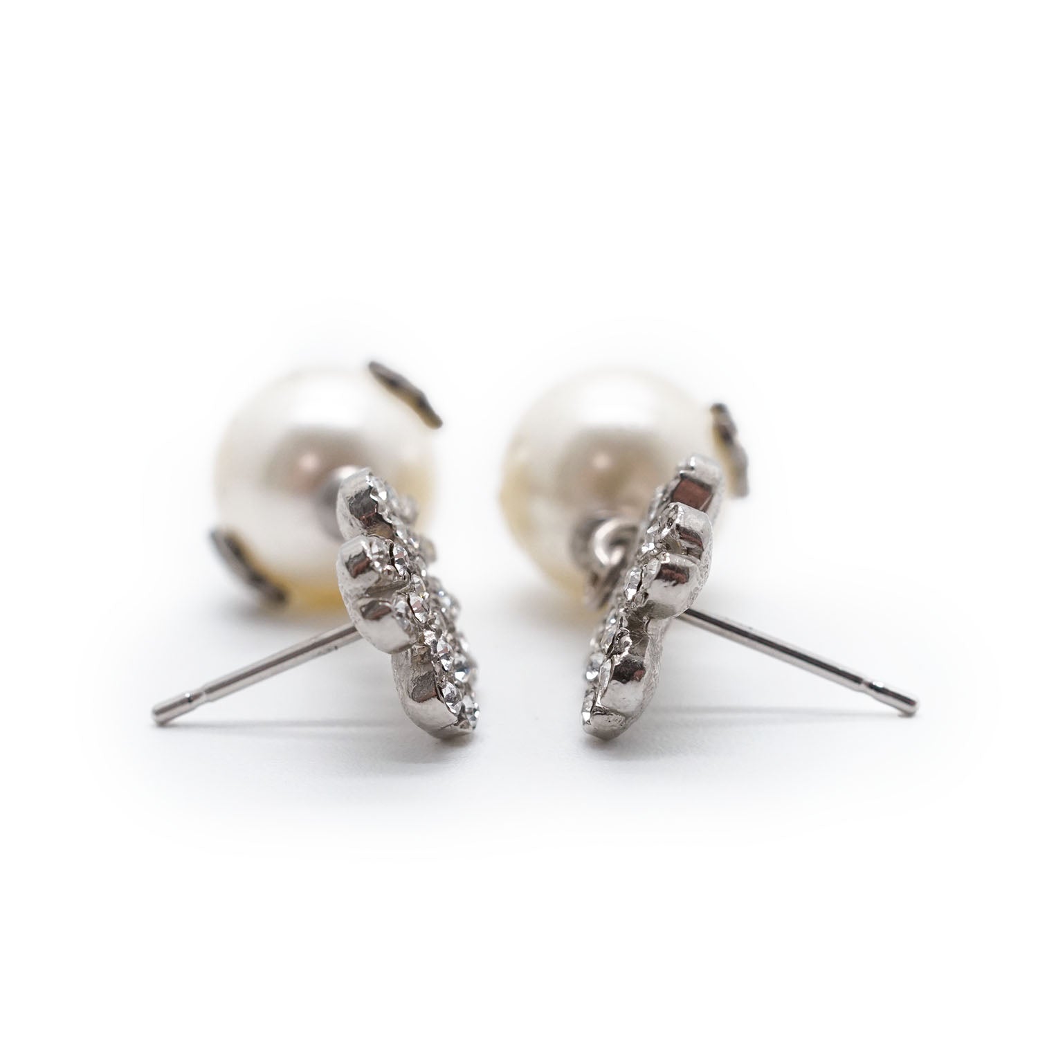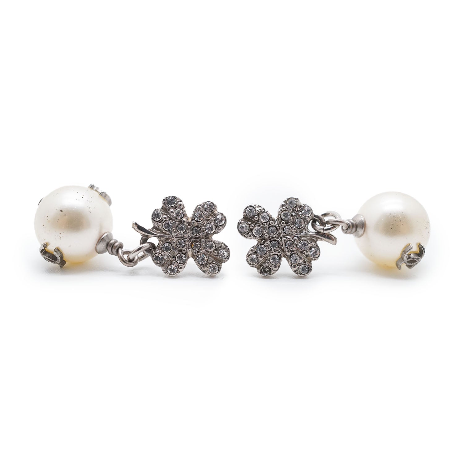Chanel Rhinestone Four Leaf Clover Artificial Pearl Earrings