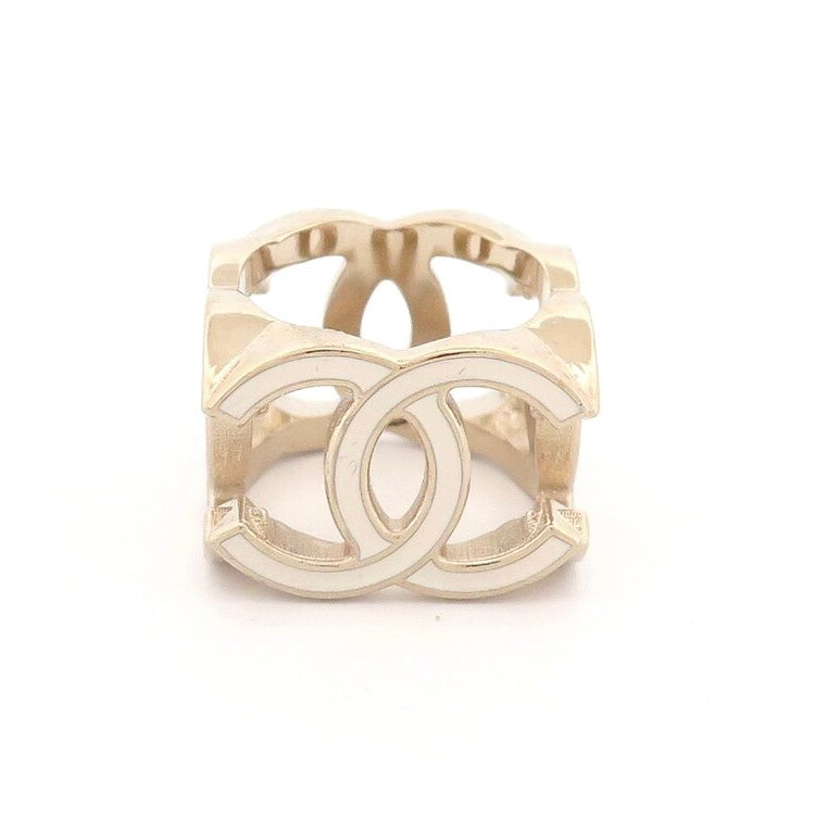 Chanel ring in gold and ecru brass square shape size 51 present punch very good condition with neutral box